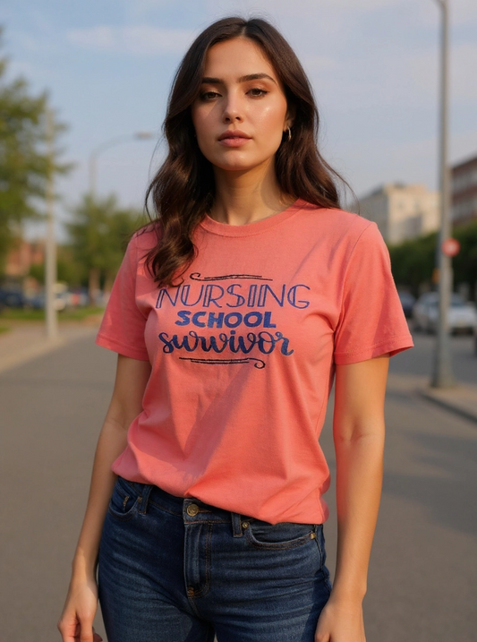 Size L 100% cotton Pink Nursing school survivor Tshirt