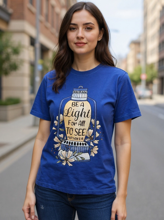 Size L 100% cotton blue Be a light for all to see Tshirt
