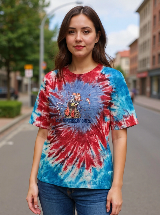 Size XL 100% cotton blue & red tye dye All America chick Tshirt