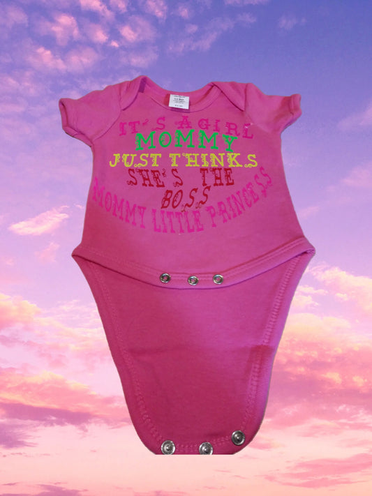 Size 0-3 months 100% cotton Pink Mommy just thinks she's the boss oneies