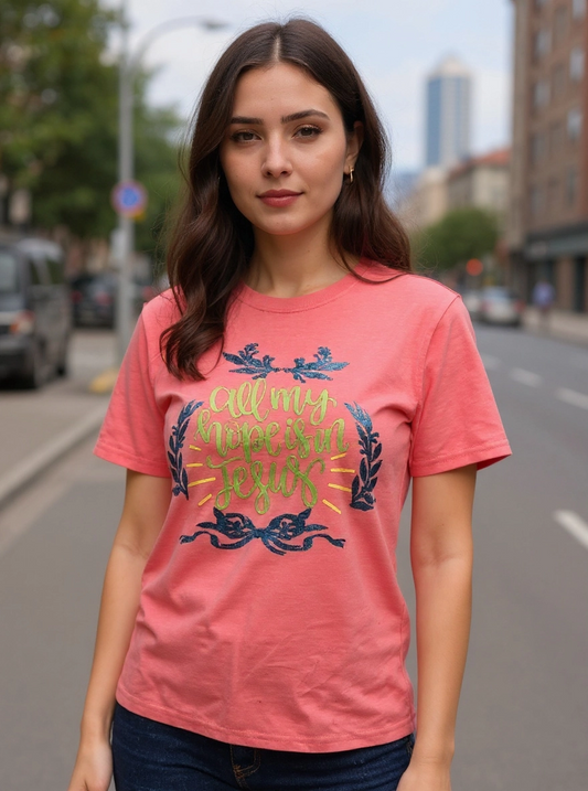Size L 100%cotton Pink All my hope in Jesus Tshirt