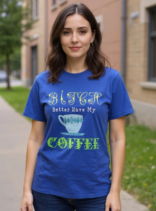 Size L 100% cotton blue Bitch better have my coffee Tshirt