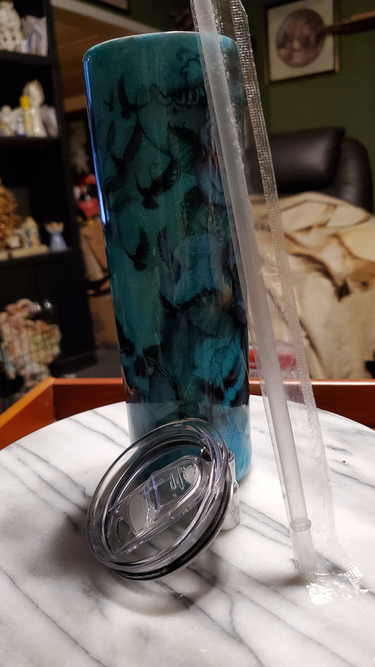 30 oz Glitter skulls and flowers stainless steel tumbler cup