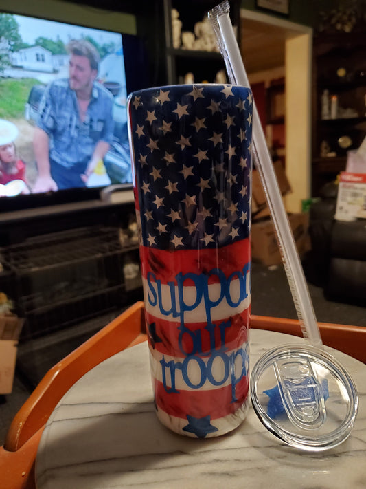 30 oz Destressed Support our troops American Flag stainless steel hogg tumbler cup