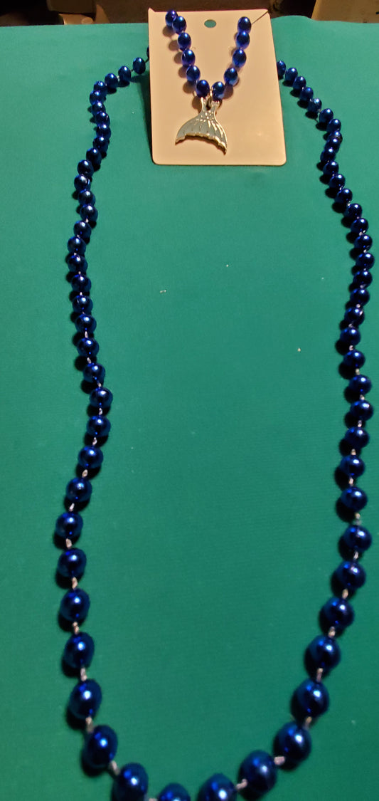 Mermaid tail on blue beaded necklace