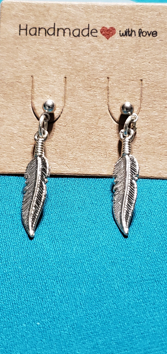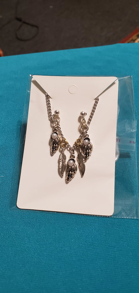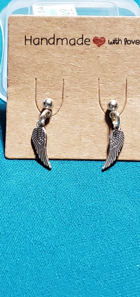 Stainless steel silver plated angel wings with feathers necklace and angel earrings