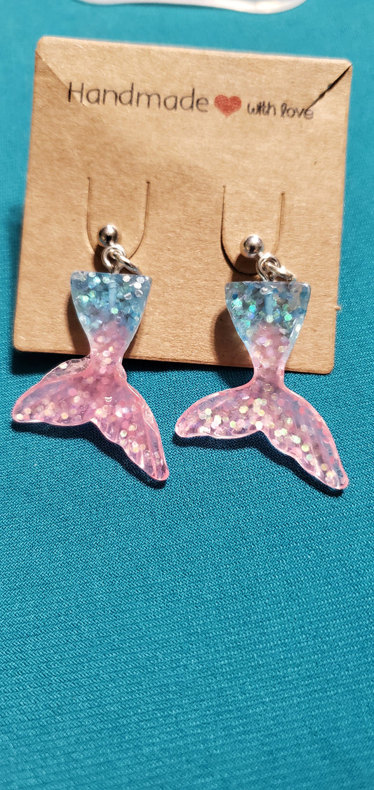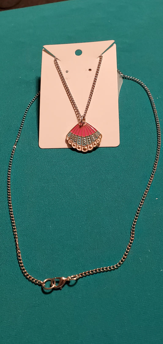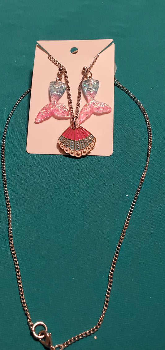 Pink and blue sea shell necklace and pink and blue mermaid tail earrings