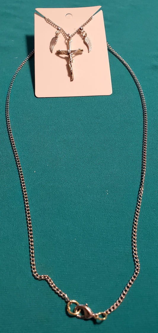 Stainless steel silver plated cross with jesus and angel wings earrings
