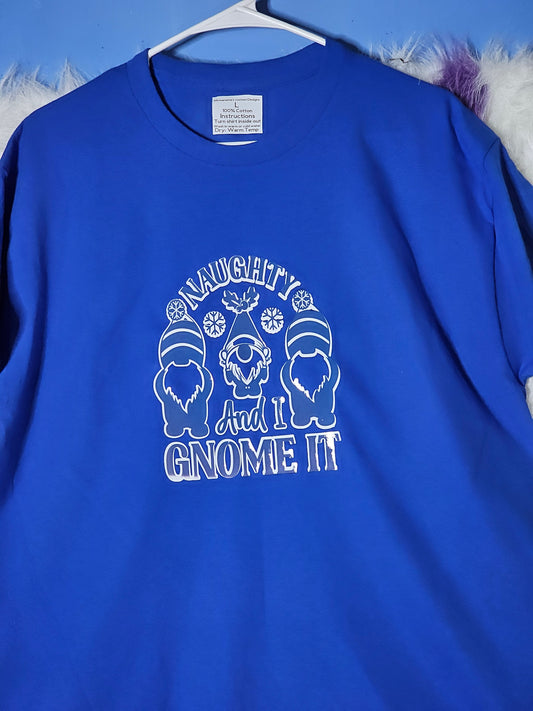 Size L 100 % cotton Naughty and I Gnome it blue T Shirt
