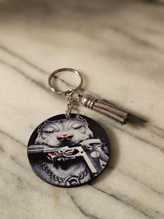 2 inch sublimation Pitbull with gun Keychain