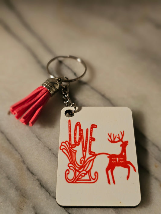 Sublimation rectangle Rudolph and slide Christmas Keychain.