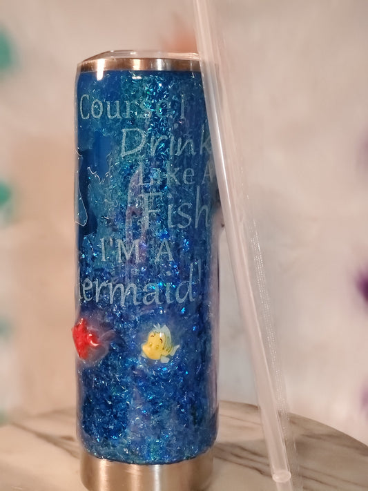 30 oz Double wall insulated of course I drink like a fish I'm a mermaid tumbler cup