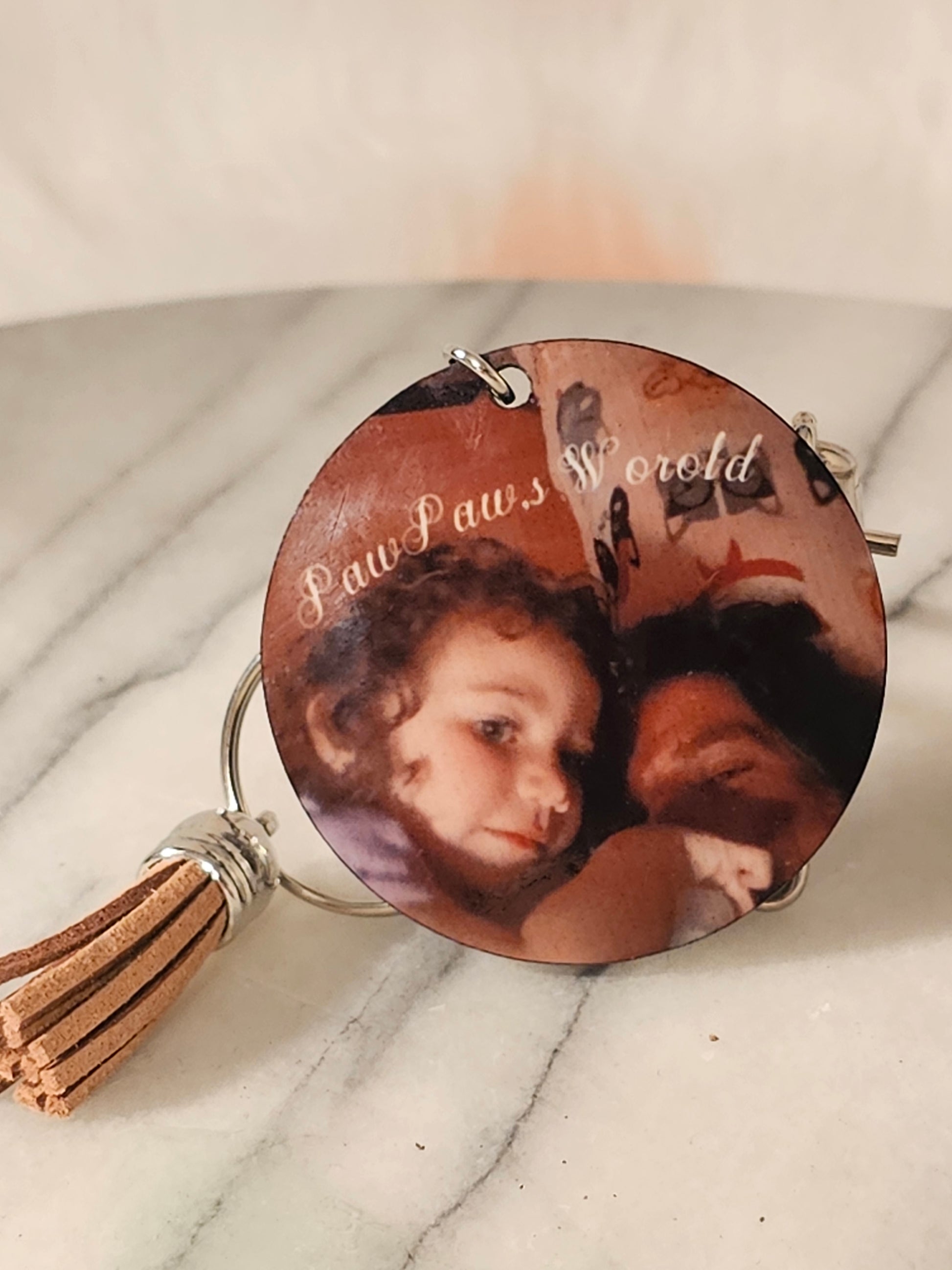 This personalized round keychain makes a perfect gift for your PawPaw and his grandaughter. It features 2 inch personalization with your choice of photo, phrase, or logo to make it an extra special gift. This keychain is crafted from durable yet lightweight materials for long-lasting use.
