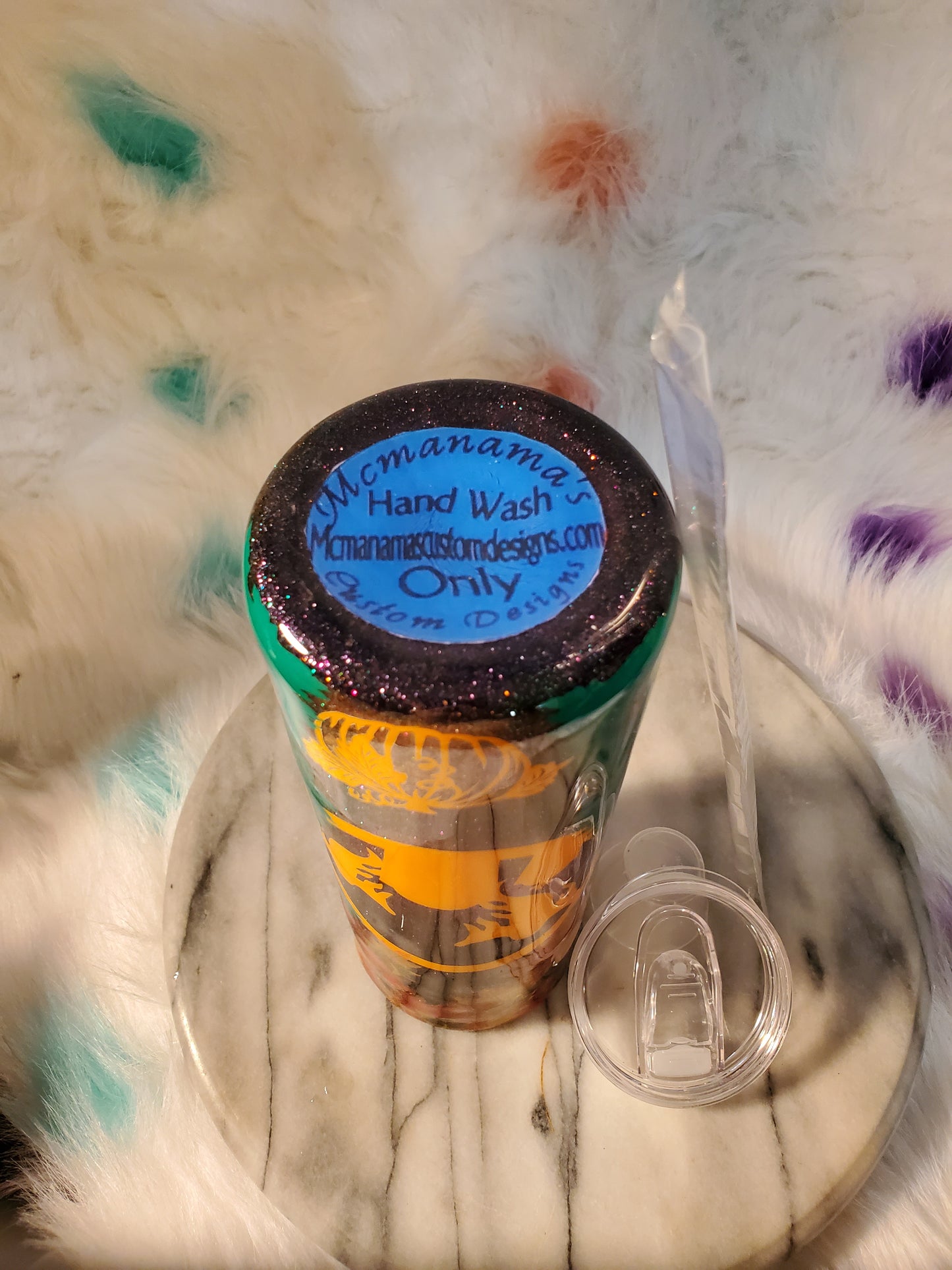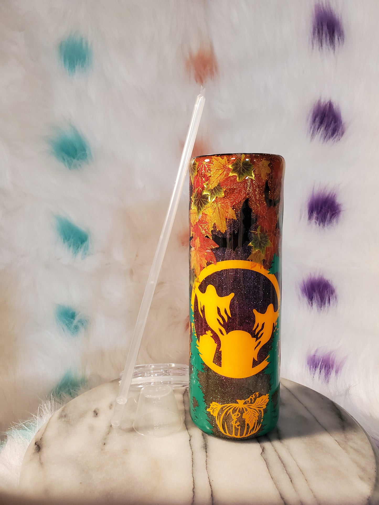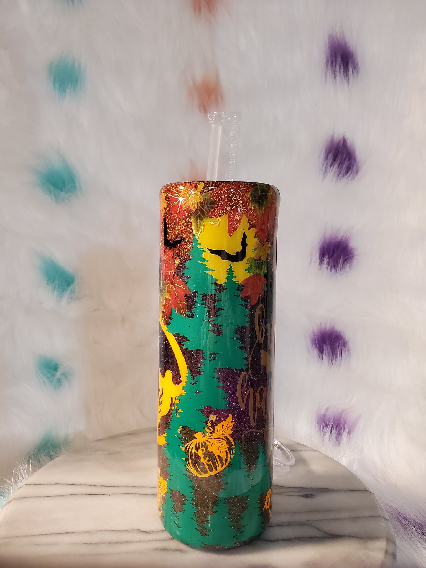 30oz Happy Halloween double wall stainless steel tumbler cup.Keeps drinks cold or hot for hours. Don't put it in the dishwasher,microwave,freezer or direct sunlight. Hand wash only in warm water.