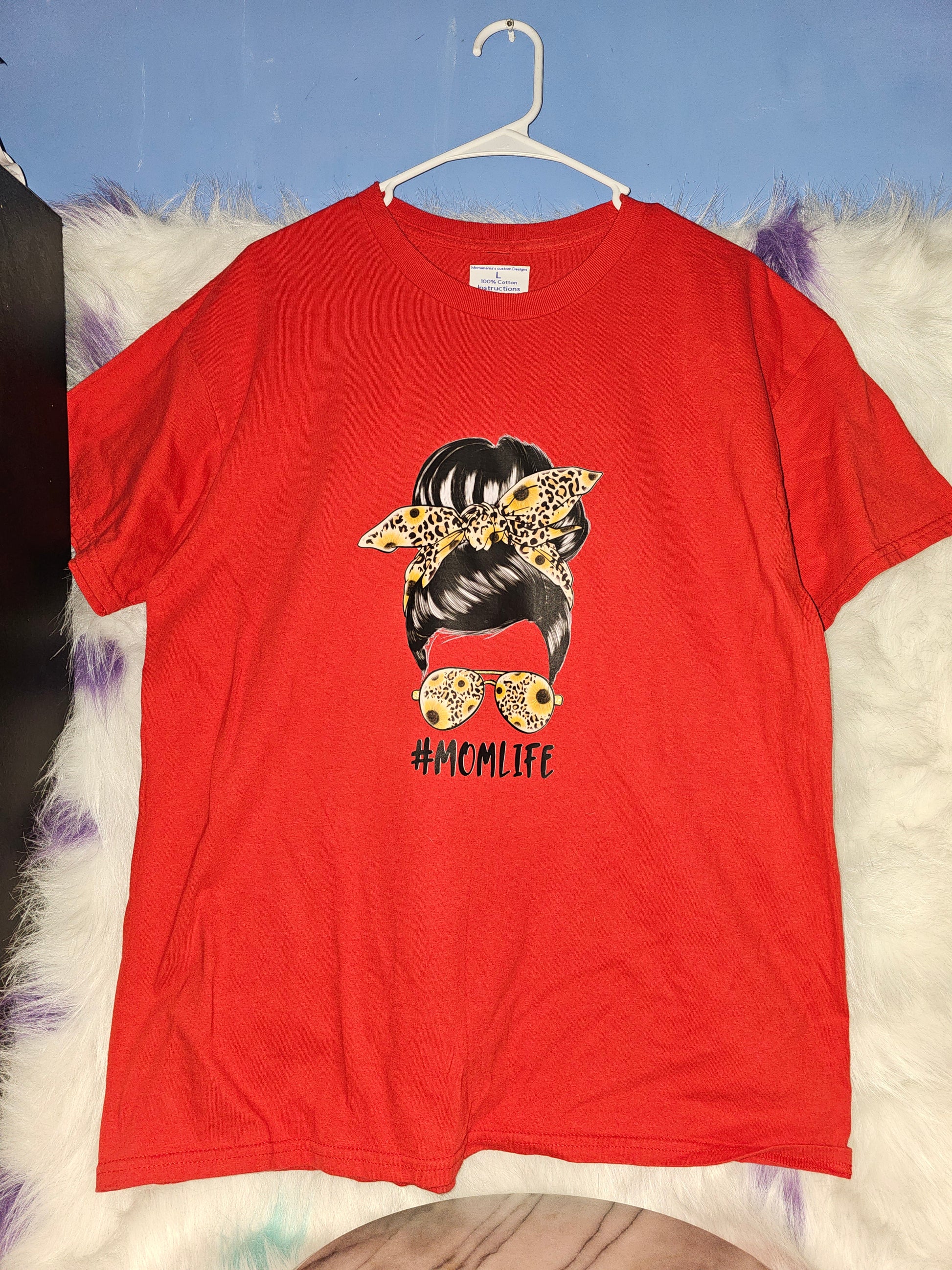 This 100% cotton Red Momlife Tshirt in size L is the perfect addition to any mom's wardrobe. Made from high-quality materials, it offers both comfort and style. Show off your mom-life pride with this trendy and durable t-shirt.Size L 100% cotton Red Momlife Tshirt. Washing instructions turn Shirt inside out and wash in cold or warm water and dry on low heat or air dry.Your information is protected.