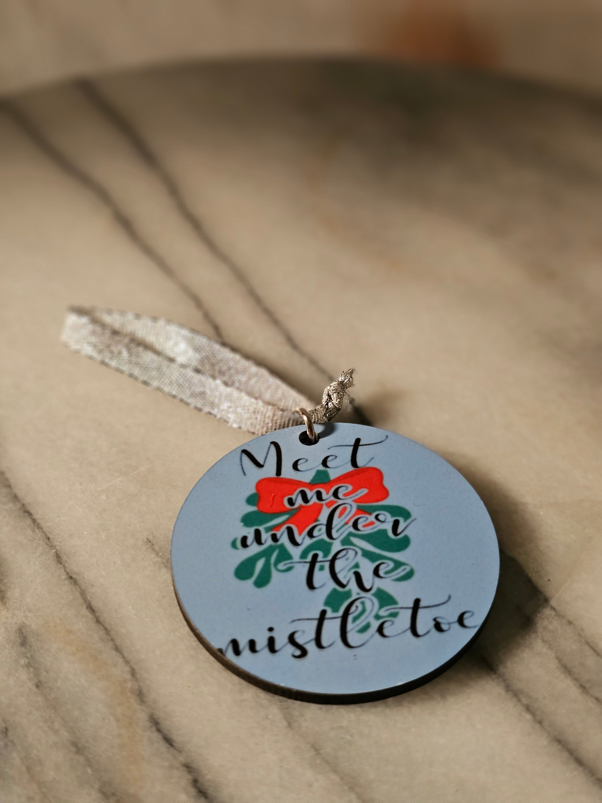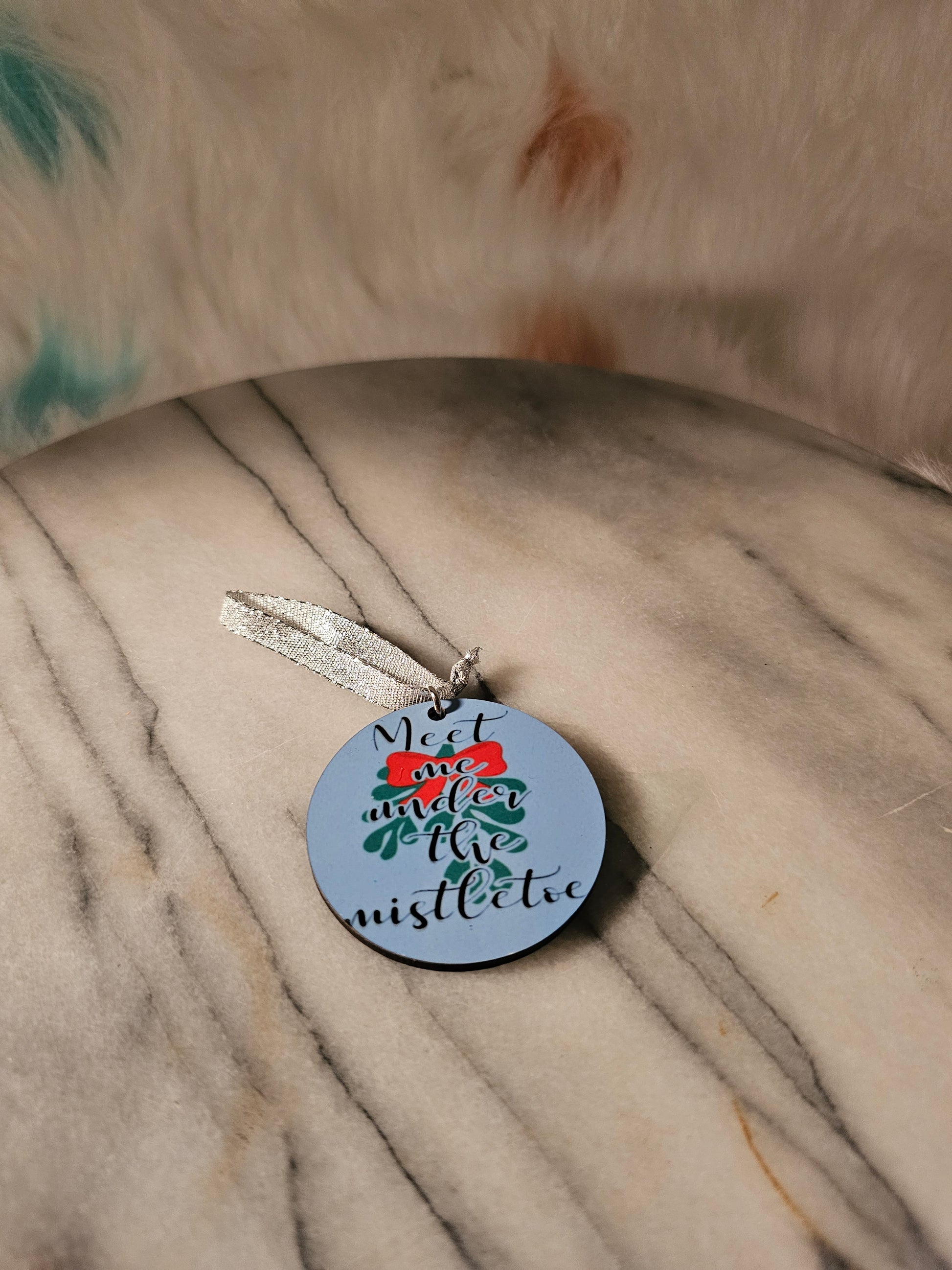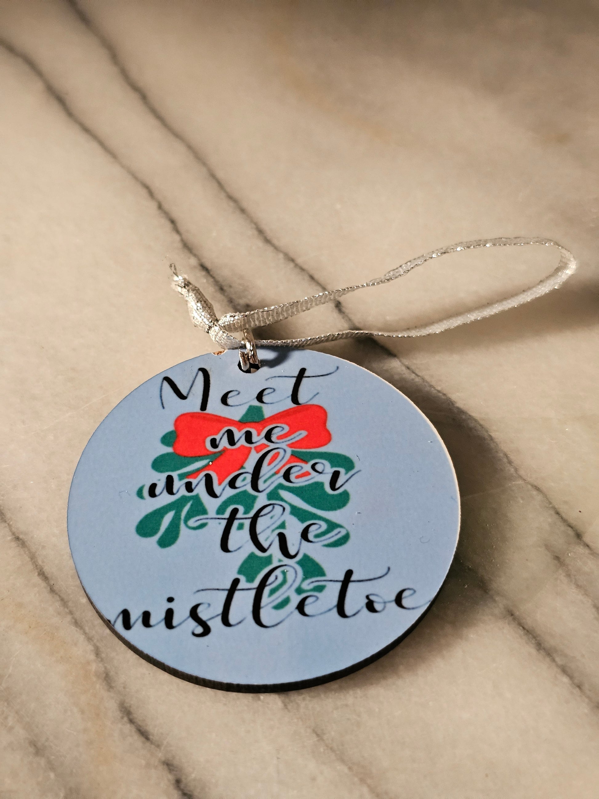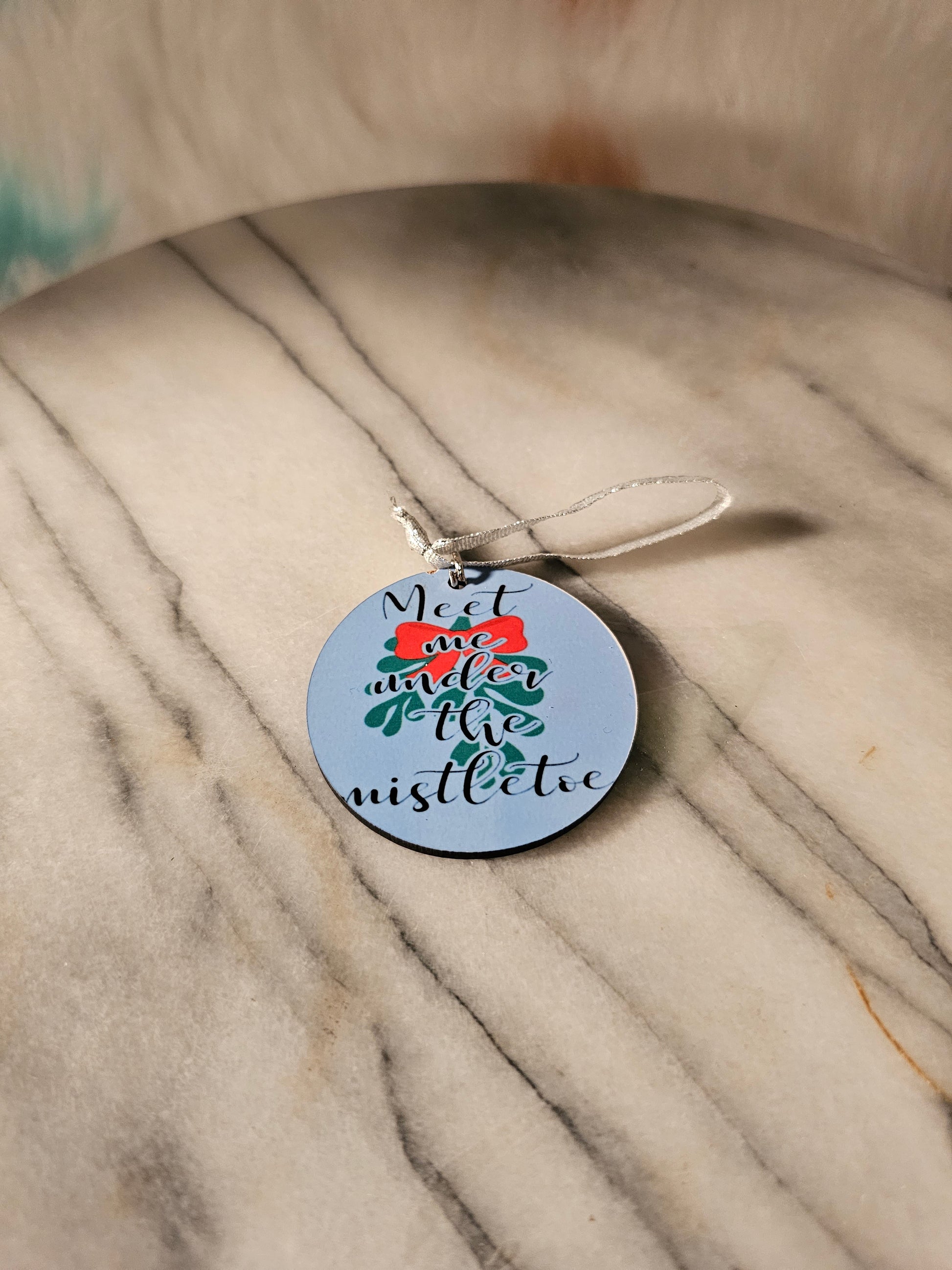 2 inch sublimation Meet me under the mistletoe Christmas oranment.
