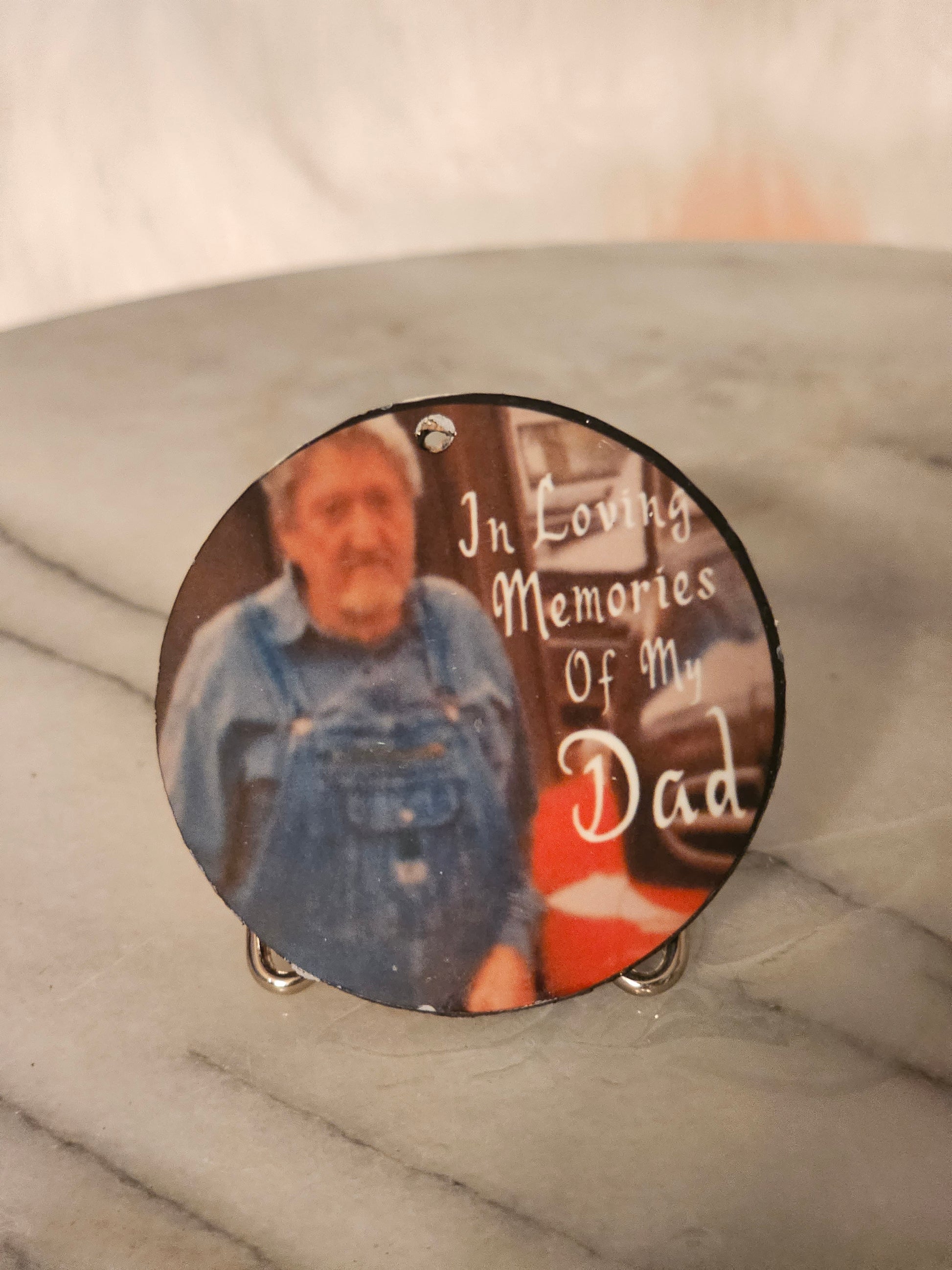 Honor the memory of your dad with this personalized 2 inch refrigerator magnet. Featuring sublimation technology, the magnet is designed to keep memories strong and vibrant for years to come. The perfect way to keep your dad close in your heart.