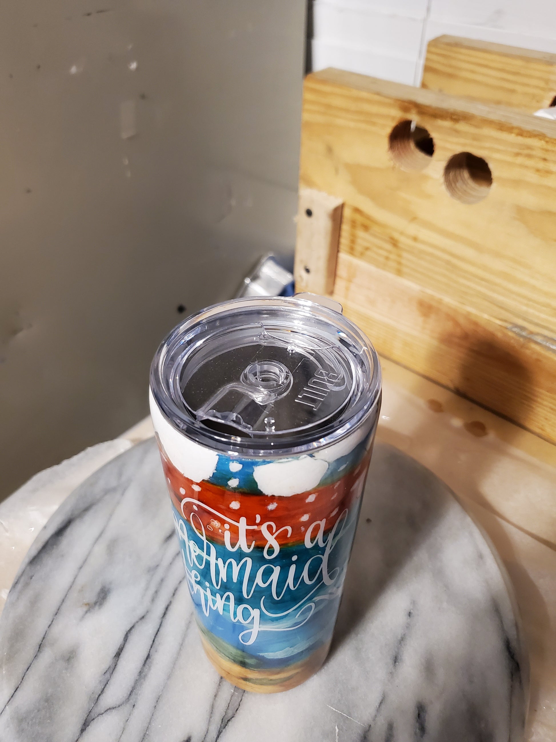 20 oz It's a mermaid thing Double Walled Stainless steel tumbler cup.Keeps drinks cold for 24 hours and drinks hot for 6 hours. Don't put it in the dishwasher. Hand wash only.I can put your name on it or a personal design.