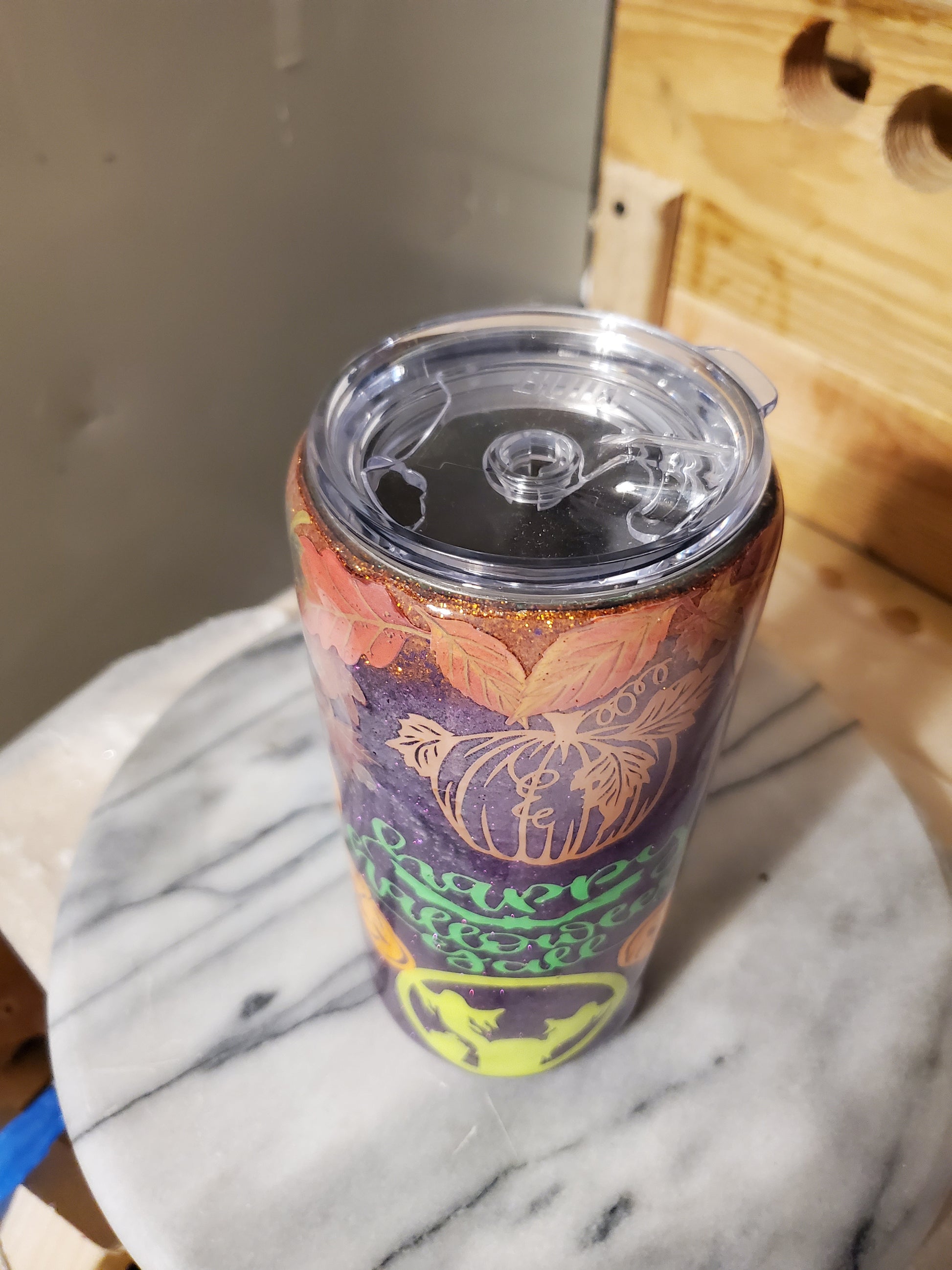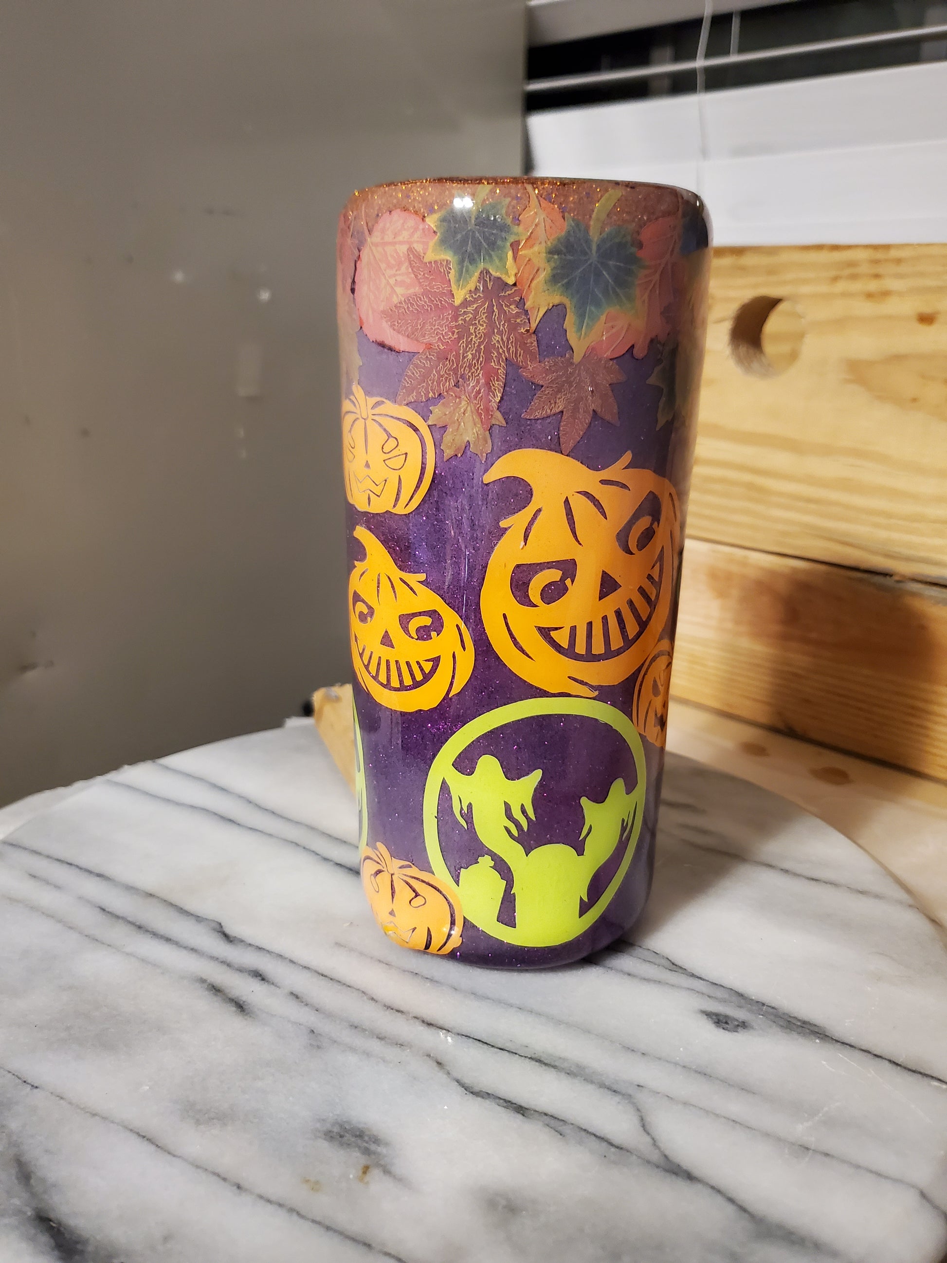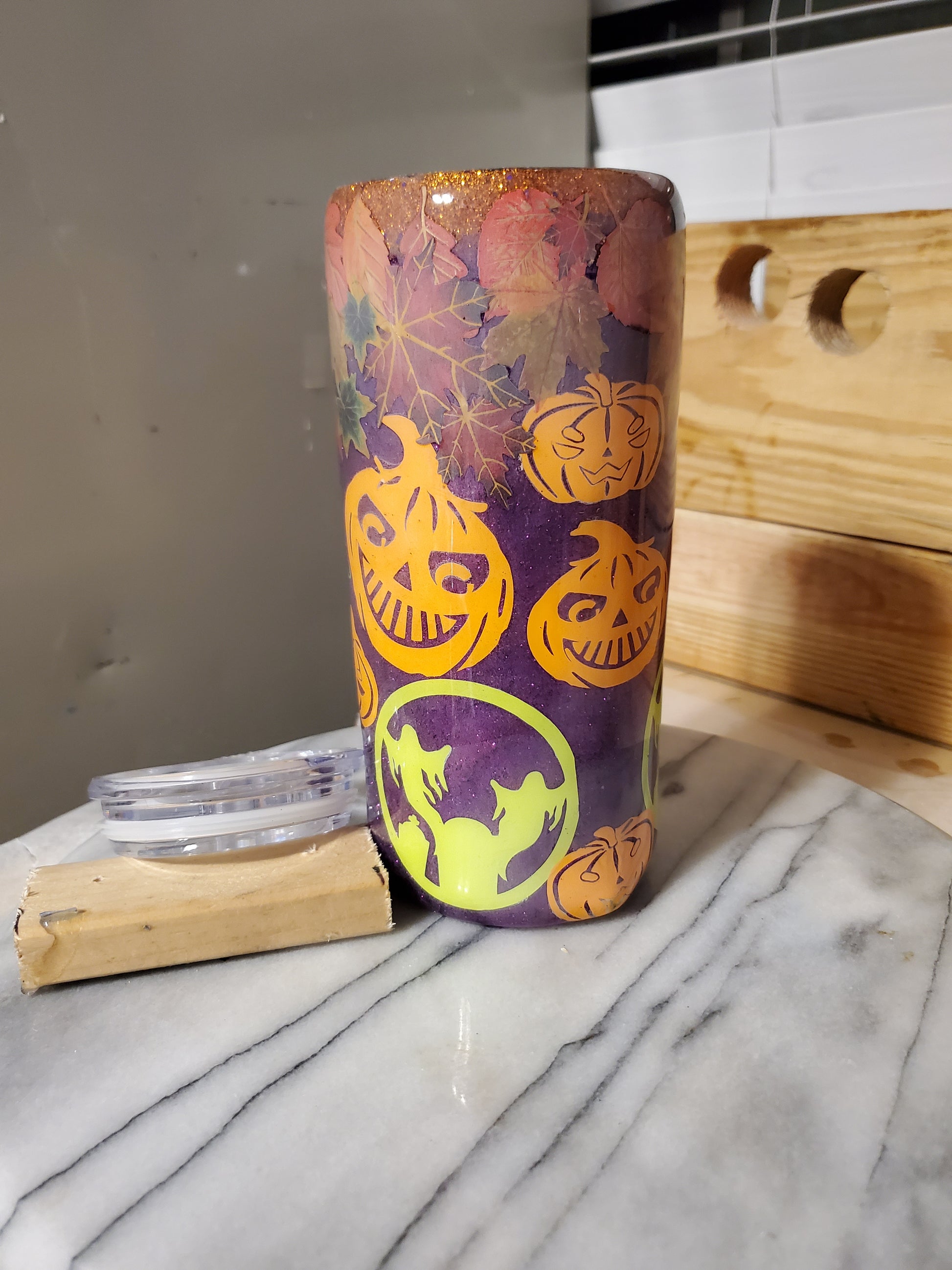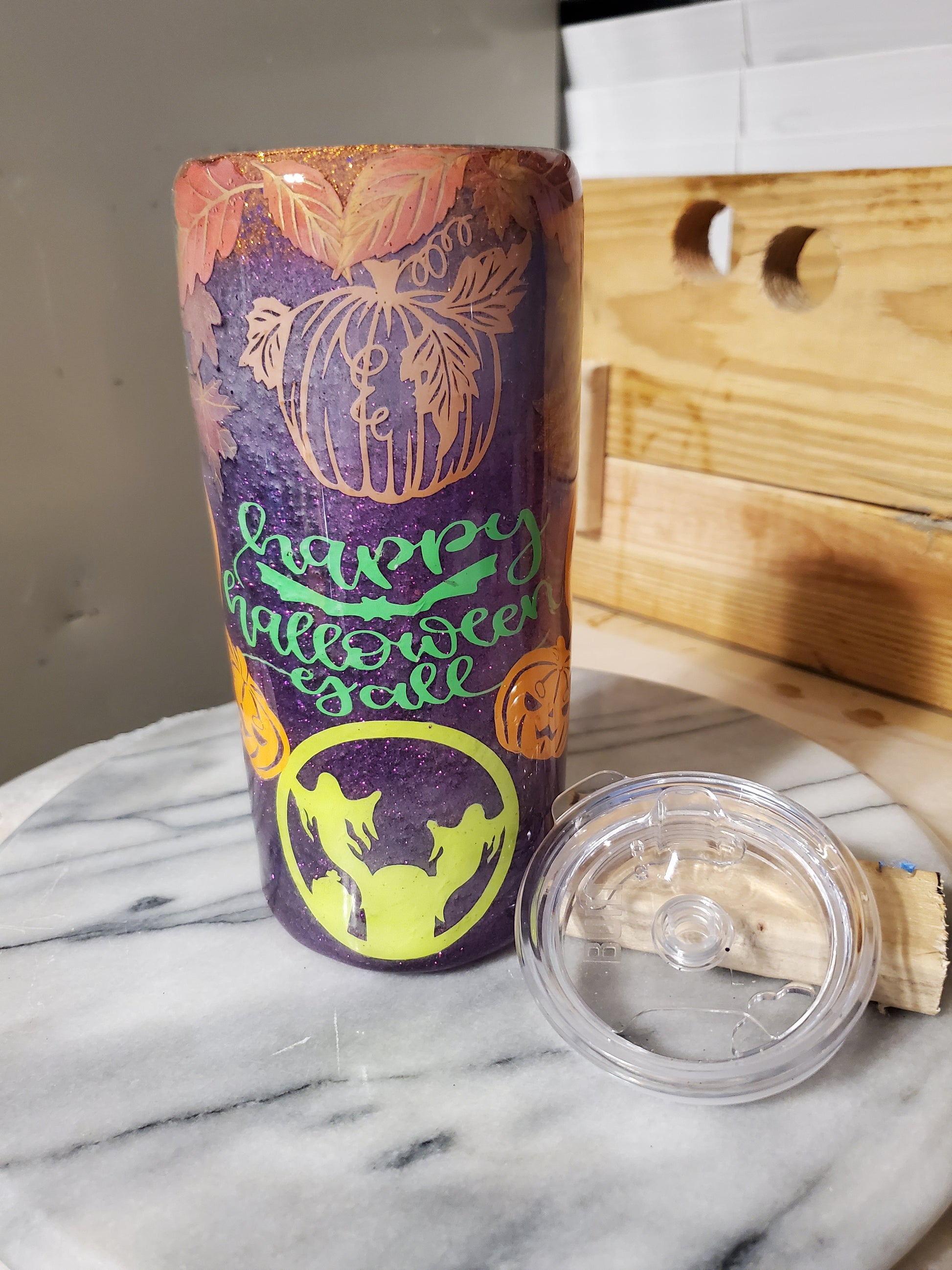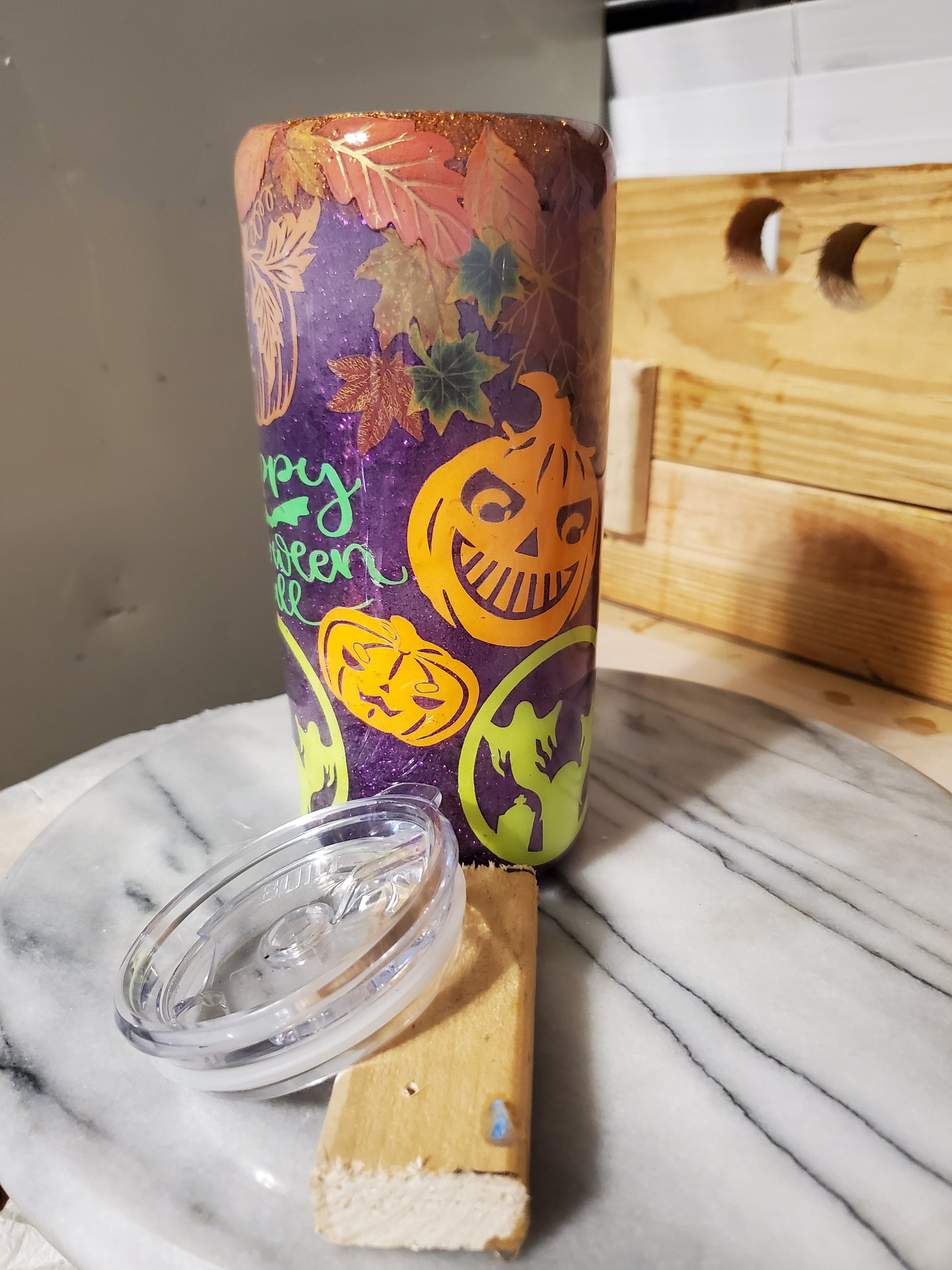 20 oz Spooky Foggy Happy Halloween Double insulated Stainless steel tumbler cup.Keeps drìnks cold for 24 hours and drinks hot for 6 hours. Don't put it in the dishwasher. Hand wash only.I can do personalized designs or put your name on it.