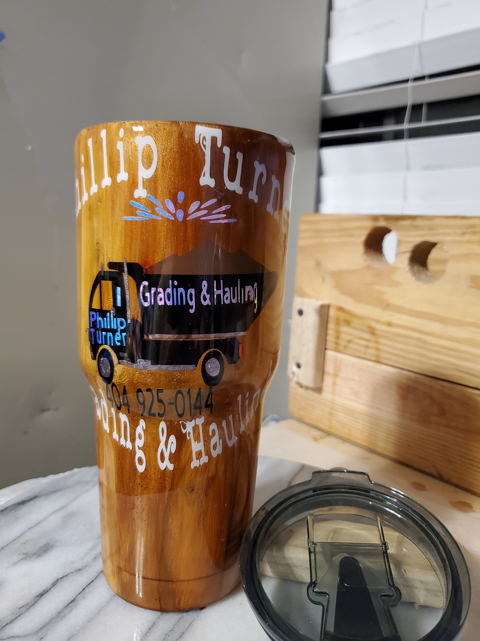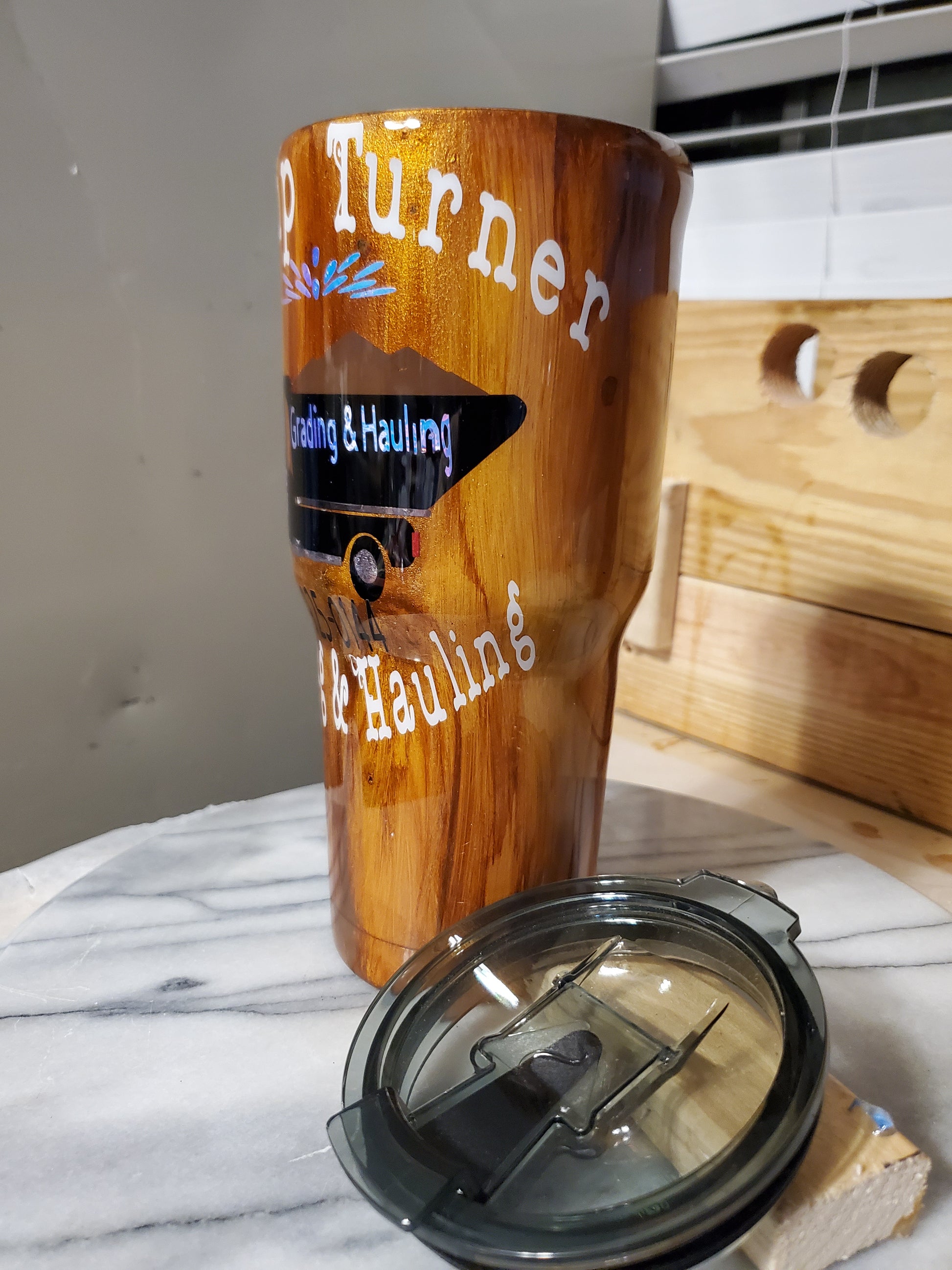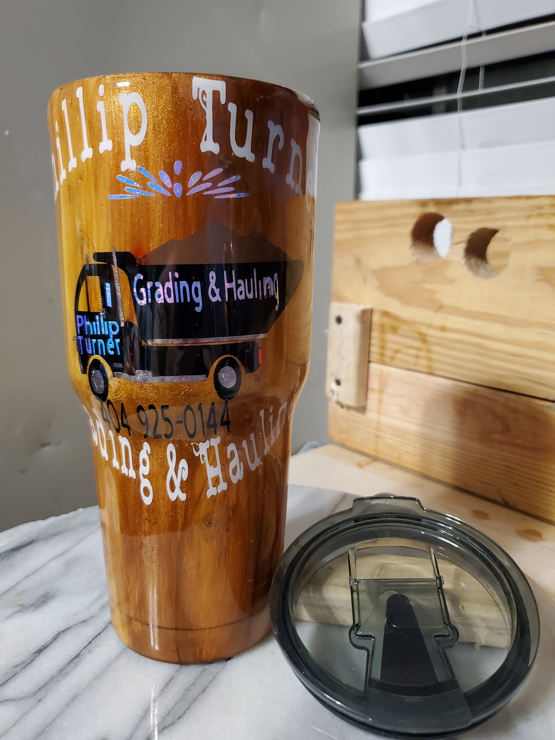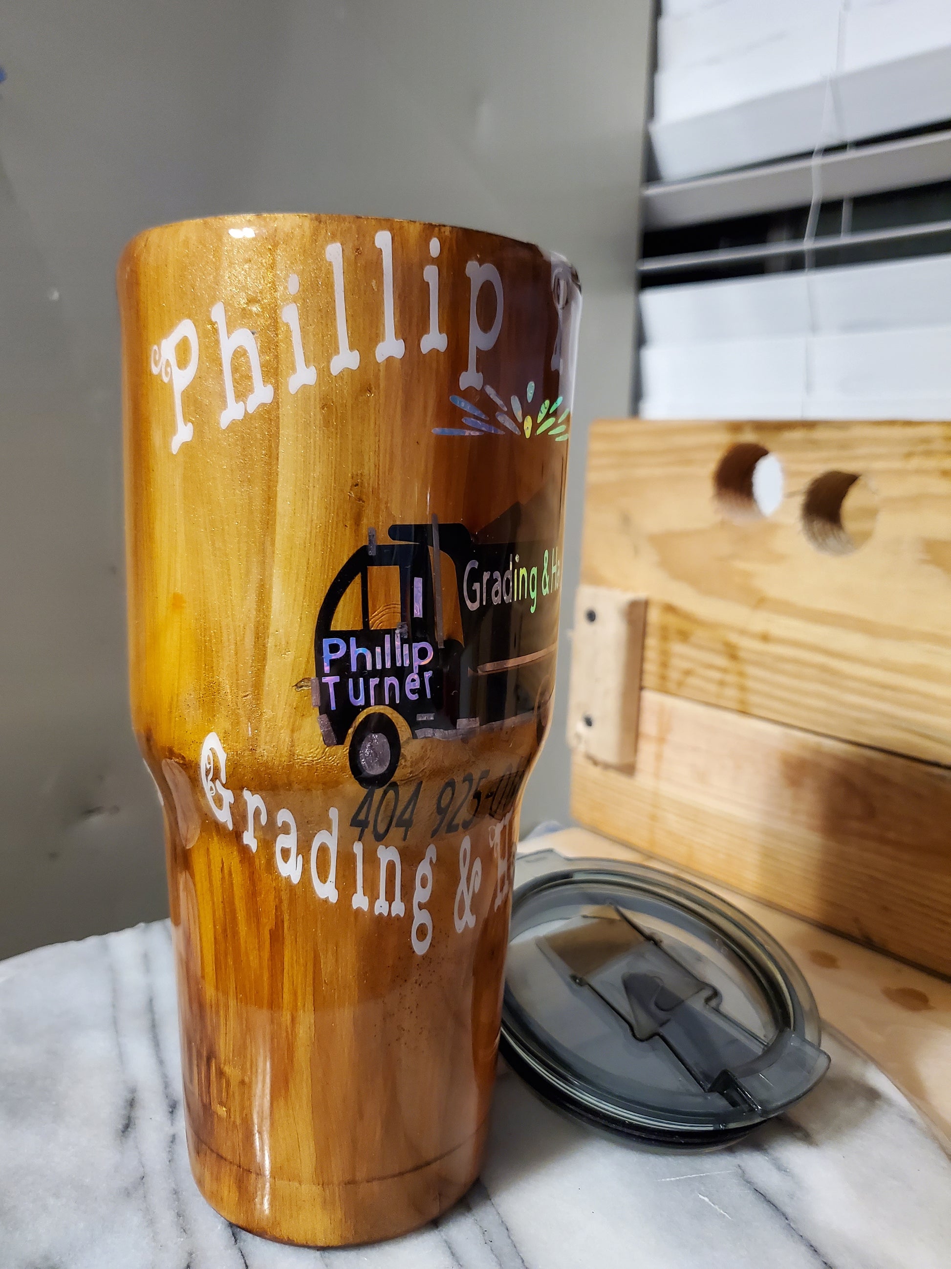 30 0z My business logo company Demo Double walled insulated Stainless steel tumbler cup. Keeps drinks cold for 24 hours and drinks hot for 6 hours. Don't put it in the dishwasher. Hand wash only.I can do personalized designs or put logo or your name on it.