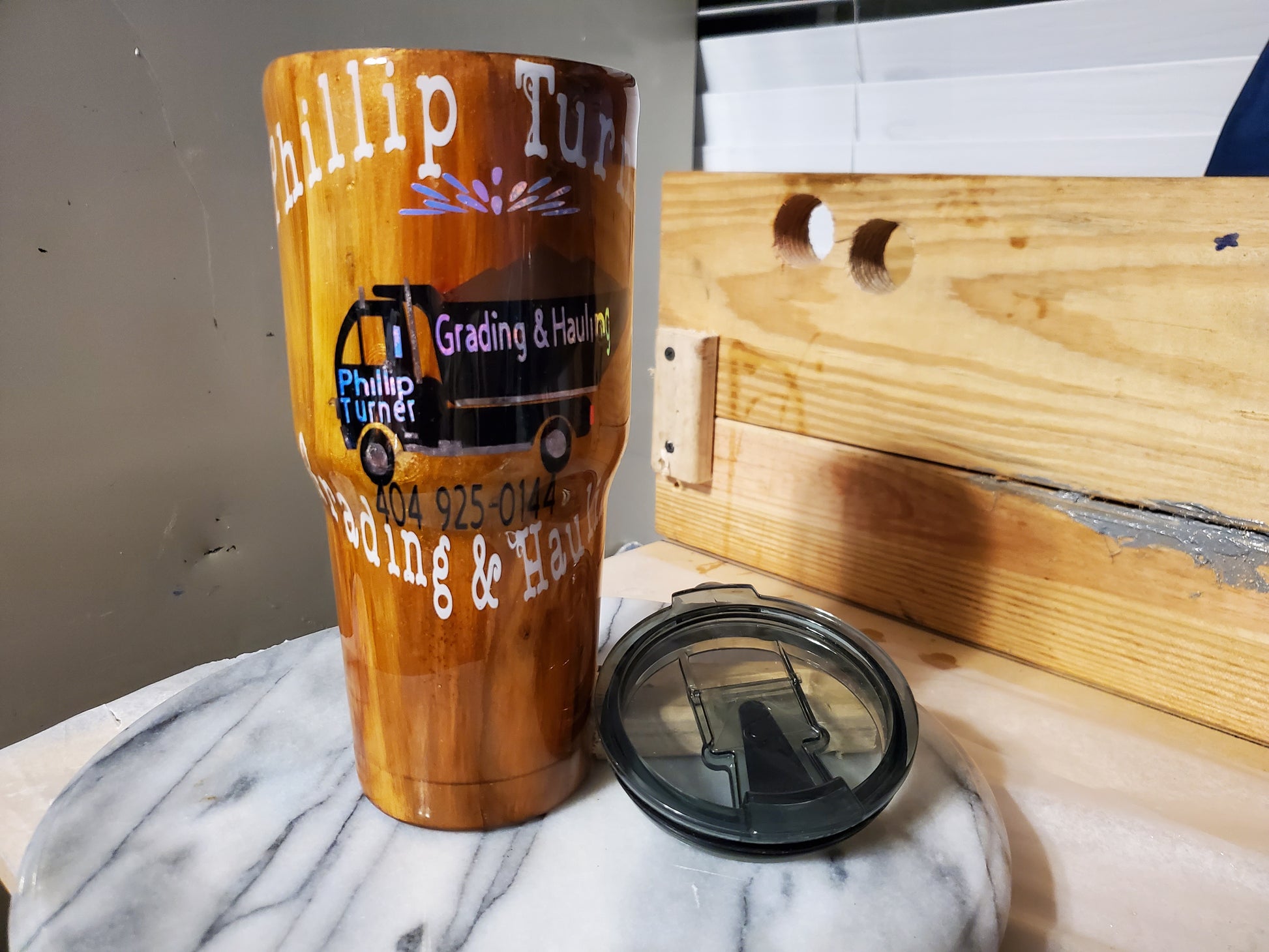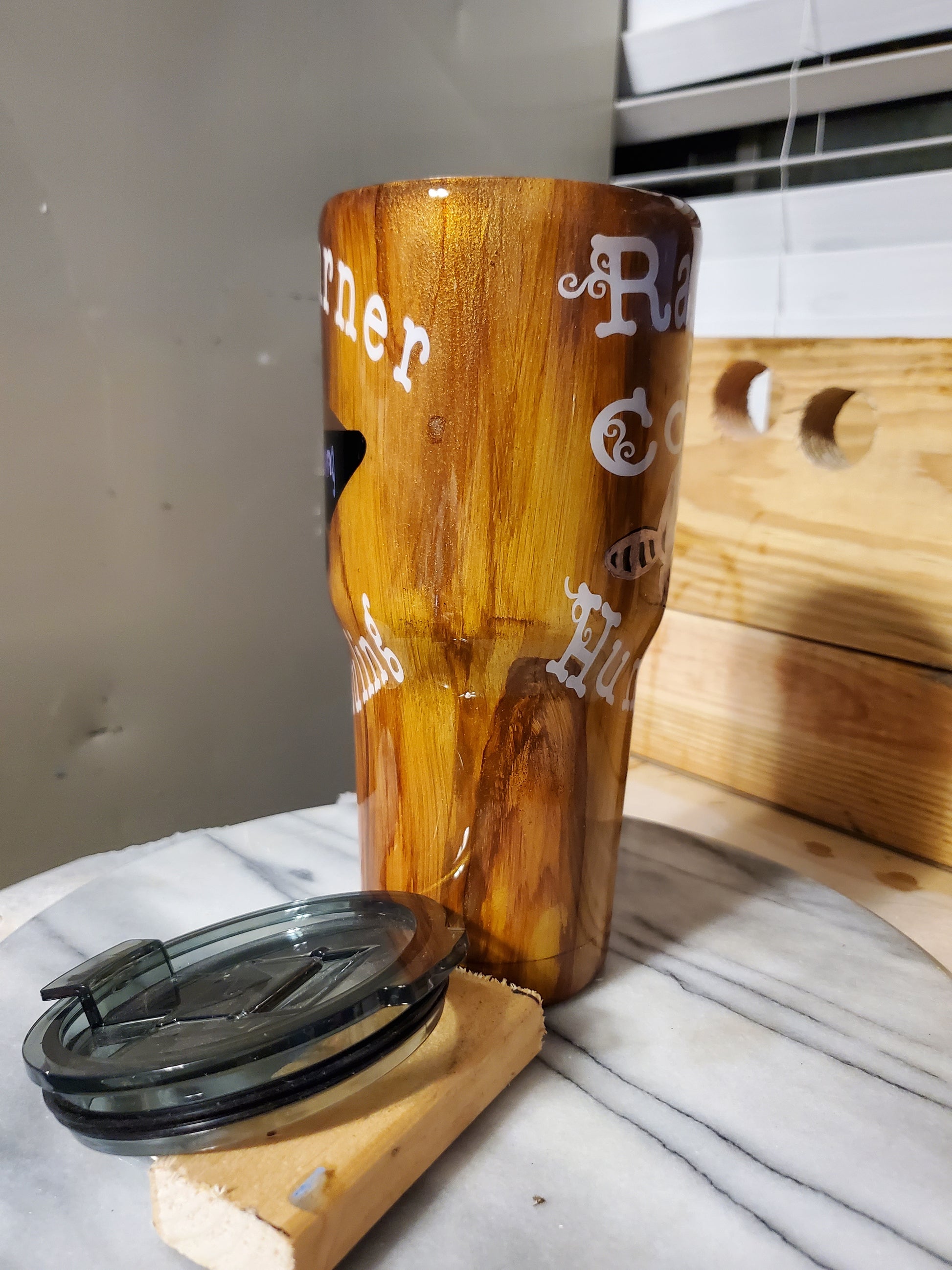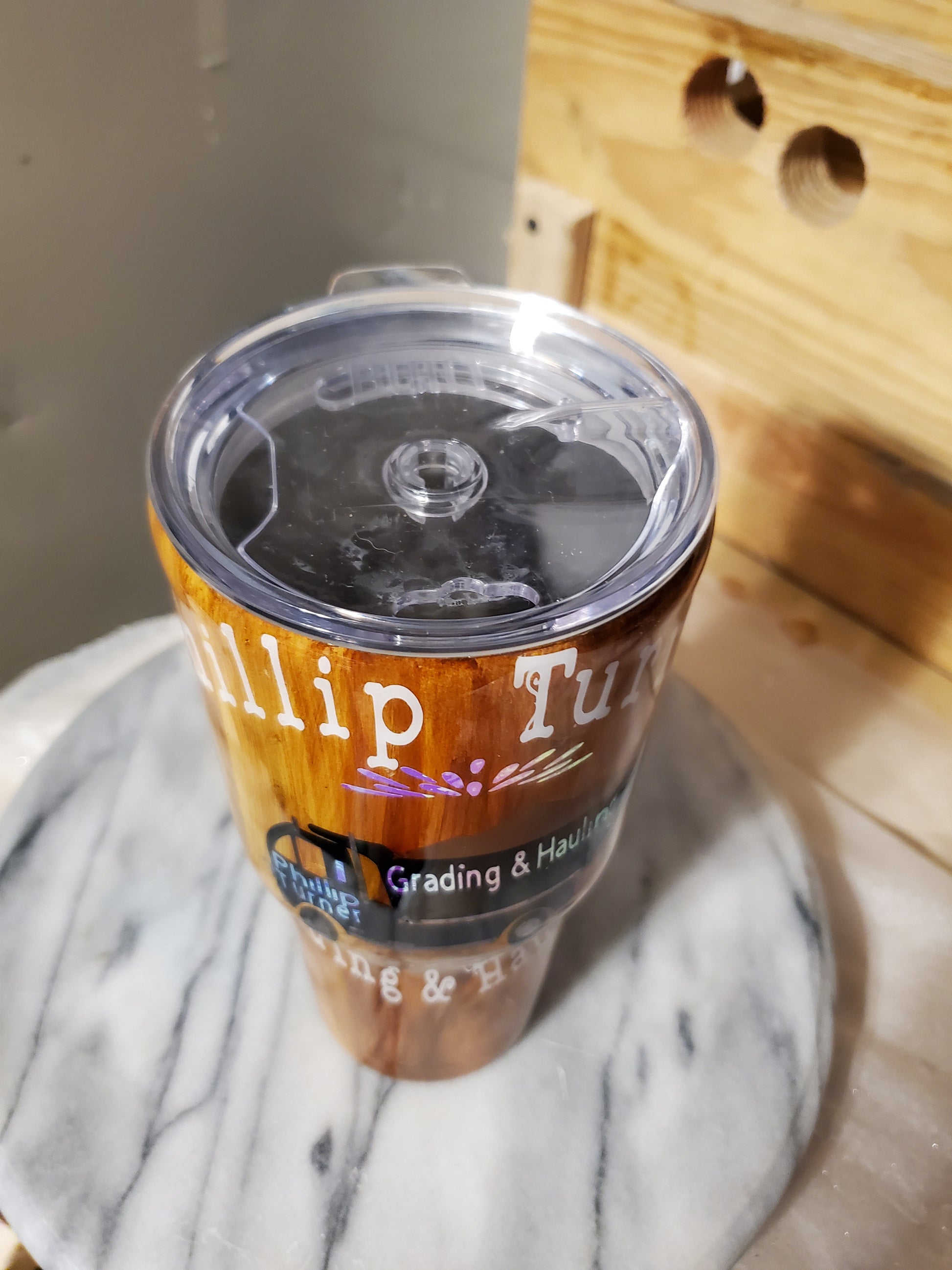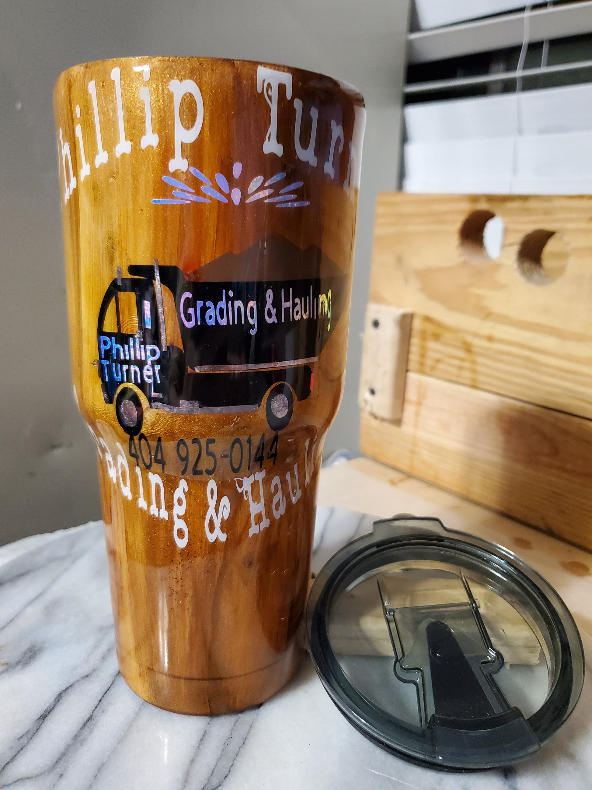 30 0z My business logo company Demo Double walled insulated Stainless steel tumbler cup. Keeps drinks cold for 24 hours and drinks hot for 6 hours. Don't put it in the dishwasher. Hand wash only.I can do personalized designs or put logo or your name on it.
