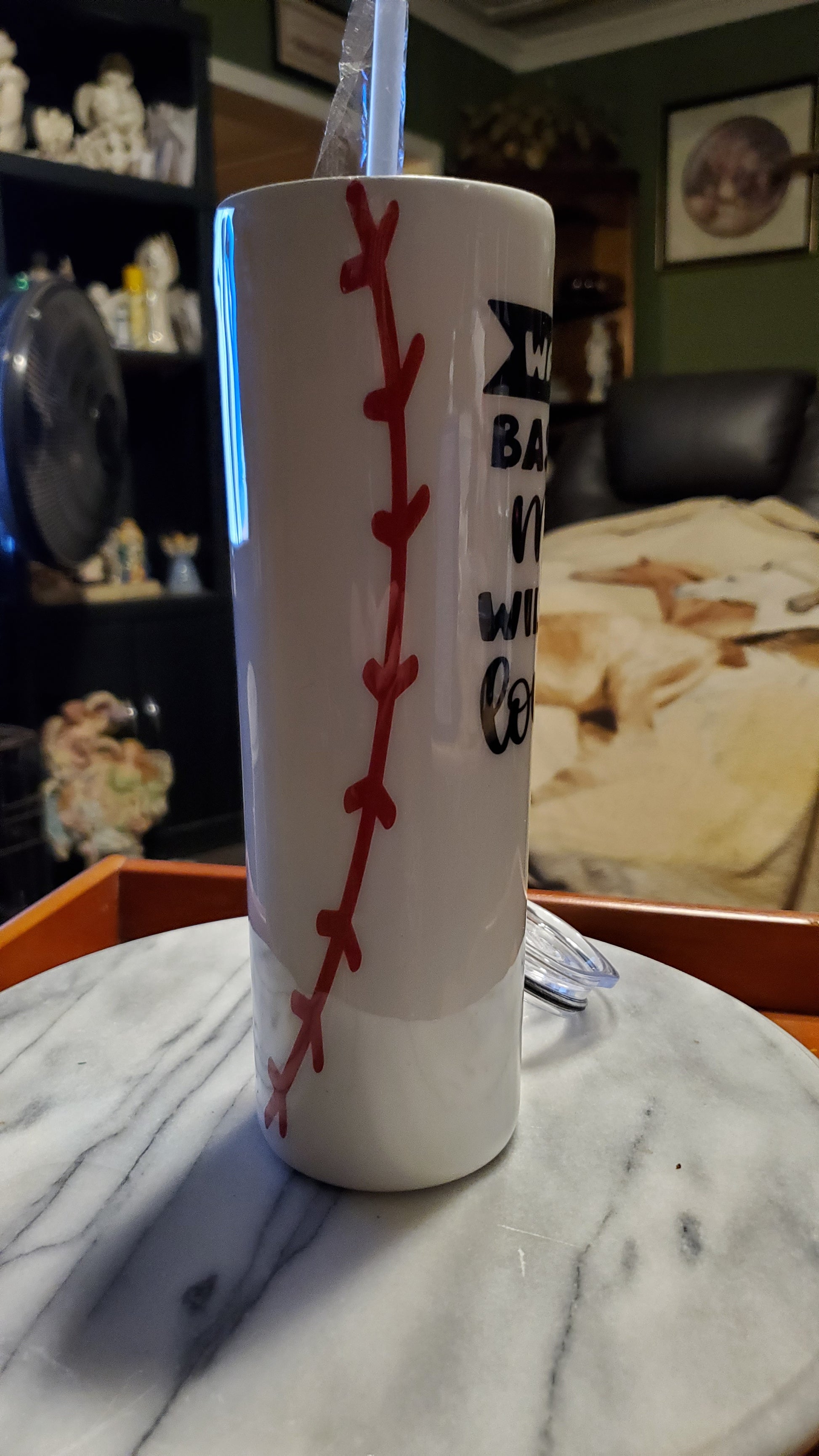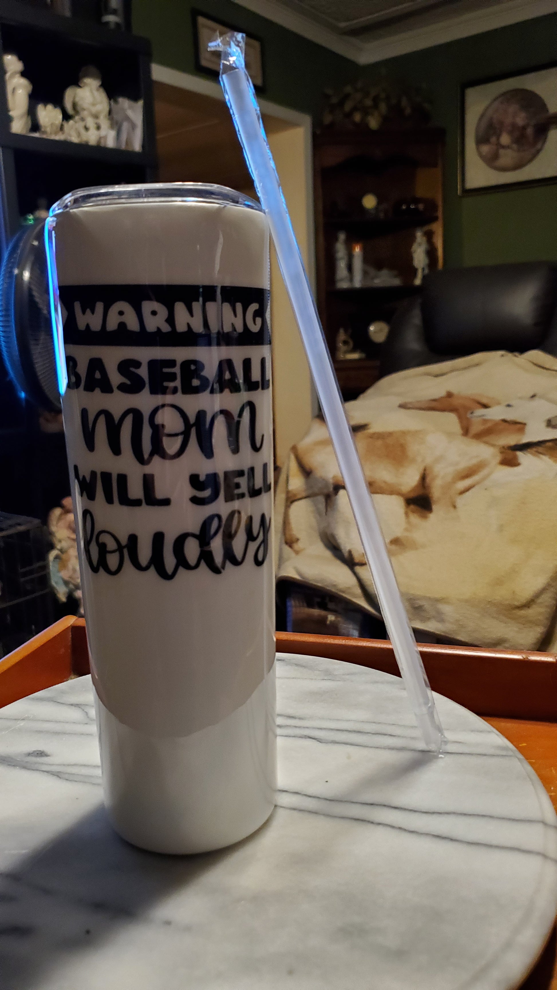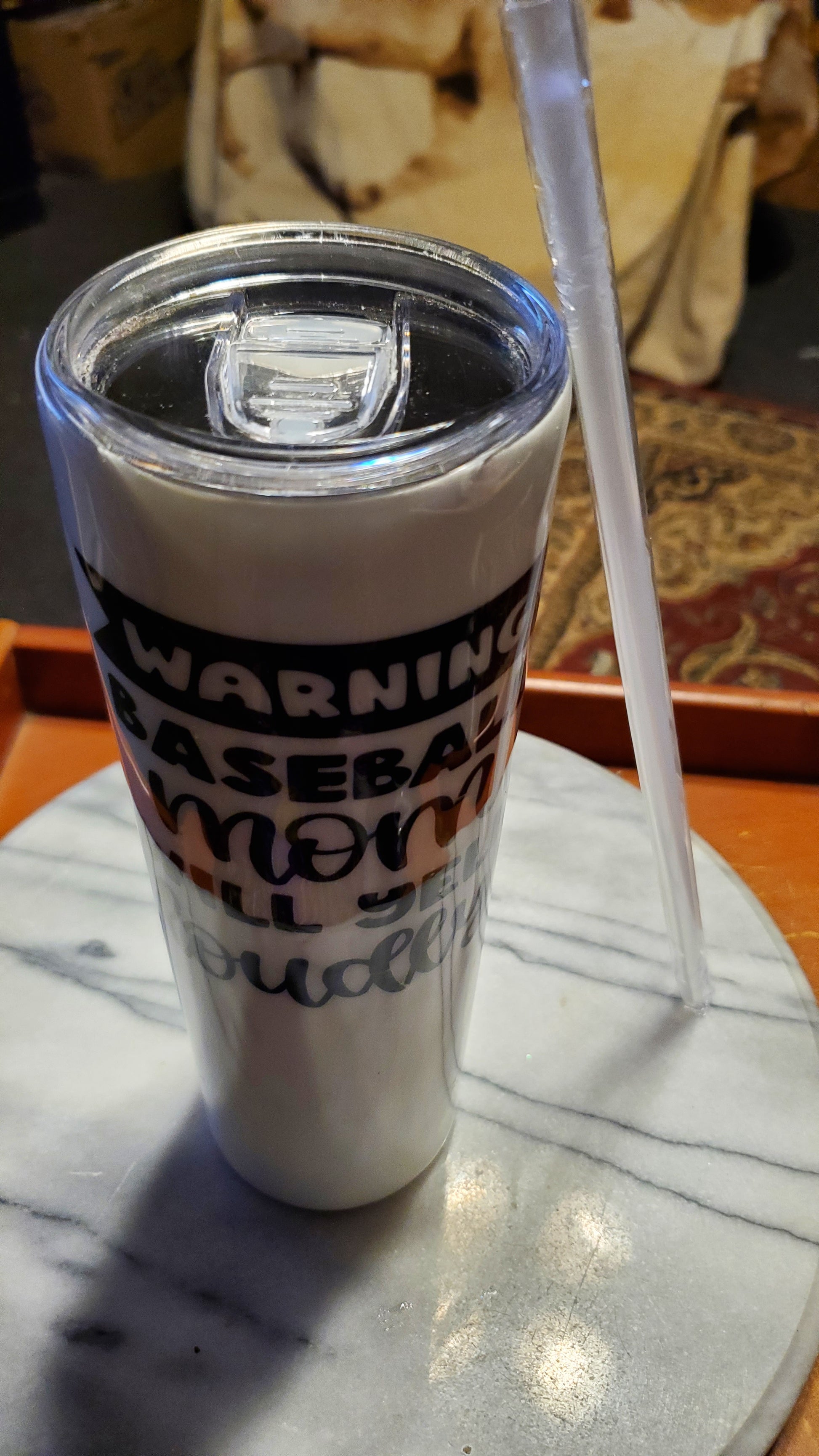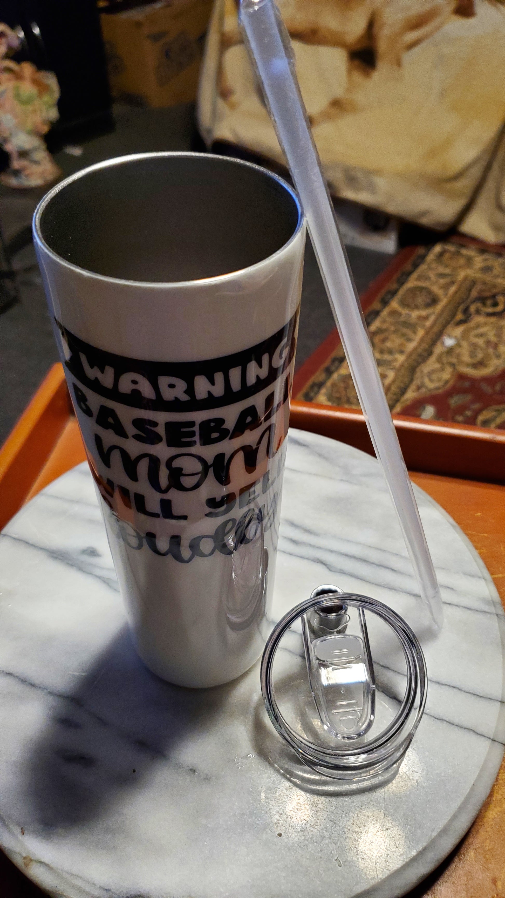 30 0z Baseball mom hogg Stainless steel tumbler cup.Keeps drinks cold or hot for hours. Don't put it in the dishwasher, microwave, freezer or direct sunlight. Hand wash only in warm water.