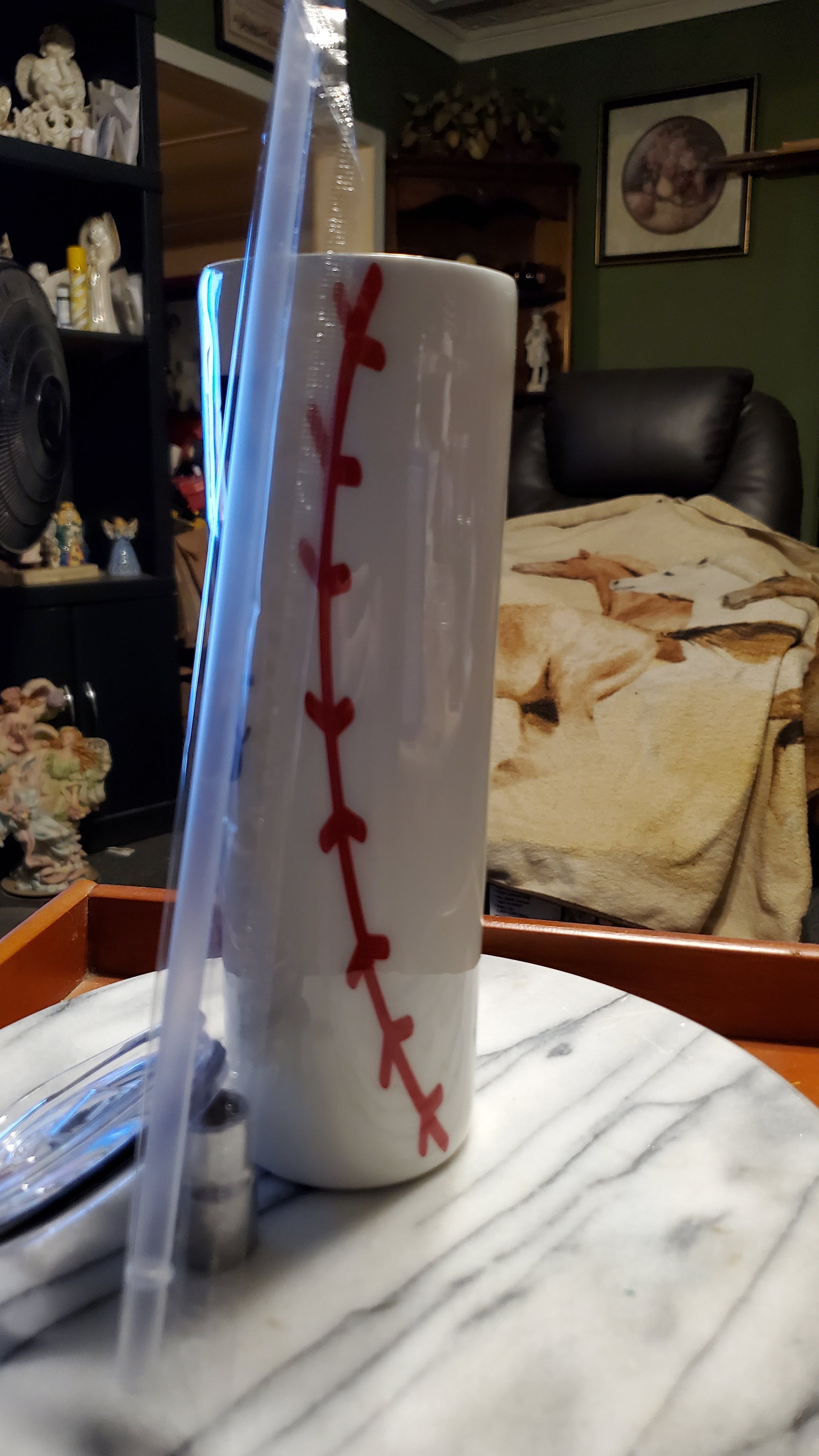 30 0z Baseball Mom Stainless steel tumbler cup.Keeps drinks cold or hot for hours. Don't put it in the dishwasher, microwave, freezer or direct sunlight. Hand wash only in warm water.