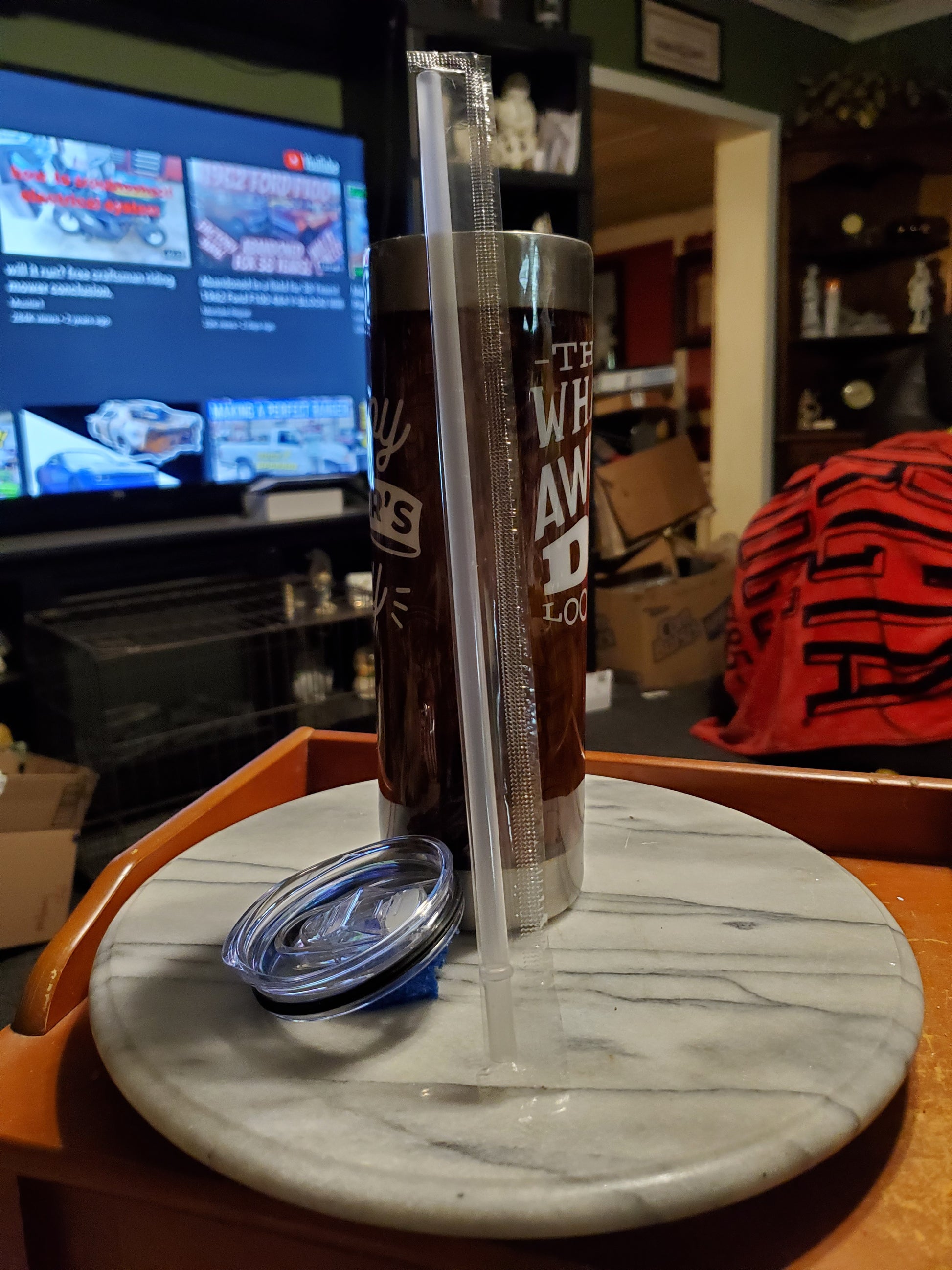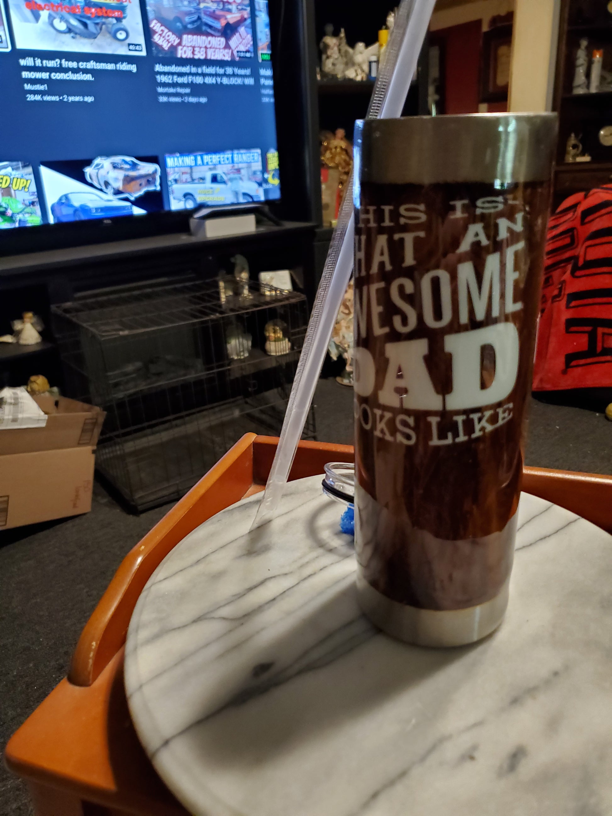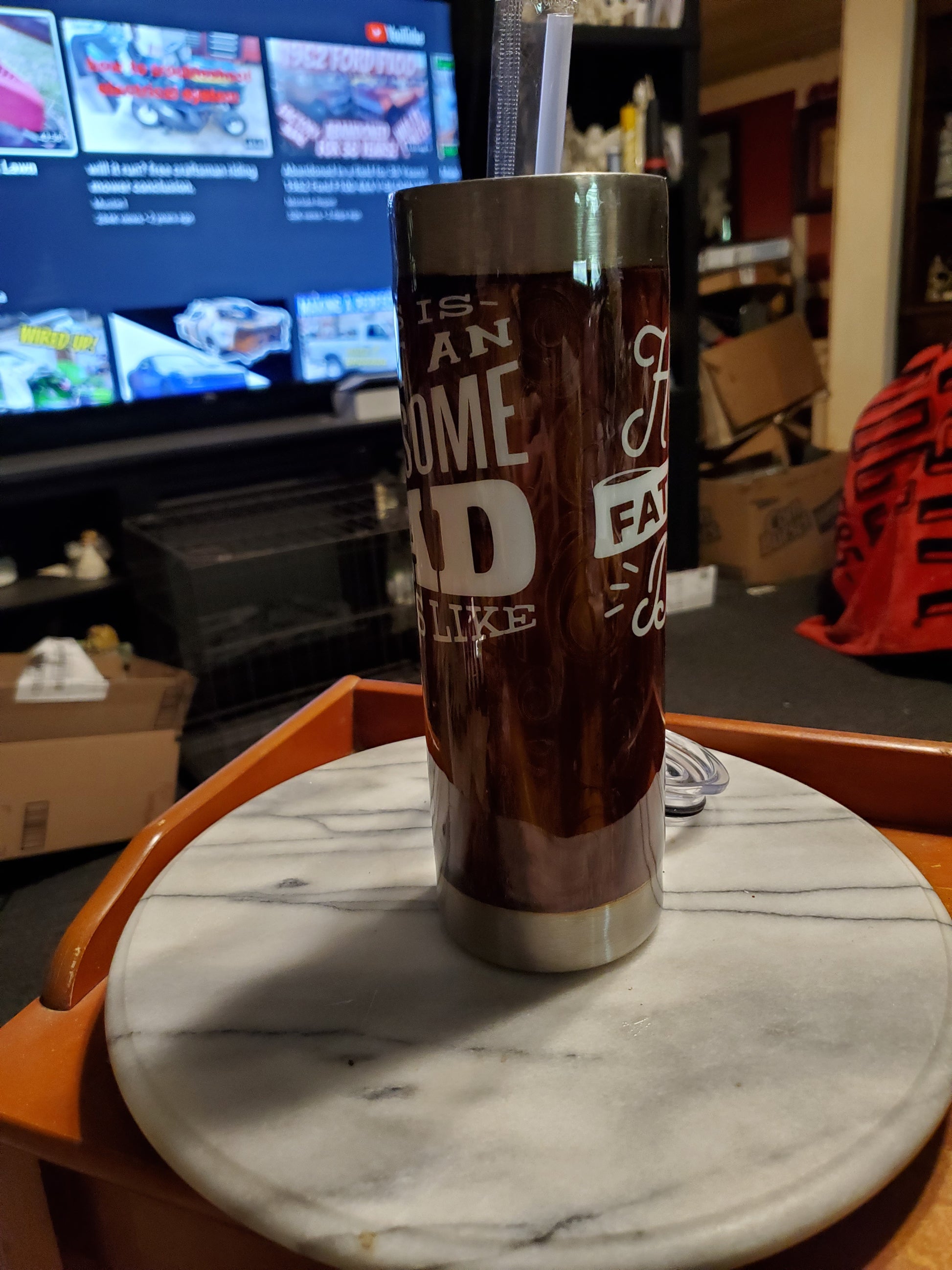 30 0z Happy Father's day Stainless steel hogg tumbler cup. Keeps drinks cold or hot for hours. Don't put it in the dishwasher, microwave, freezer or direct sunlight. Hand wash only in warm water.