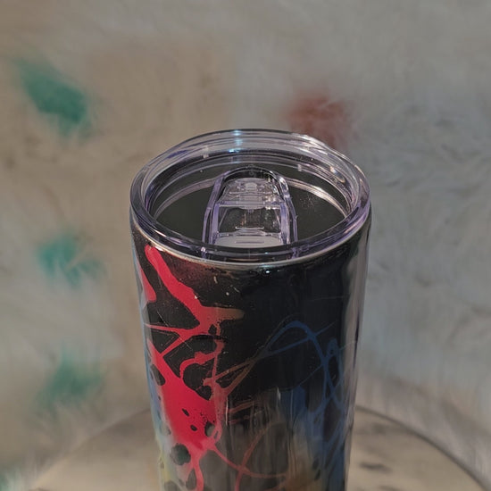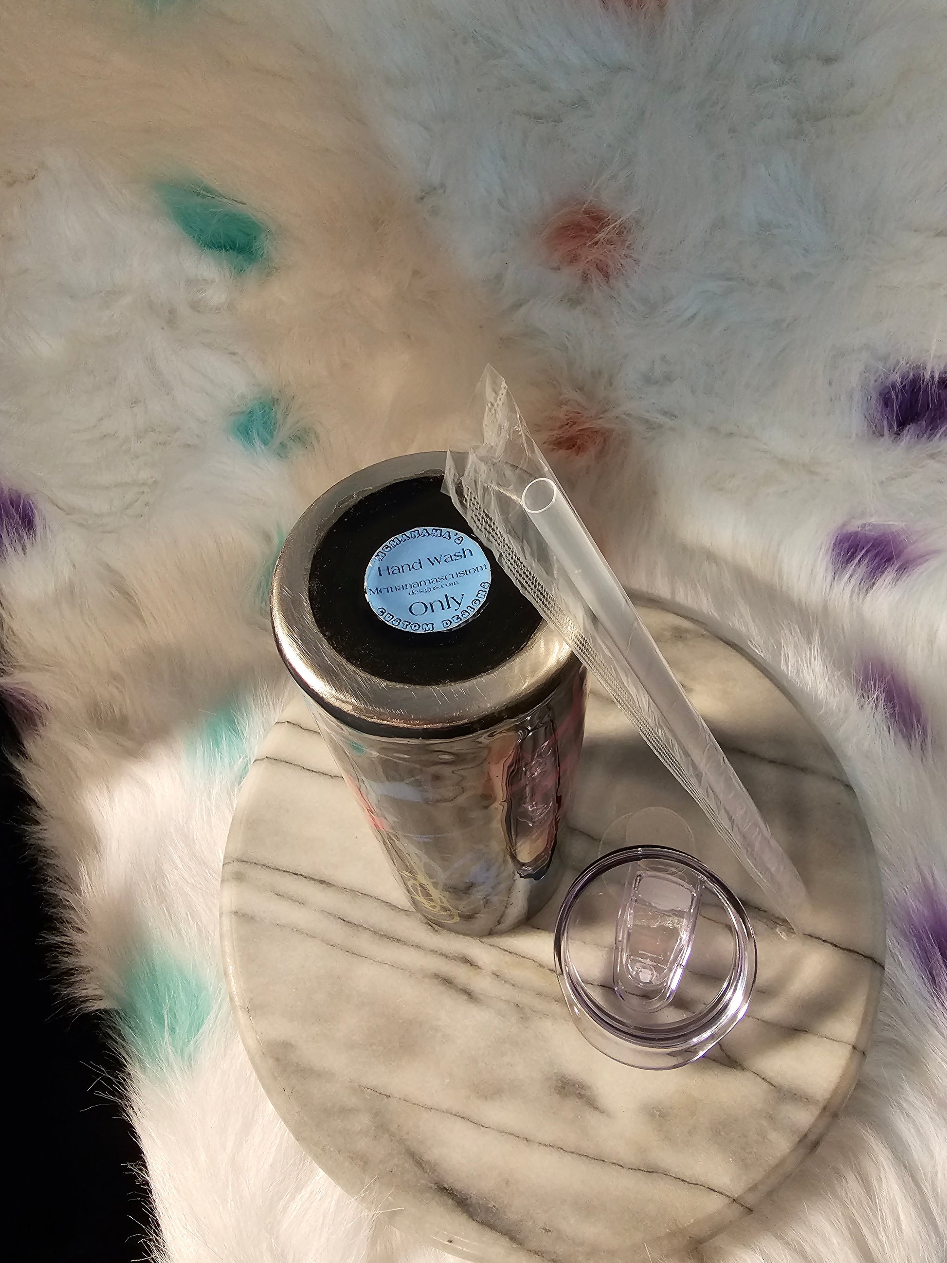 30oz Hippy double wall stainless steel tumbler cup.Keeps drinks cold or hot for hours. Don't put it in the dishwasher, microwave, freezer or direct sunlight. Hand wash only in warm water. Ready to ship.