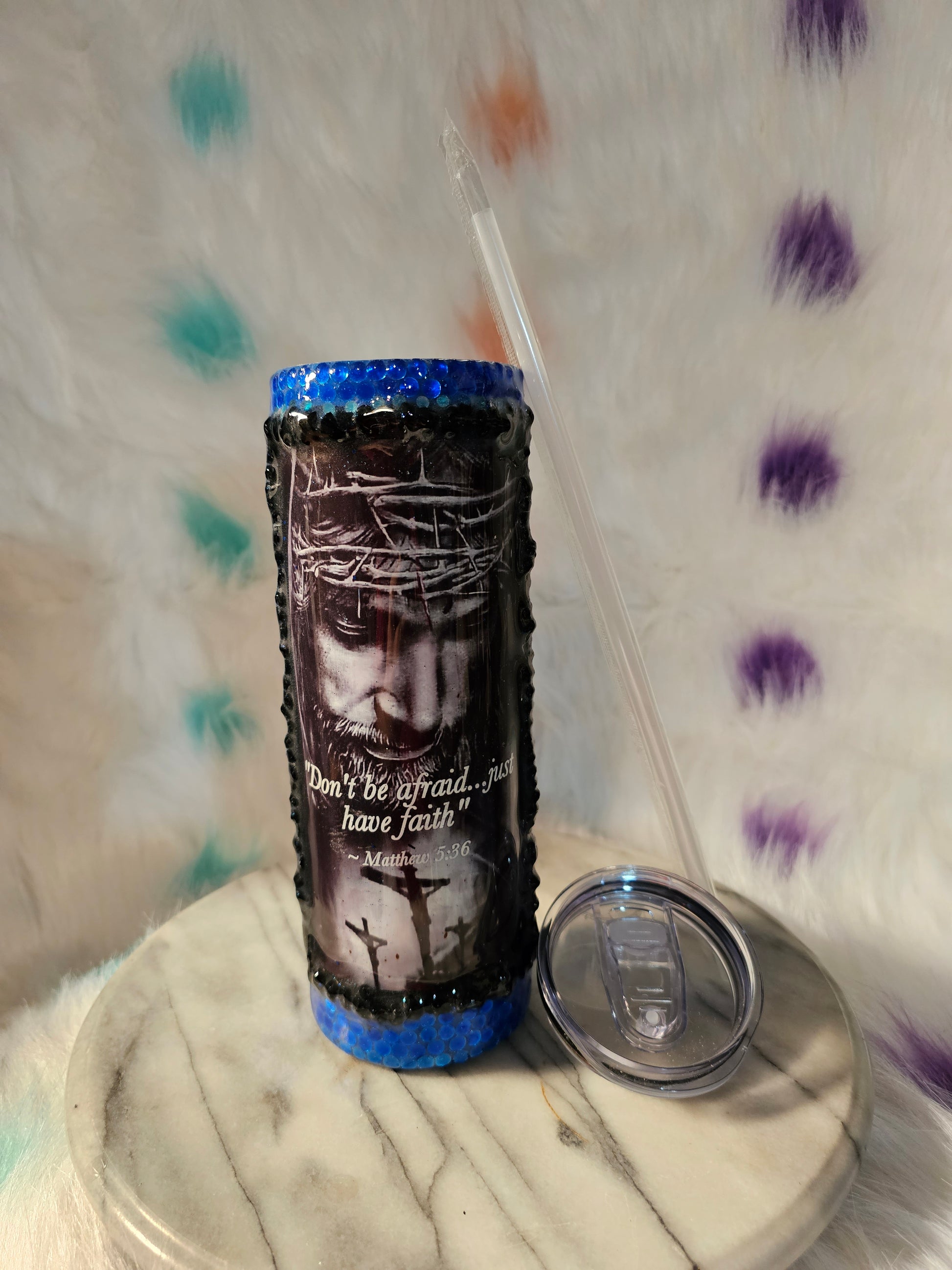 30oz Jesus our savior double wall stainless steel tumbler cup.Keeps drinks cold or hot for hours. Don't put it in the dishwasher, microwave, freezer or direct sunlight. Hand wash only in warm water. Made in rhinestones.