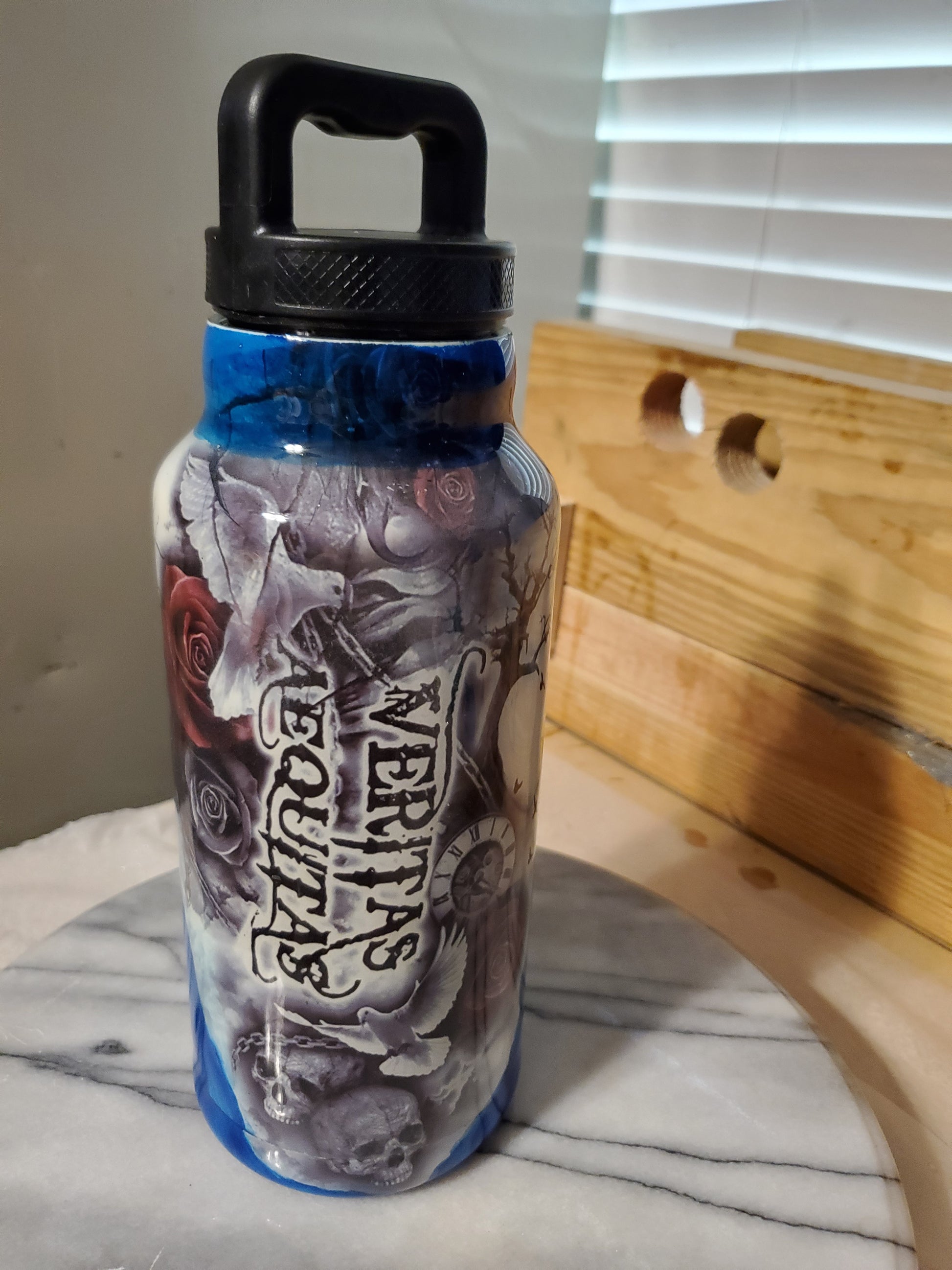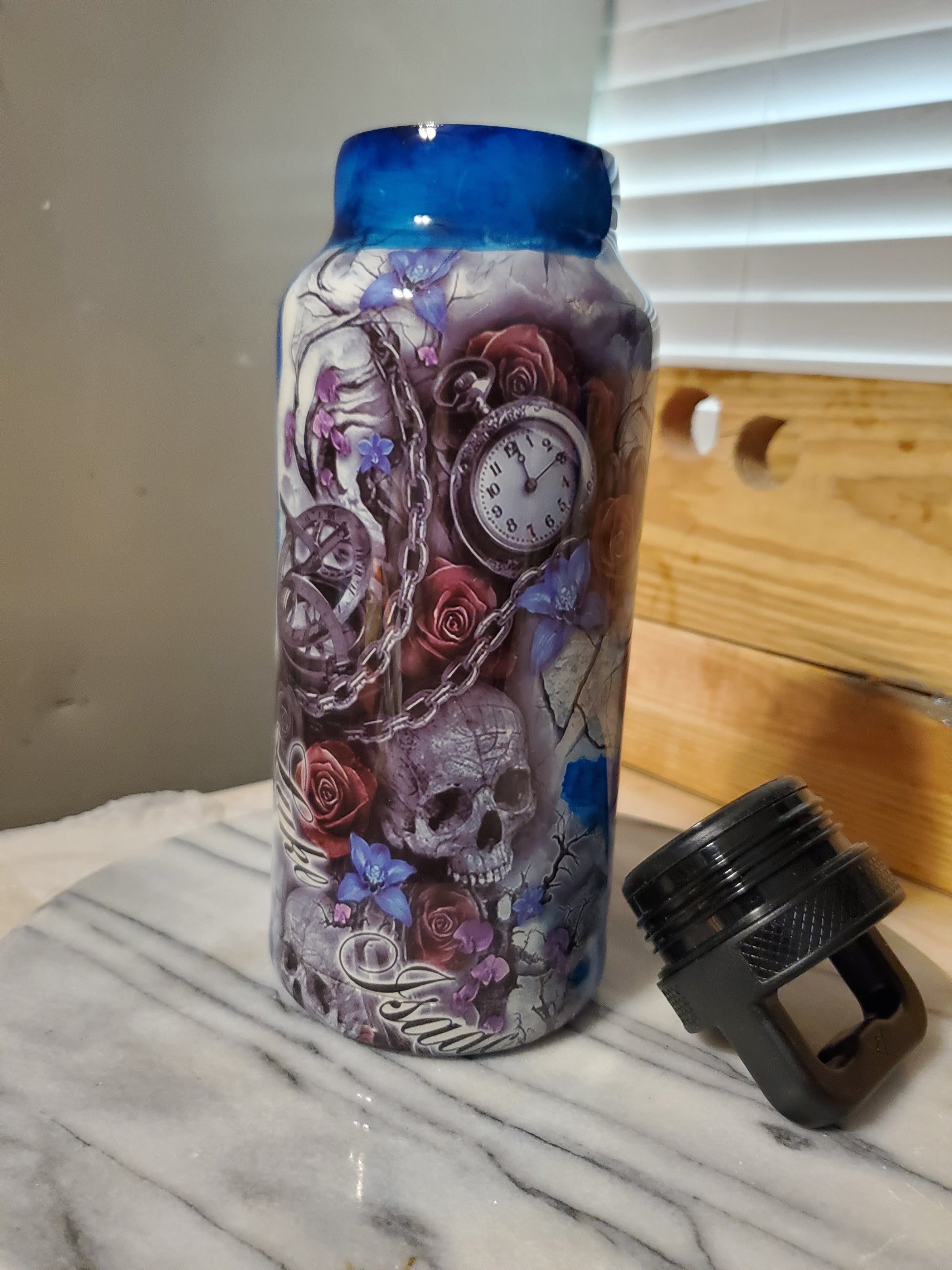 36oz Skelton and chain double walled insulated Stainless steel water bottle.