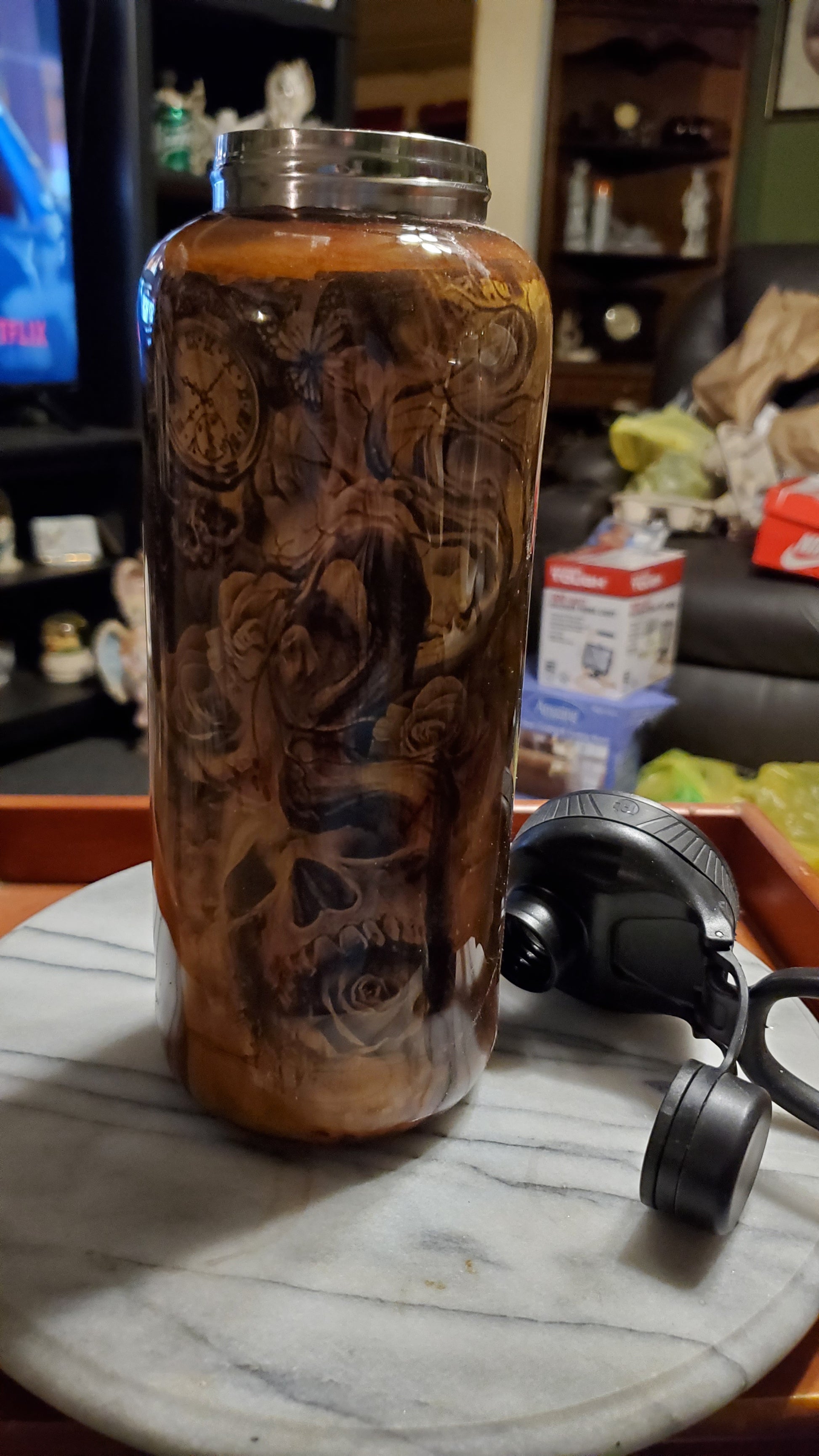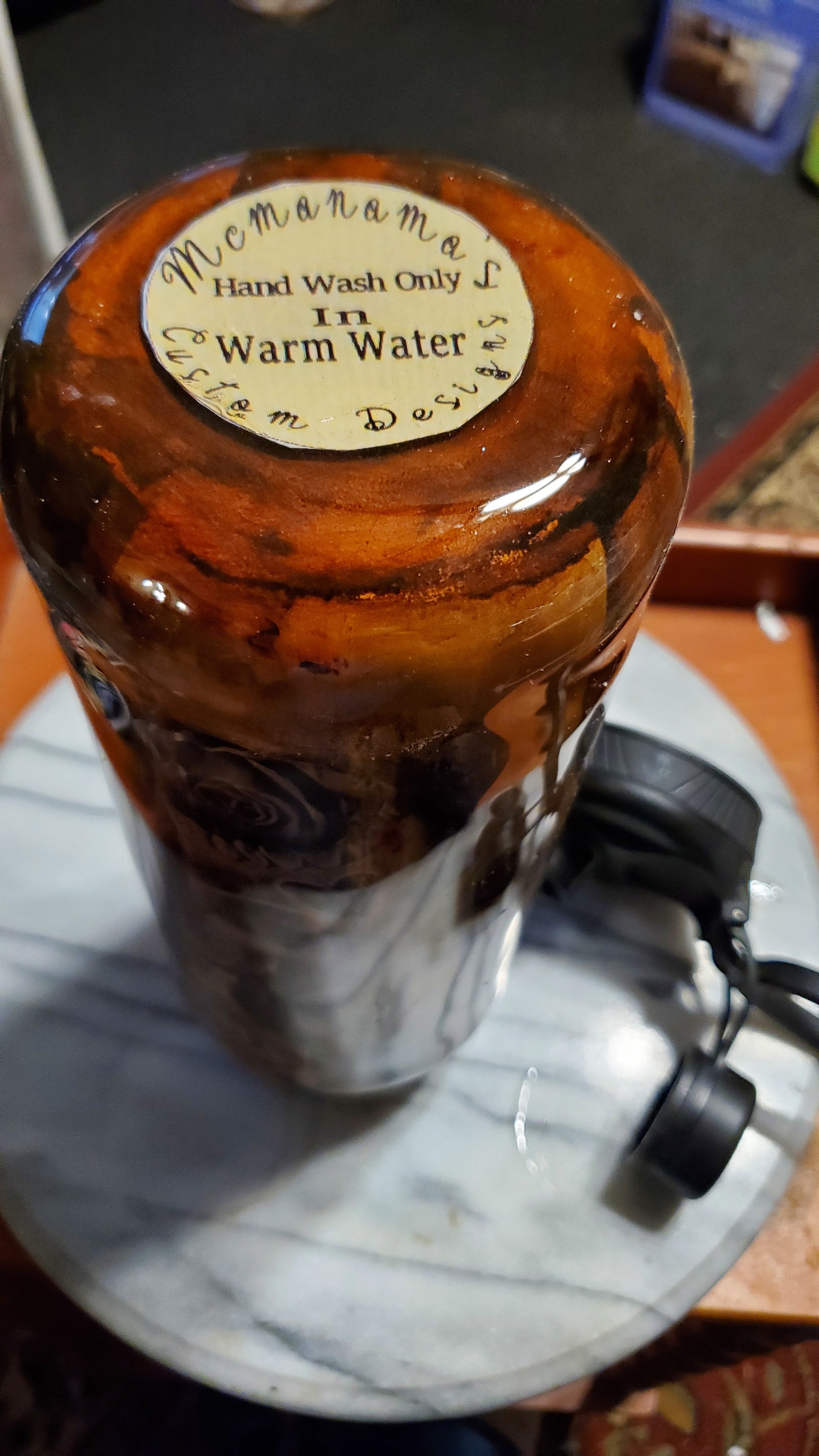 40 oz Spooky skeleton head tumbler tumbler.Hand wash only in warm water. Don't put it in the dishwasher, microwave, freezer or direct sunlight.