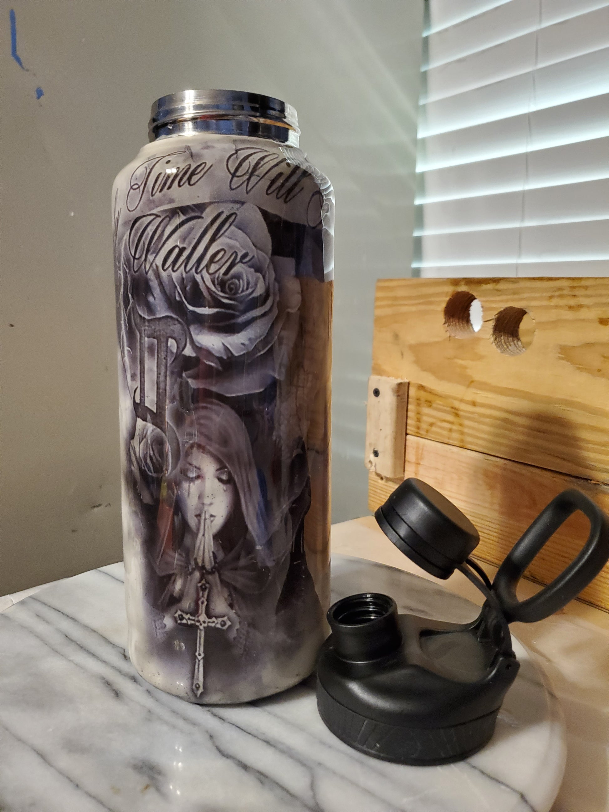 40 oz Time will tell Stainless steel Ranger Pro tumbler cup.Don't put it in the dishwasher. Hand wash only.I can put your name on it or do a personal design.Charge it in the light and it will glow.