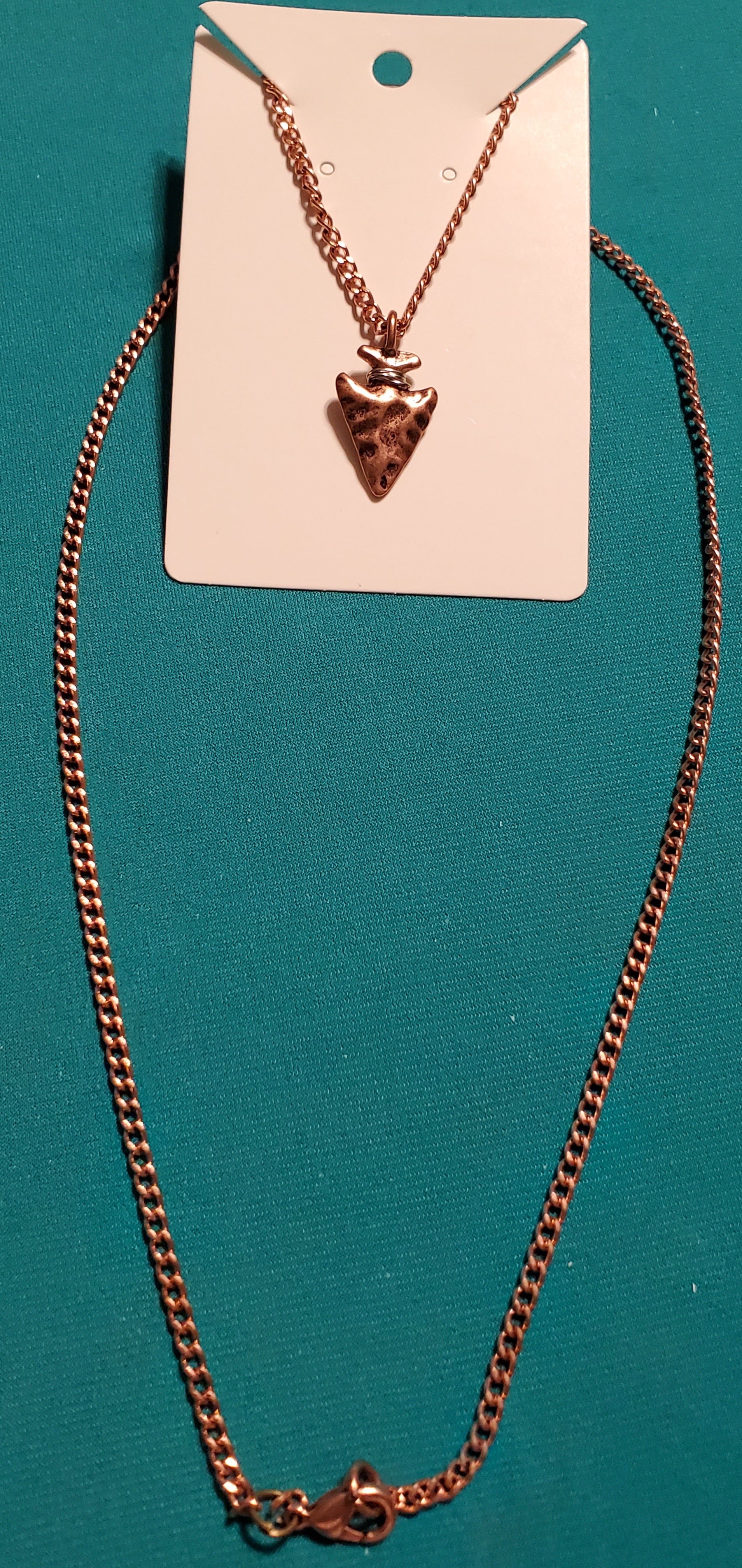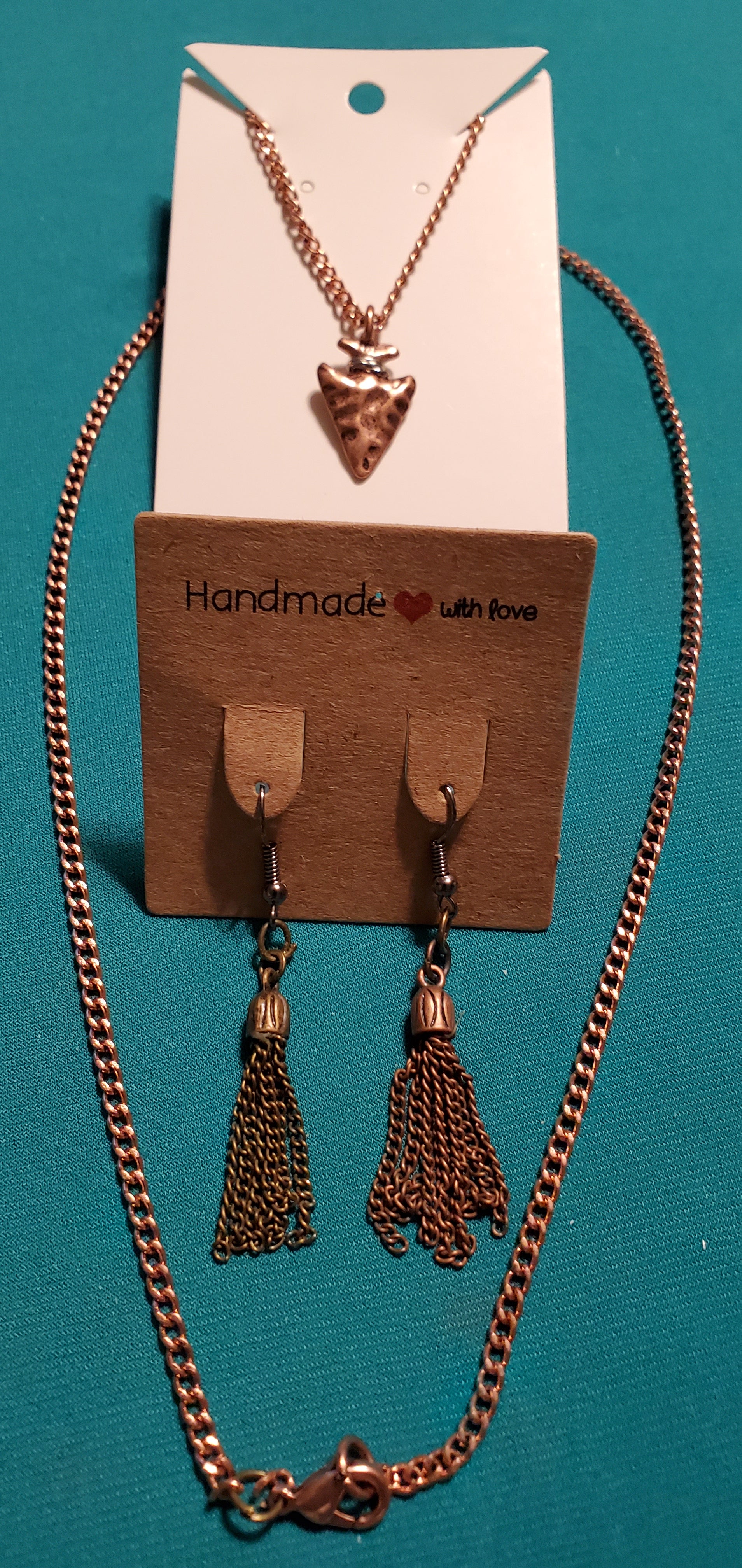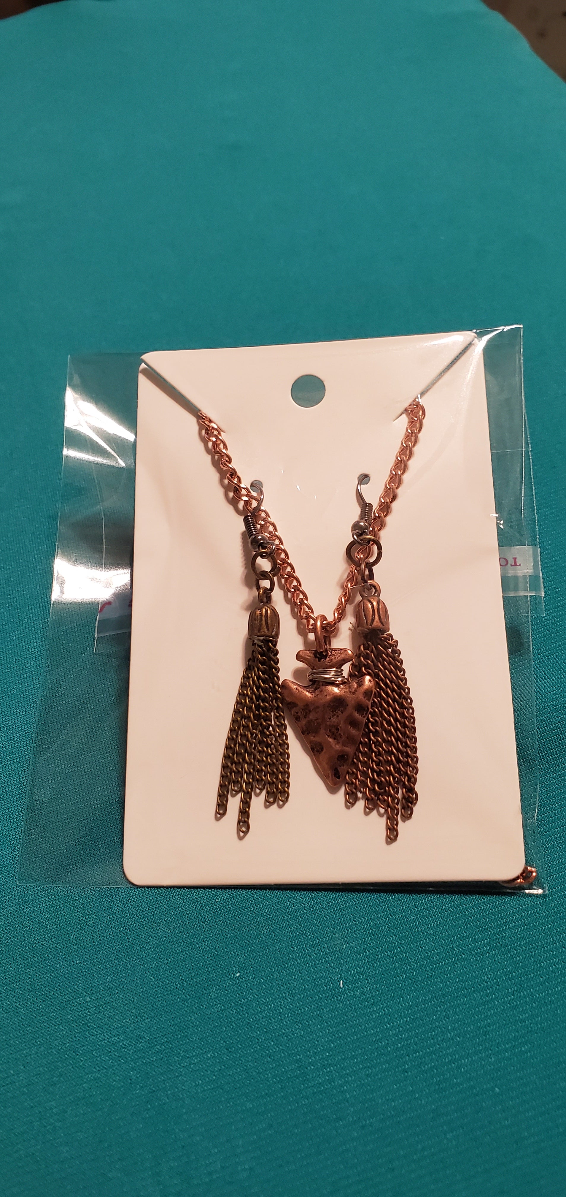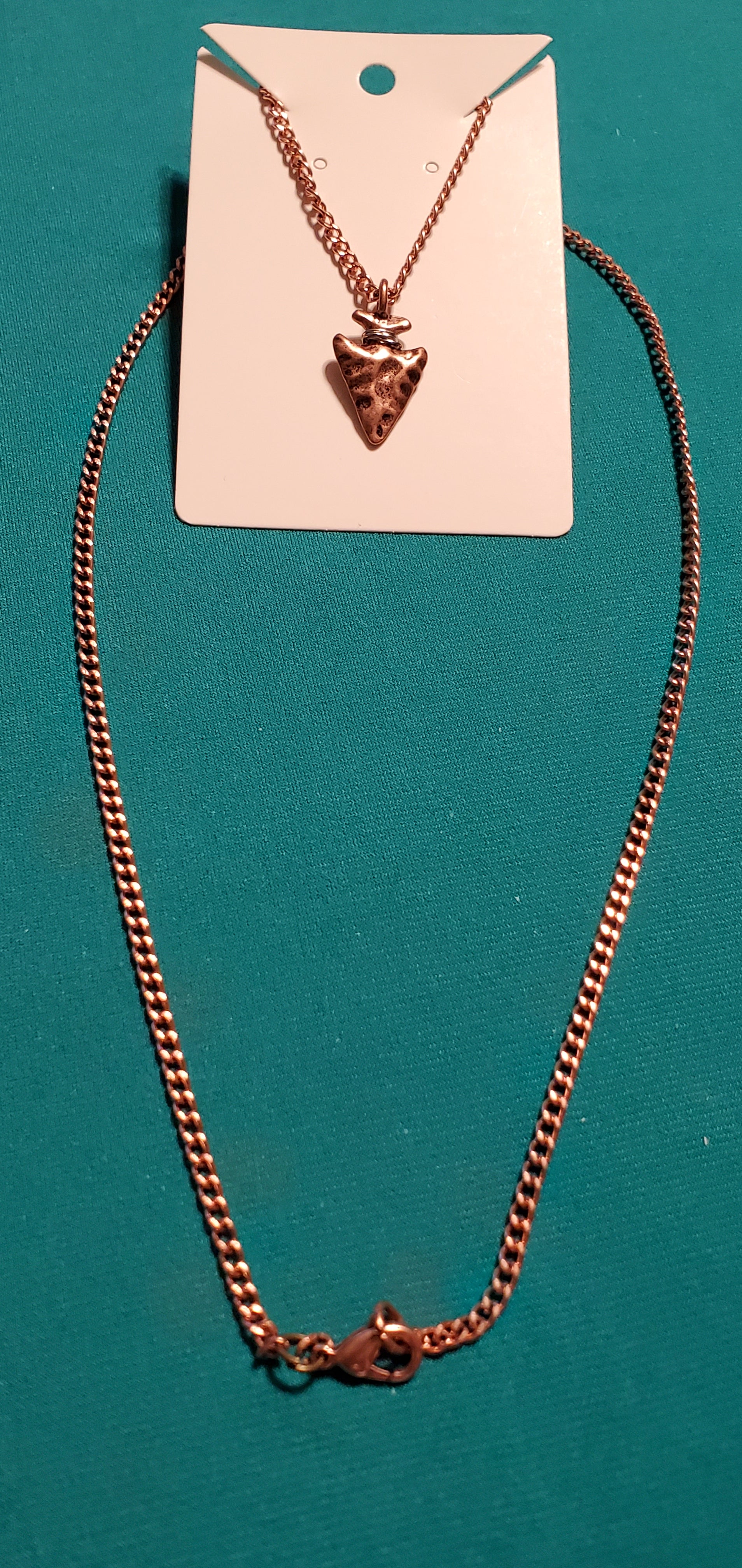 Bronze plated stainless steel arrowhead necklace and bronze plated chain links earrings. You can get the set for $10.00.