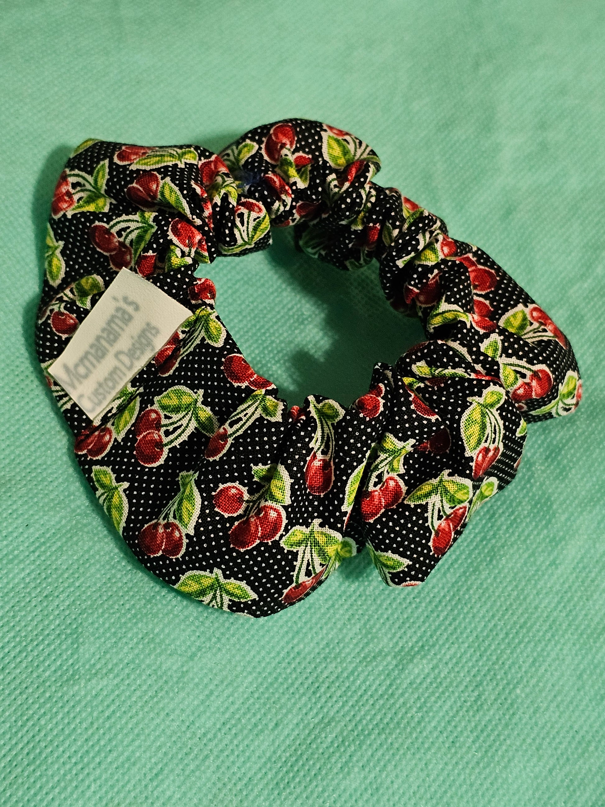This black cherry standard scrunchie features a durable double-stitched design for long-lasting wear. Elevate your hair game with this versatile accessory that adds a touch of sophistication to any hairstyle. Expertly crafted for a secure hold, this scrunchie is an essential addition to your hair accessory collection.Black cherry standard scrunche.I double stitch them.