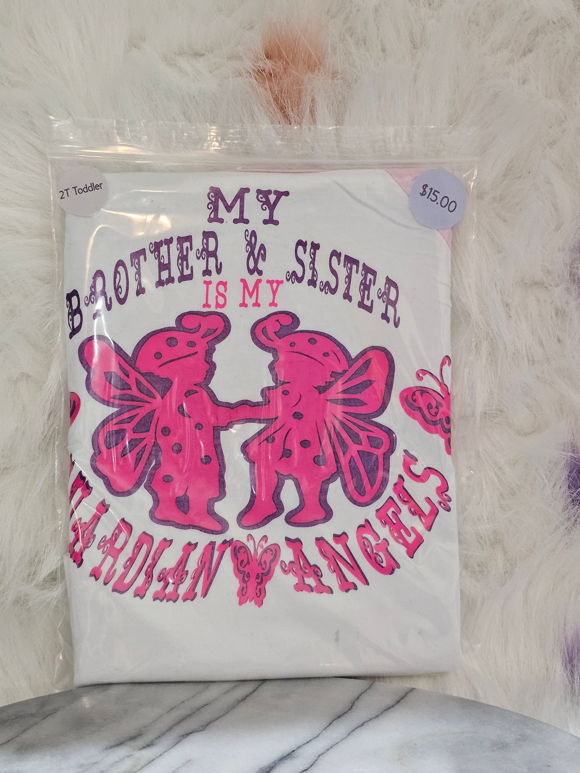 Size 4T 100% cotton White &Pink brother & sister is my guardian Angel