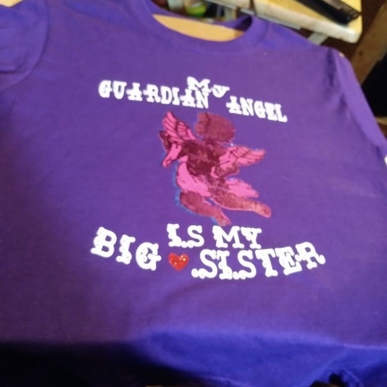 Size XS Youth 100% cotton My guardian Angel is my big sister cotton shirt.I can make different sizes and colors.