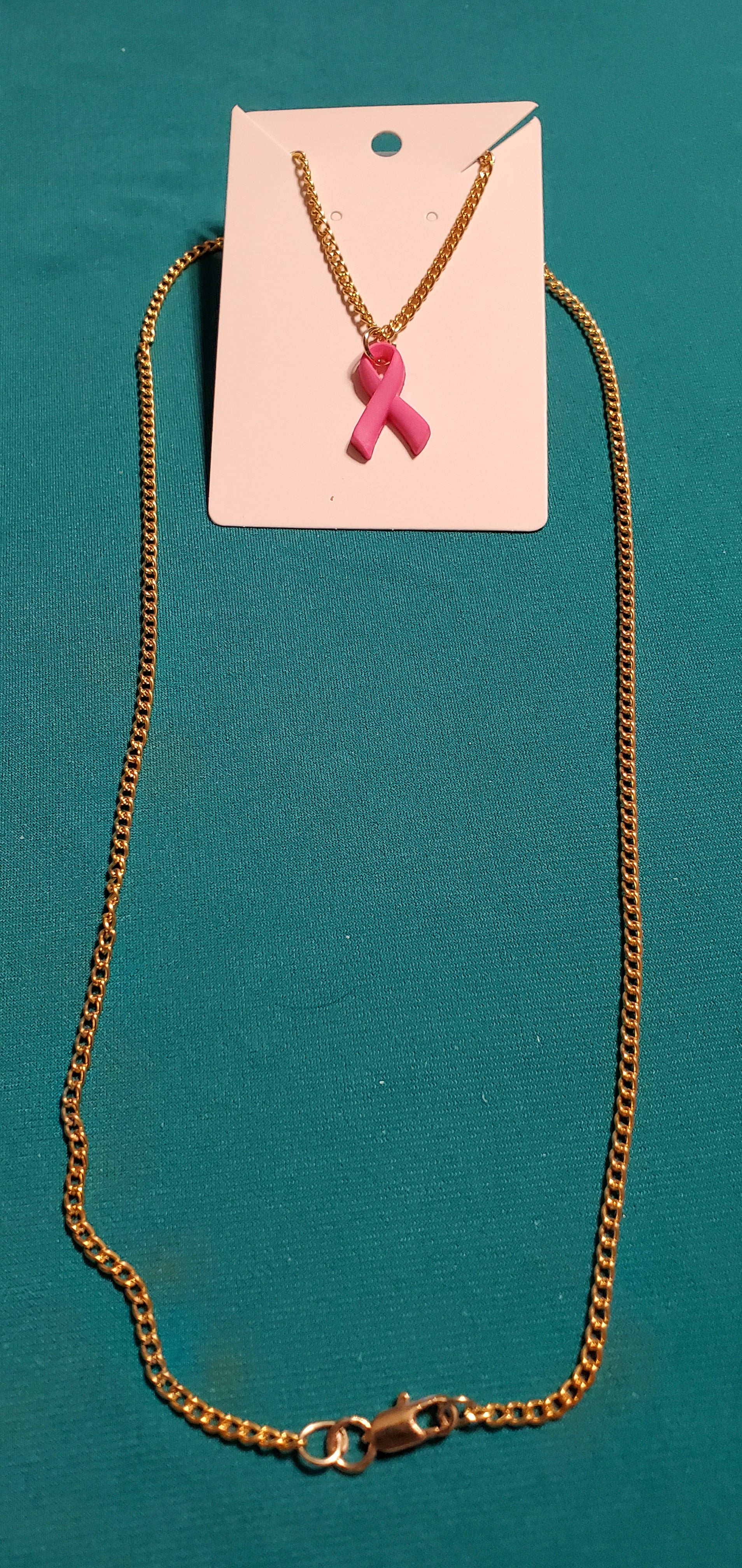 Pink cancer free gold plated earrings. You can get the earrings for $5.00 or the necklace for $5.00 or you can get the set for $10.00.