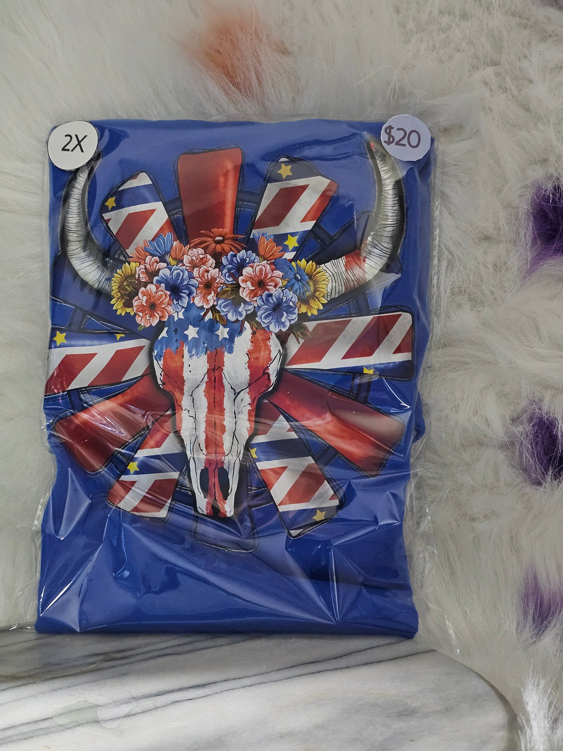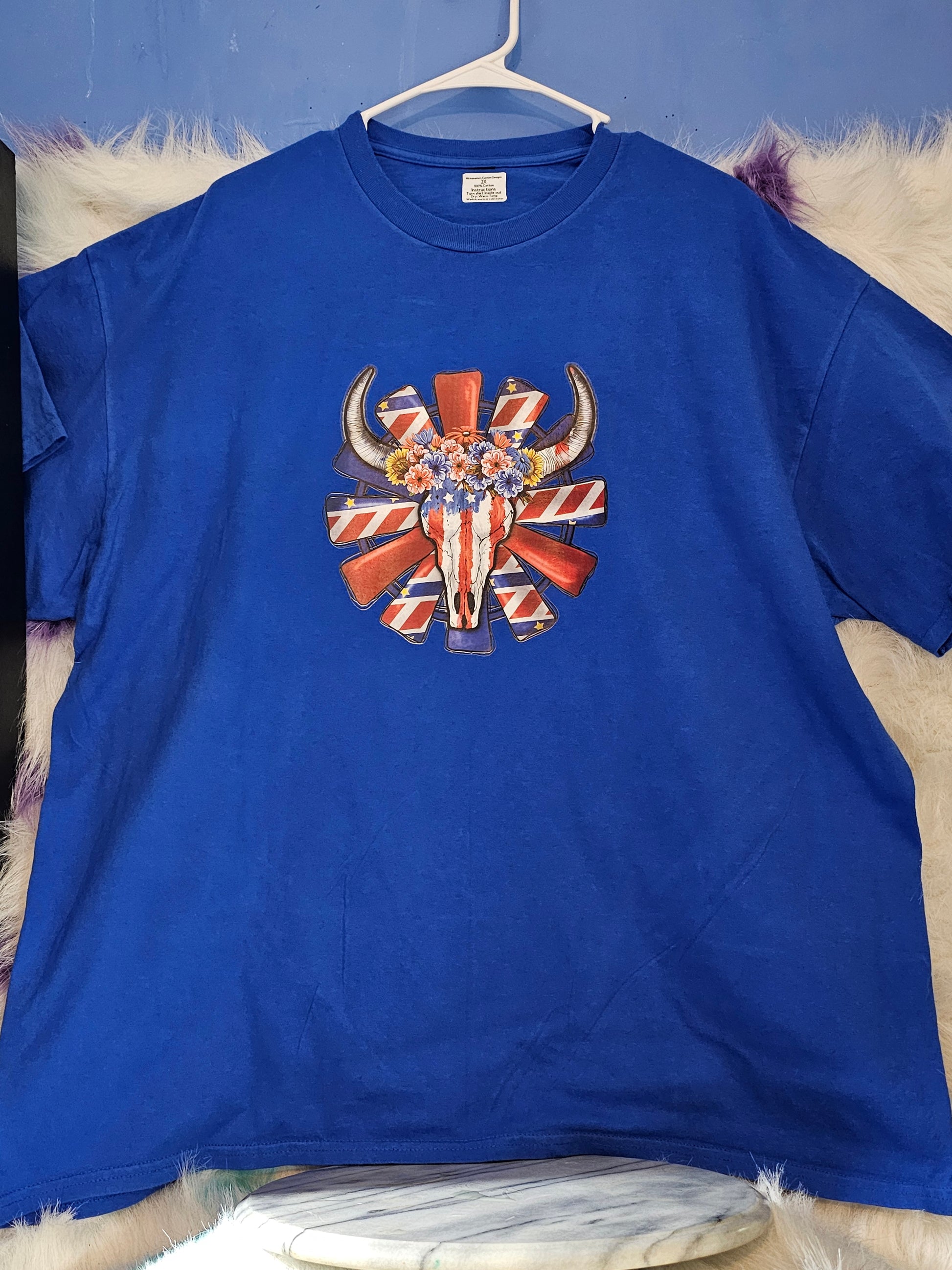 Size 2X 100% cotton blue 4th of July bull head Tshirt