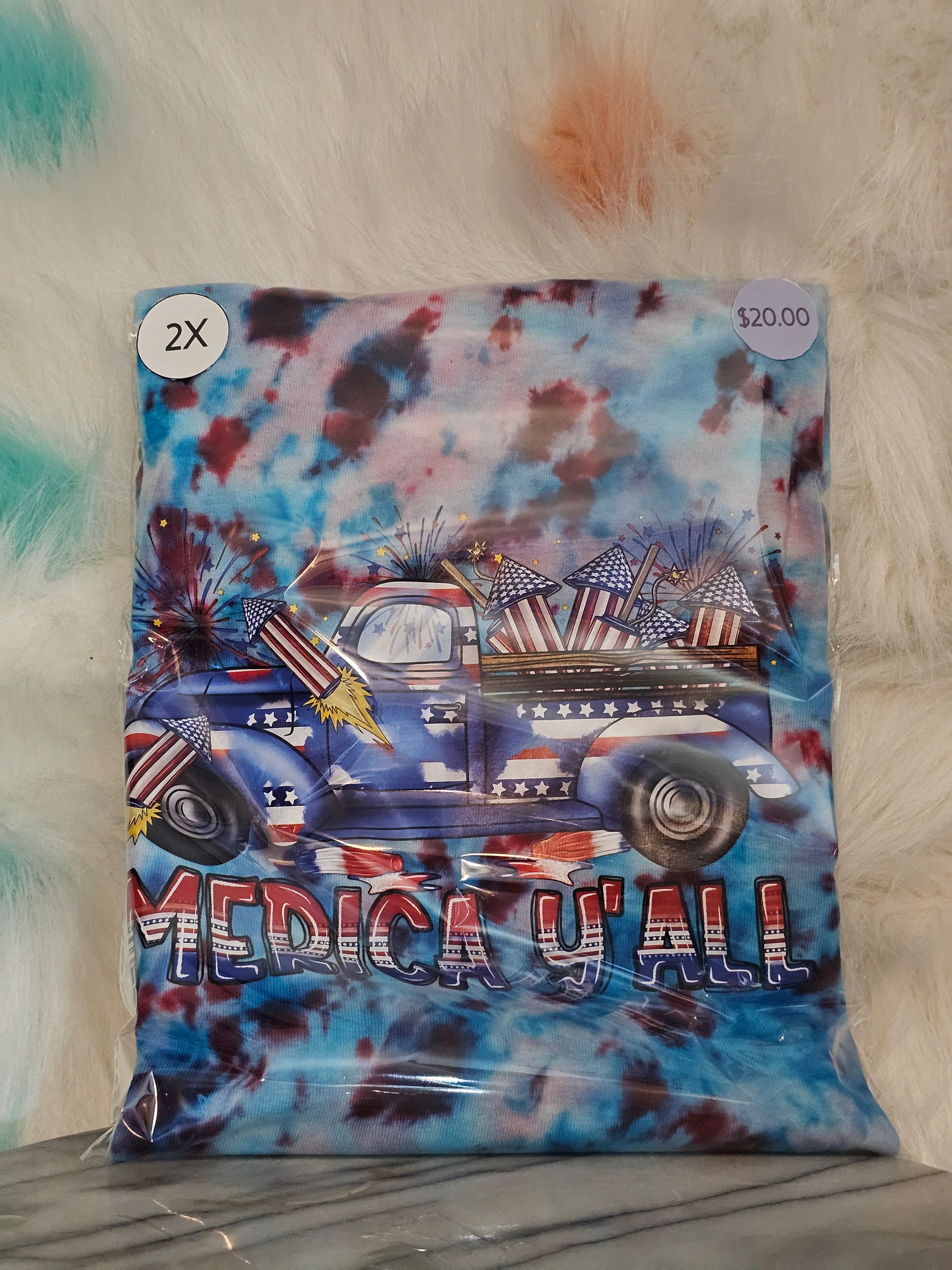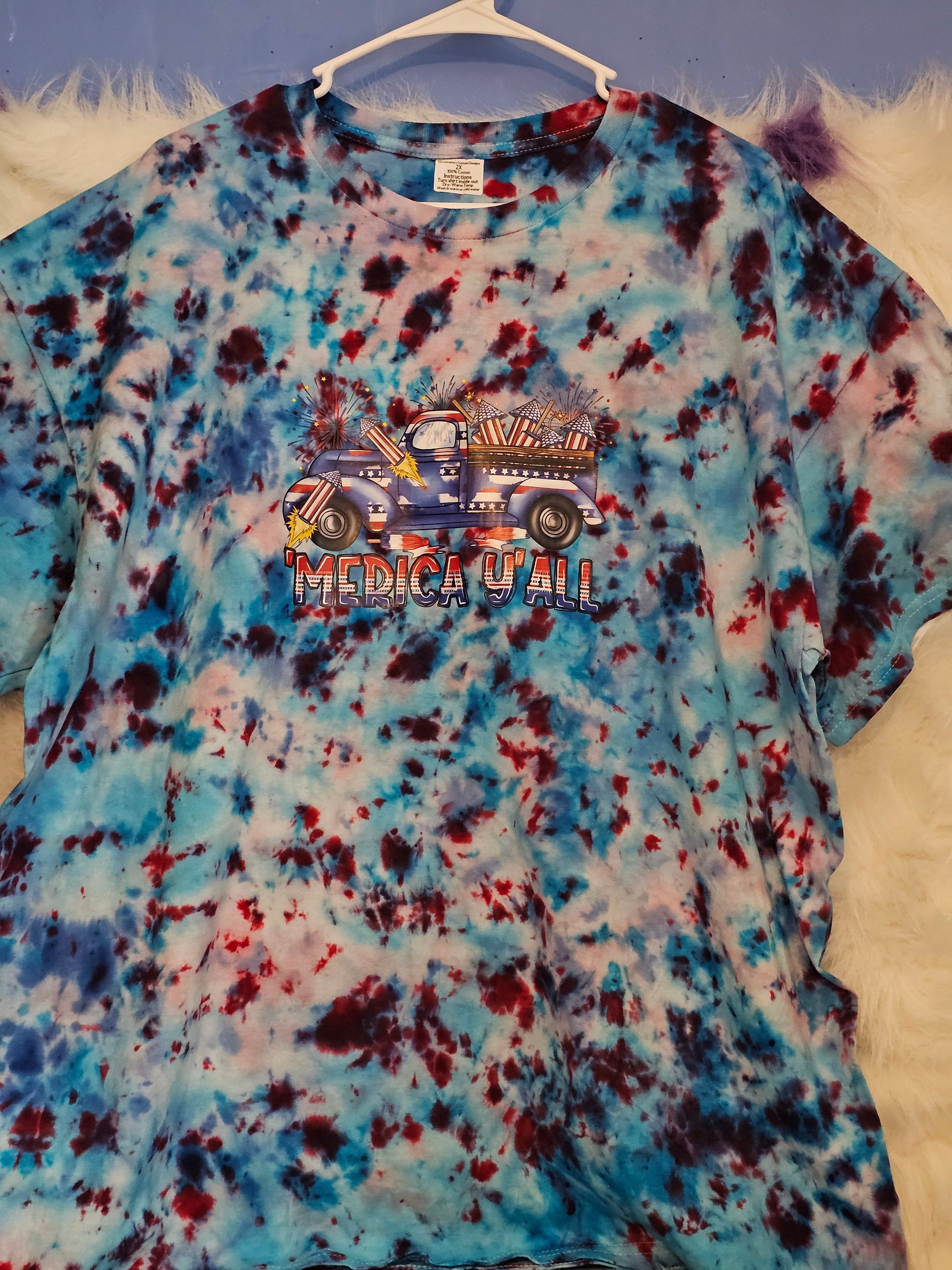 Size 2X 100% cotton tye dye Merica Y'all Tshirt