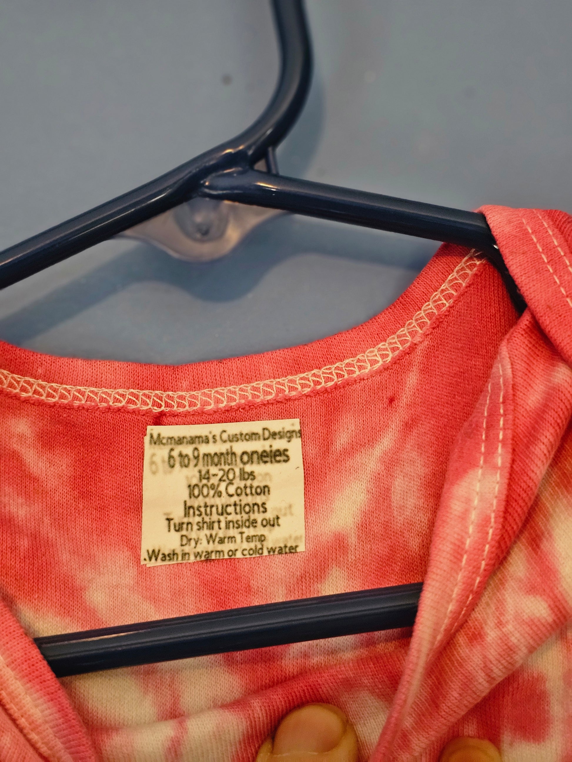 Indulge in the softness and comfort of our Size 6to9 months 100% cotton Pink & white tye dye Bless to be your mom Tshirt. Perfect for new moms, this t-shirt boasts a beautiful tie-dye design and features a heartwarming message. Made with 100% cotton, it's gentle on your baby's skin for all-day wear.Washing instructions:Turn oneies inside out and wash in cold or warm water and dry on low heat or air dry.DO NOT wash in Hot water.Your information is protected.