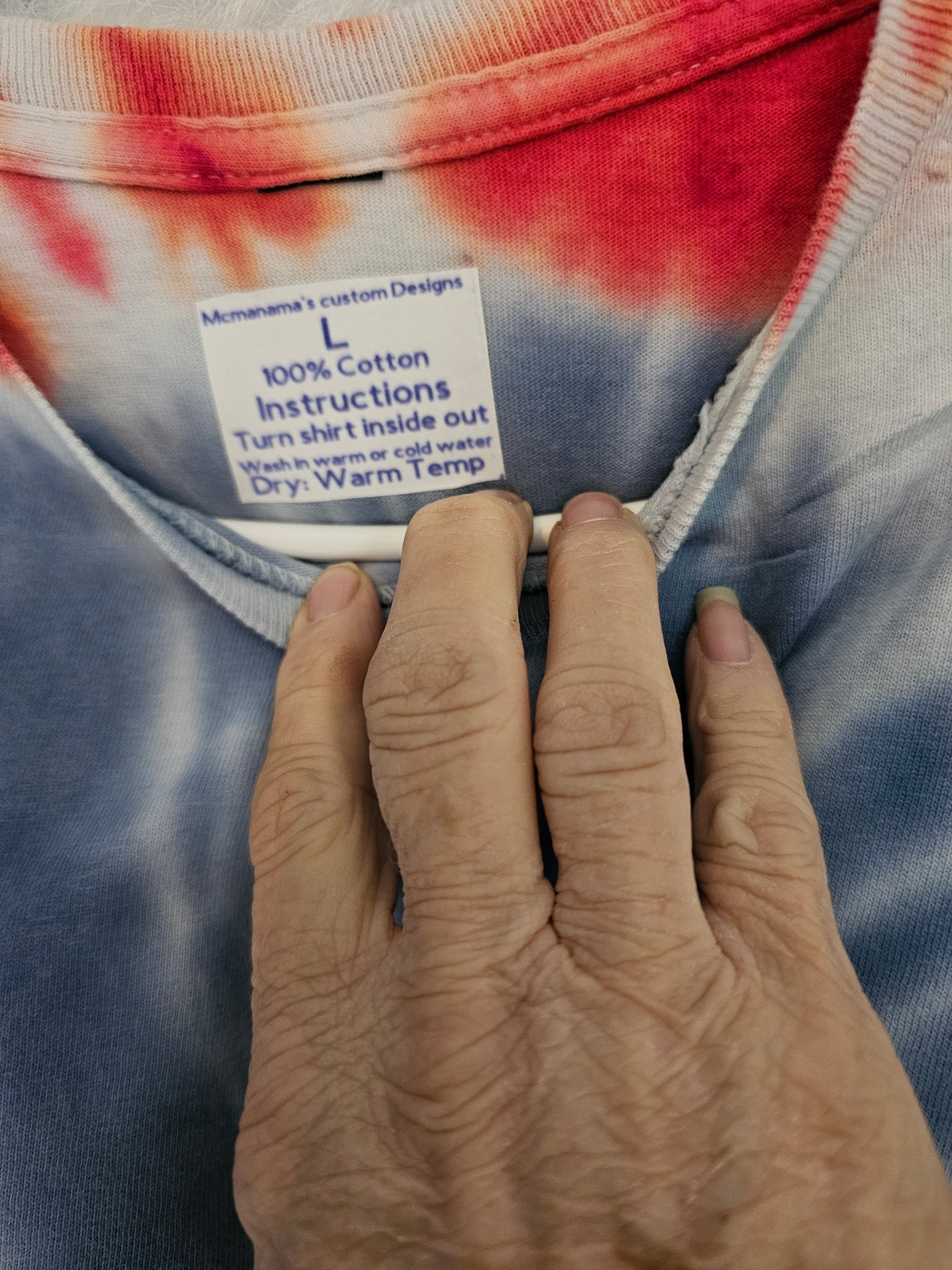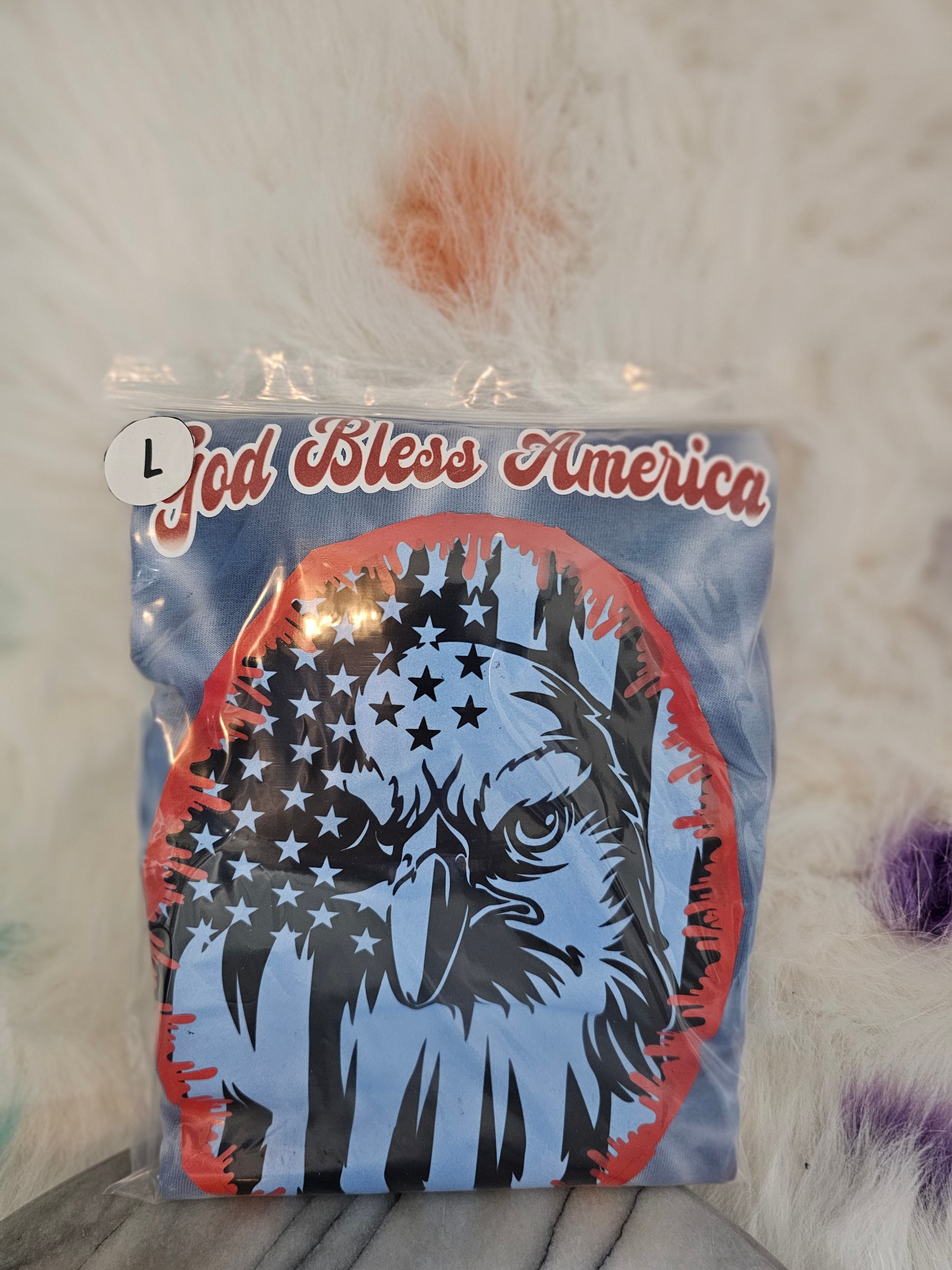 This Size L 100% cotton God bless America tie dye Tshirt is a must-have for any patriotic American. Made with 100% cotton, this Tshirt offers comfortable and breathable wear for any occasion. The stylish tie dye design adds a unique touch to any outfit, making it a versatile addition to your wardrobe. Show your love for your country and express your fashion sense with this God bless America Tshirt.Size L 100% cotton God bless America tie dye Tshirt. Washing instructions turn Shirt inside out and wash in cold or warm water. Dry on low heat or air dry.DO NOT wash in Hot water.Your information is protected by paypal.