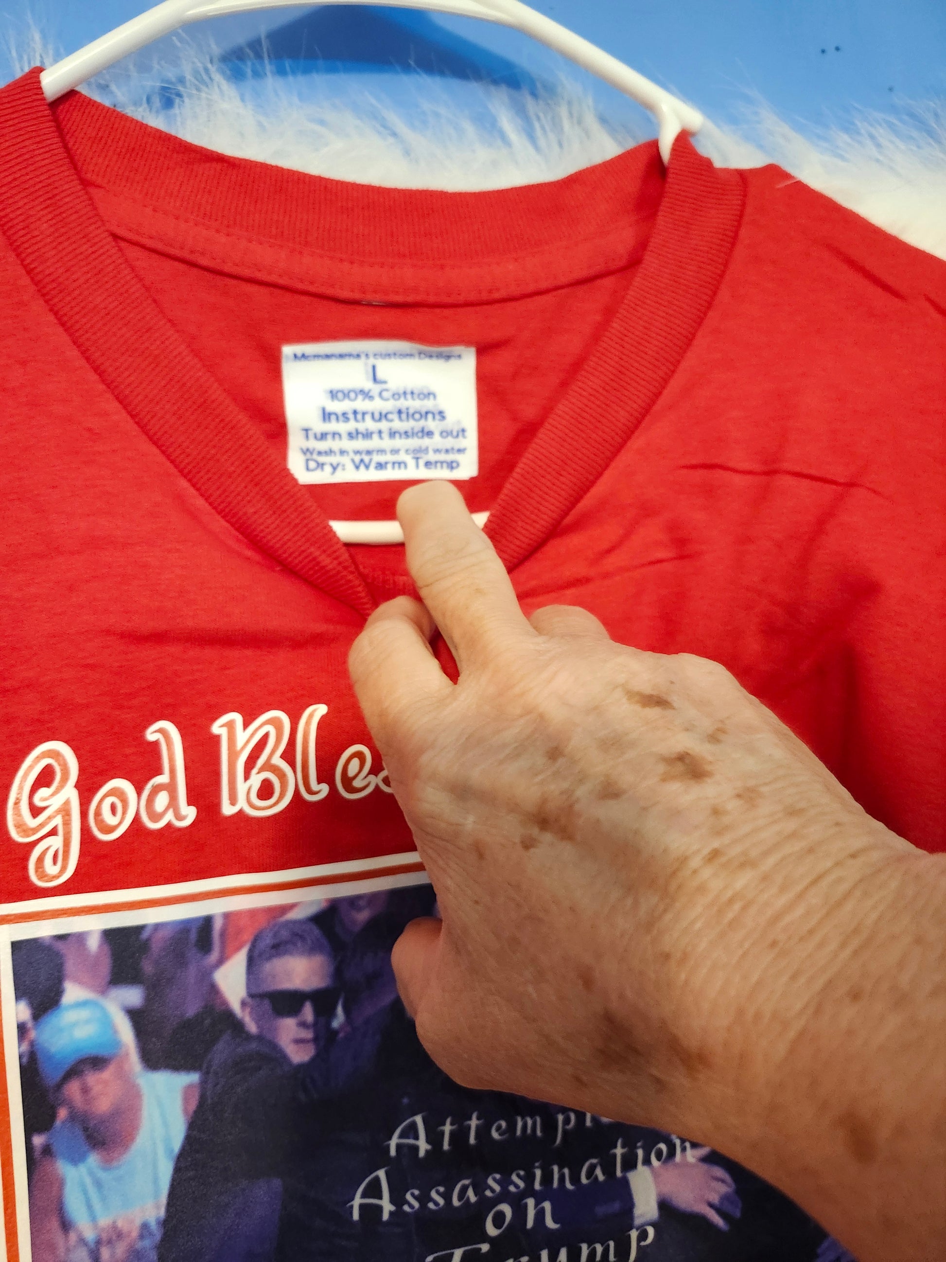 This Size L 100% cotton Red God bless America Tshirt is made with high-quality material for maximum comfort and durability. Show your patriotic pride with the bold "God bless America" design. Perfect for everyday wear or special occasions.Size L 100%cotton red God bless America Tshirt. Washing instructions turn Shirt inside out and wash in cold or warm water and dry on low heat or air dry.DO NOT wash in Hot water.information is protected by paypal.