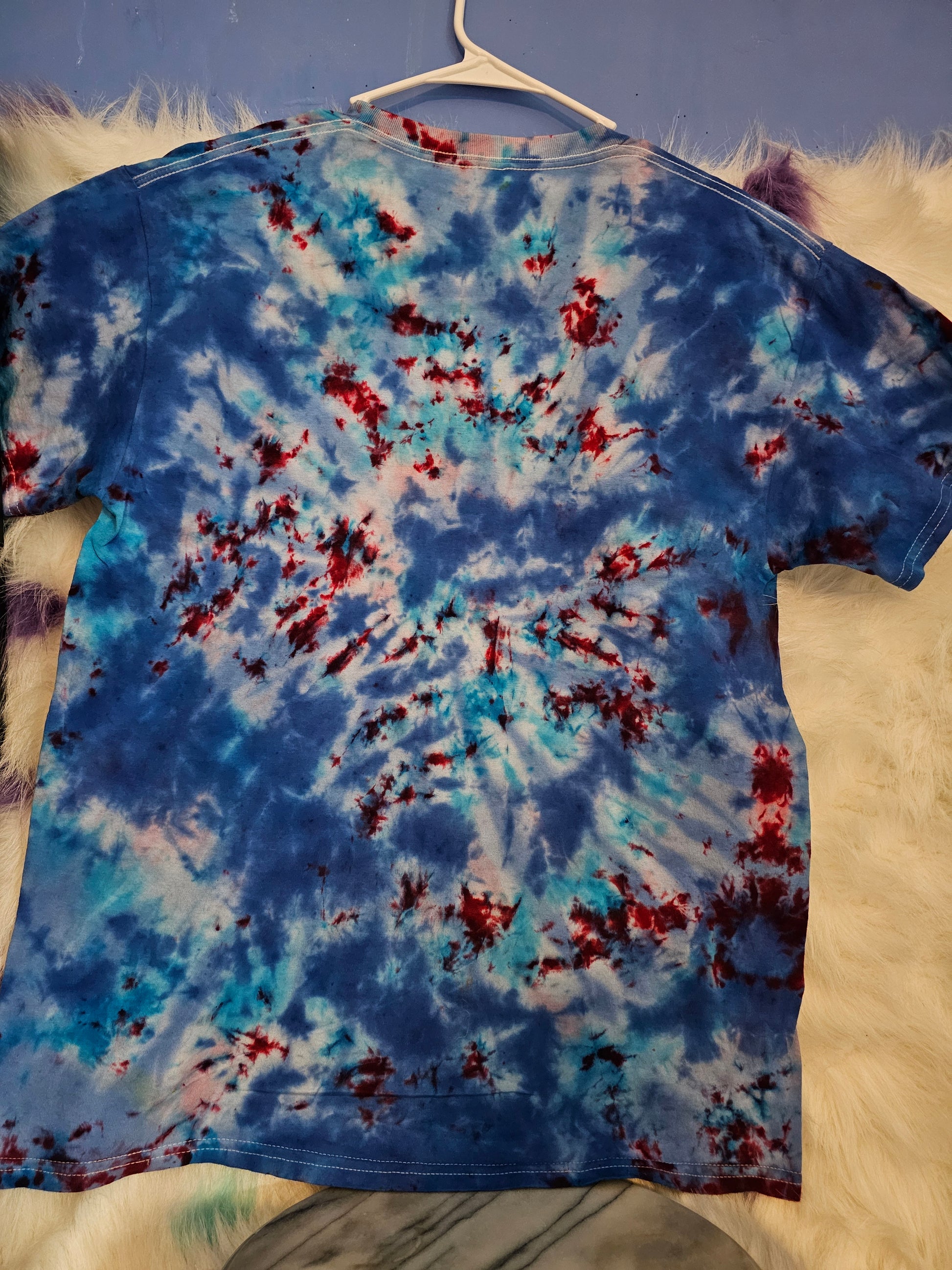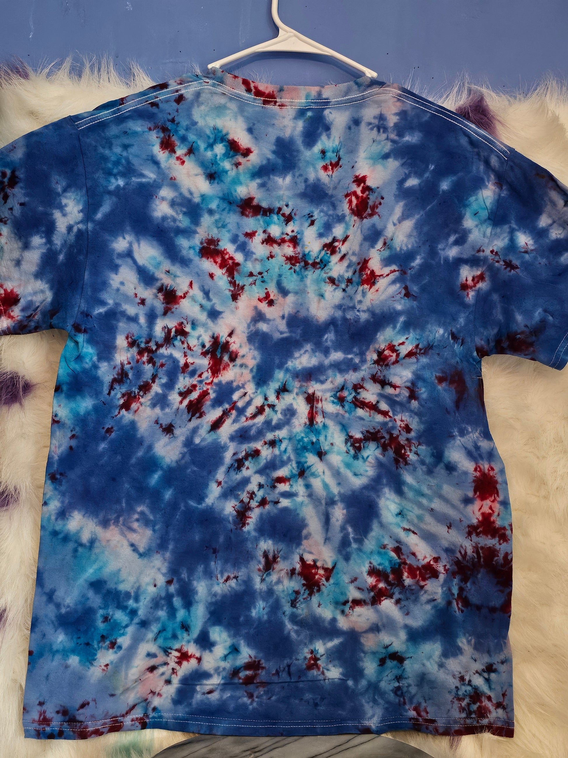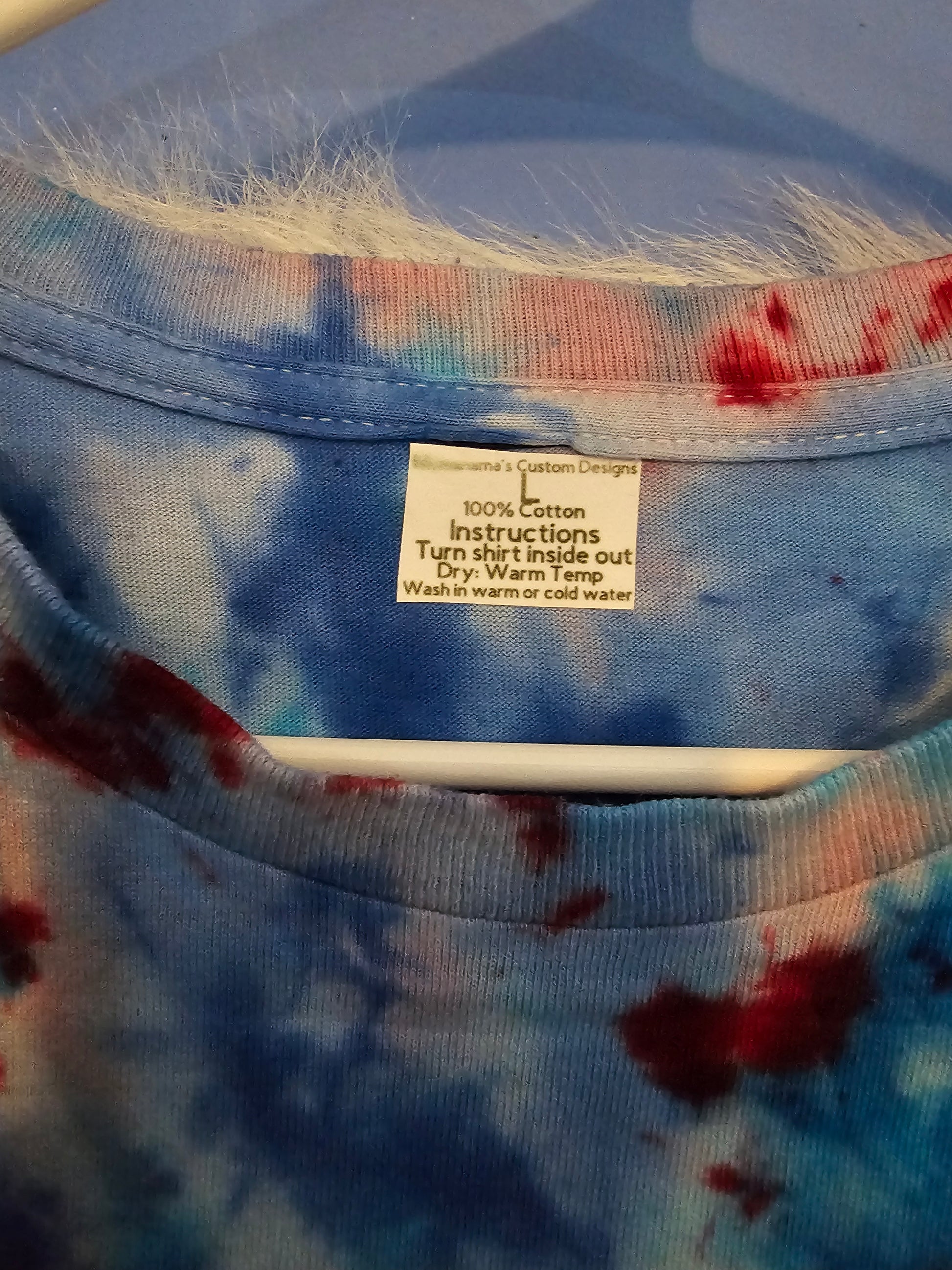 Made from 100% cotton, this Size L T-shirt features a unique tie dye design and a bold "God Bless America" message with a cross. Stay comfortable while showing your patriotic and religious pride. Perfect for casual wear or as a statement piece.Size L 100% cotton tye dye God Bless America with cross Tshirt. Washing instructions turn Shirt inside out and wash in cold or warm water and dry on low heat or air dry.DO NOT wash in Hot water.Your information is protected.