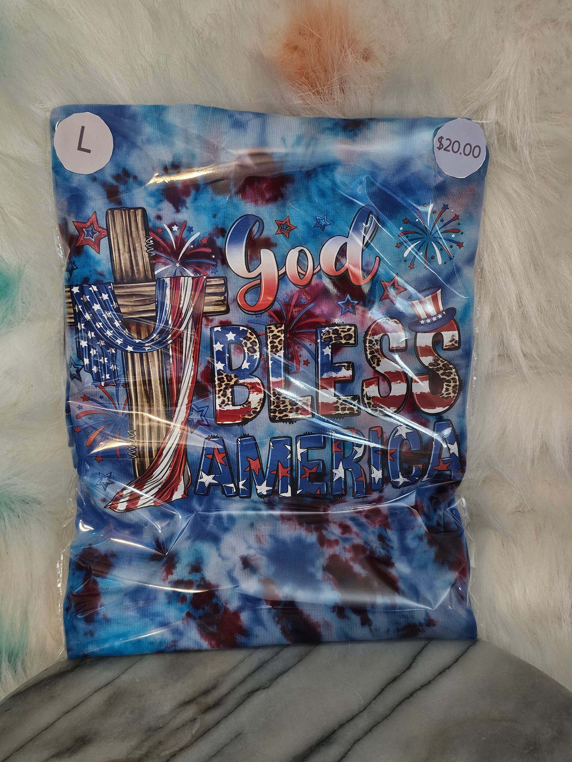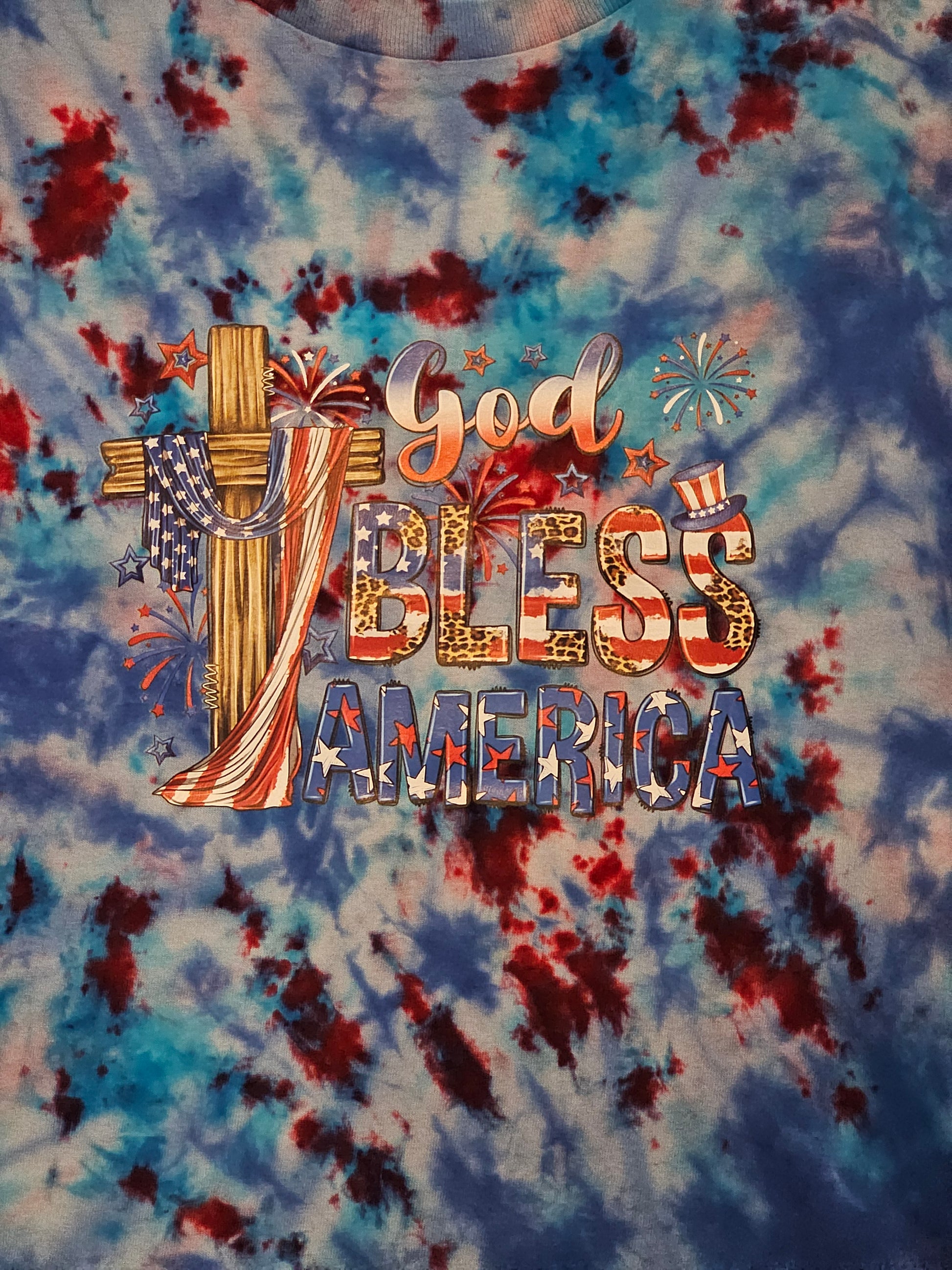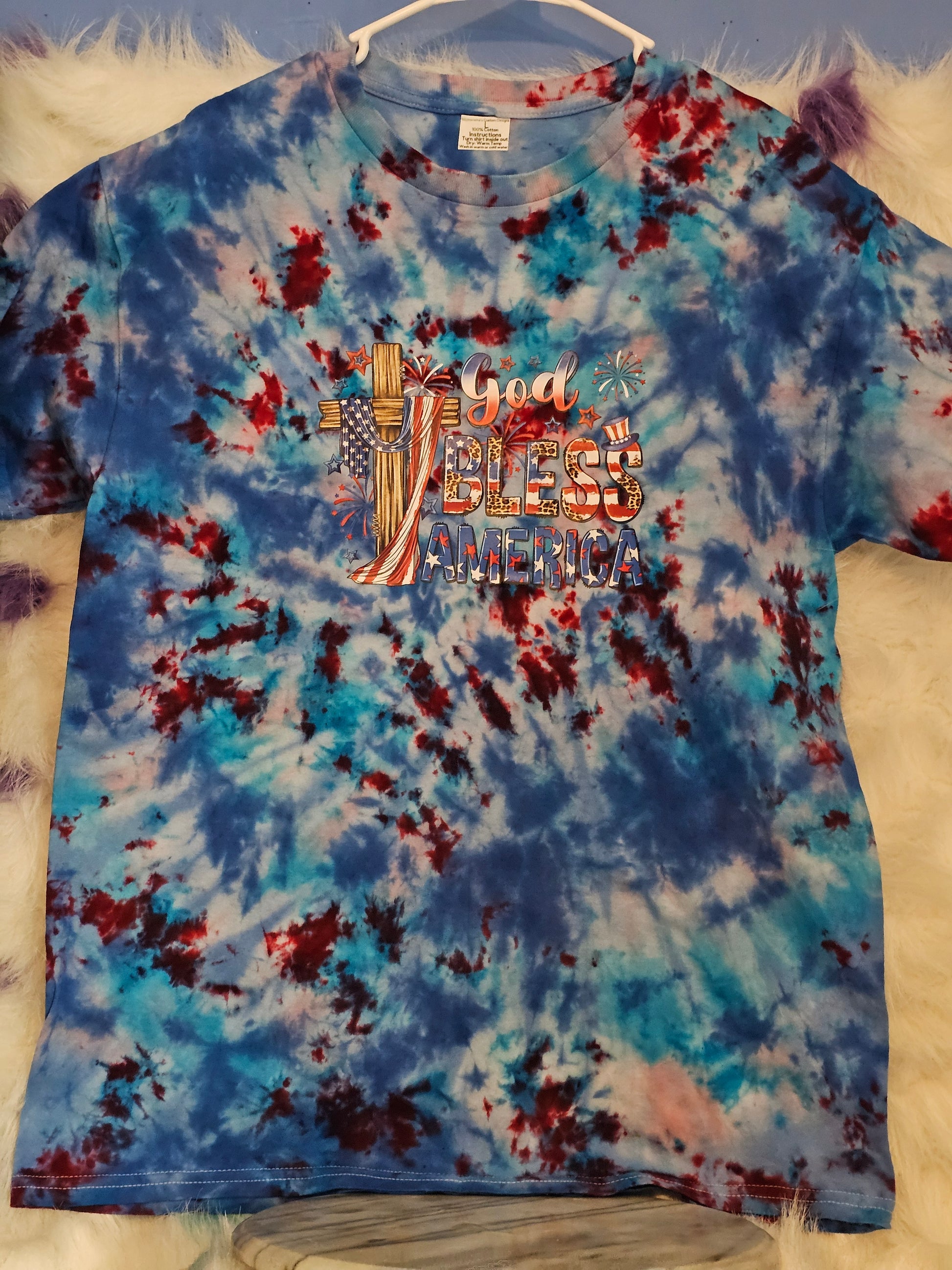 Size L 100% cotton tye dye God Bless America with cross Tshirt