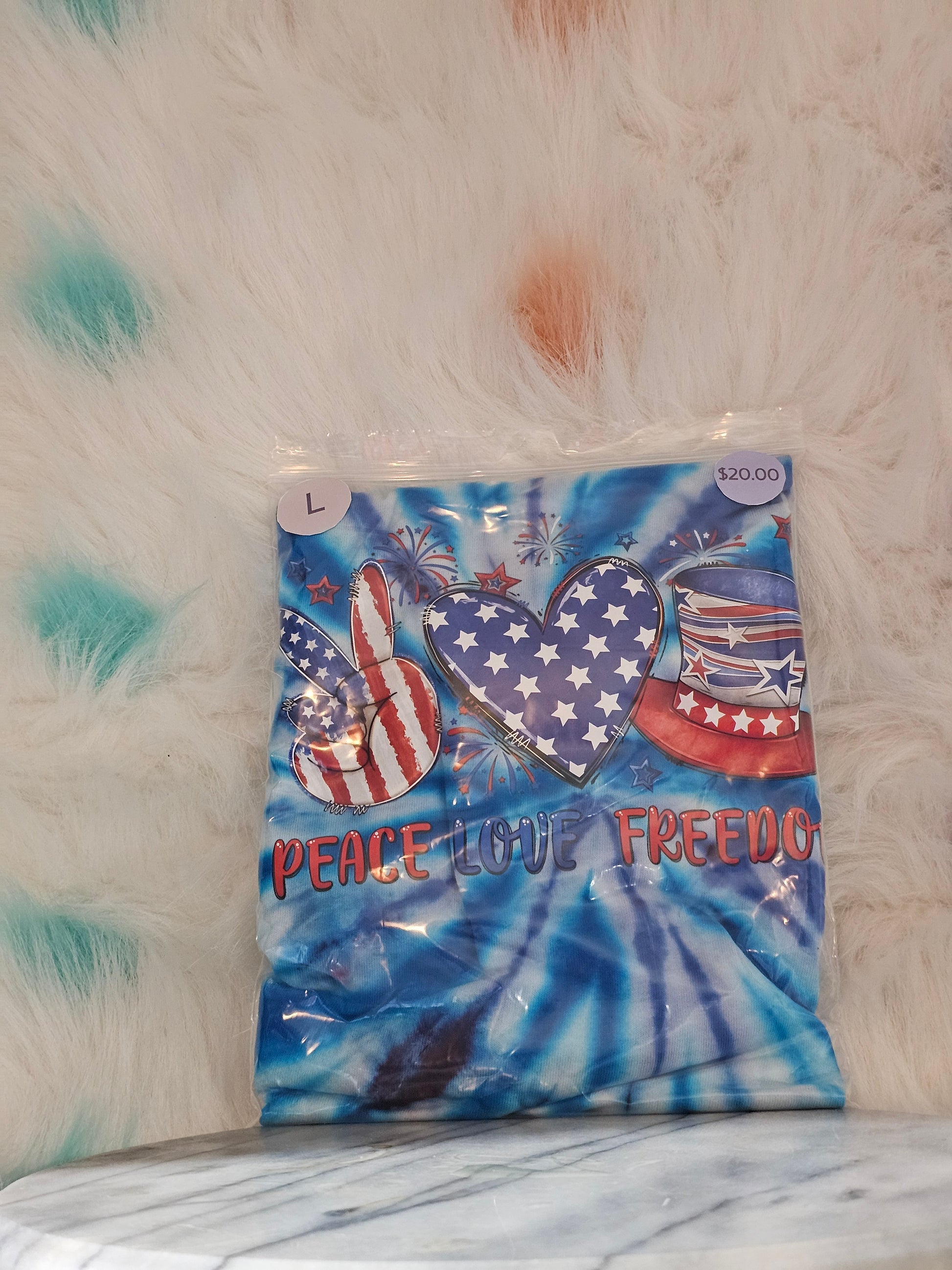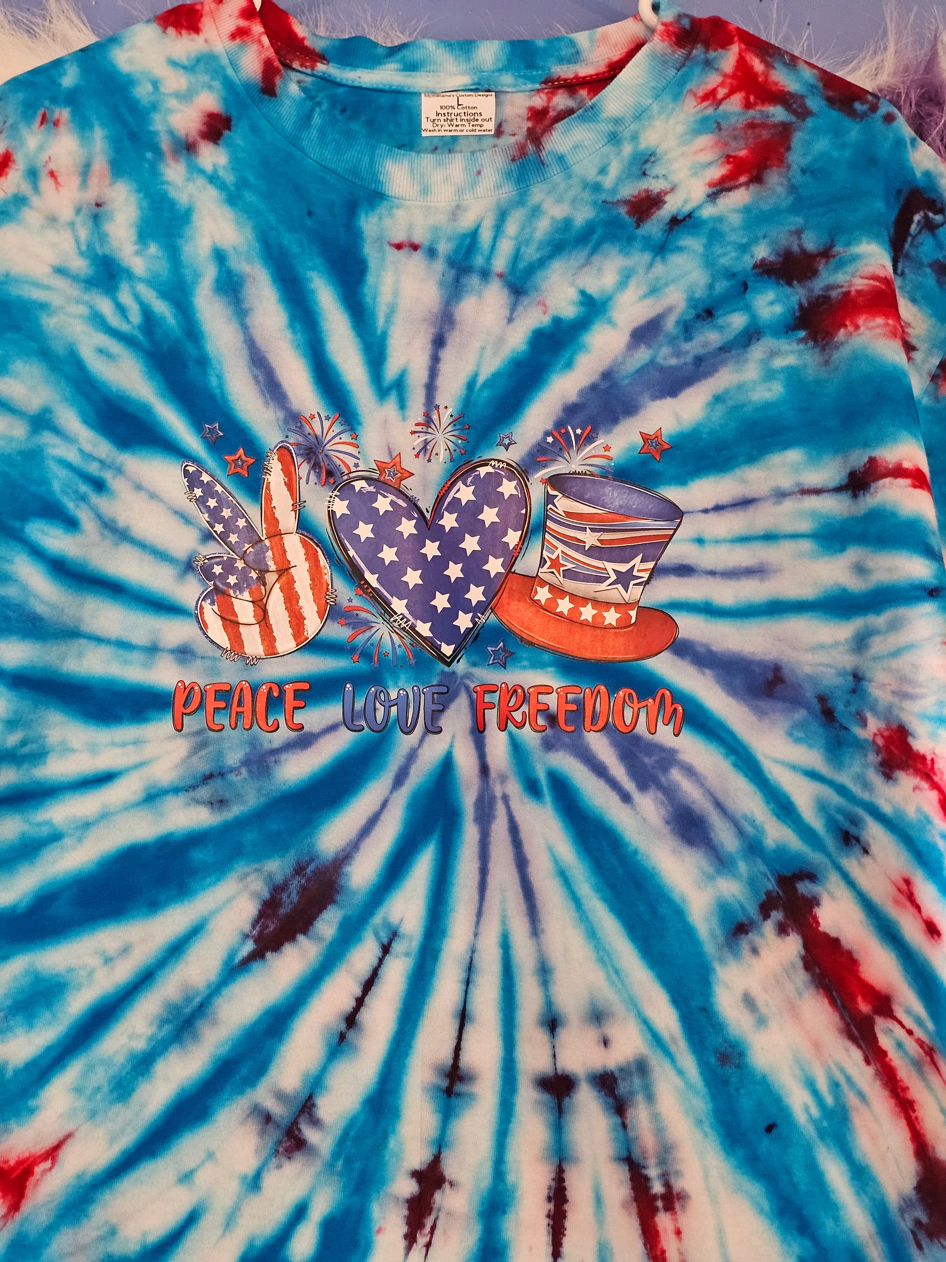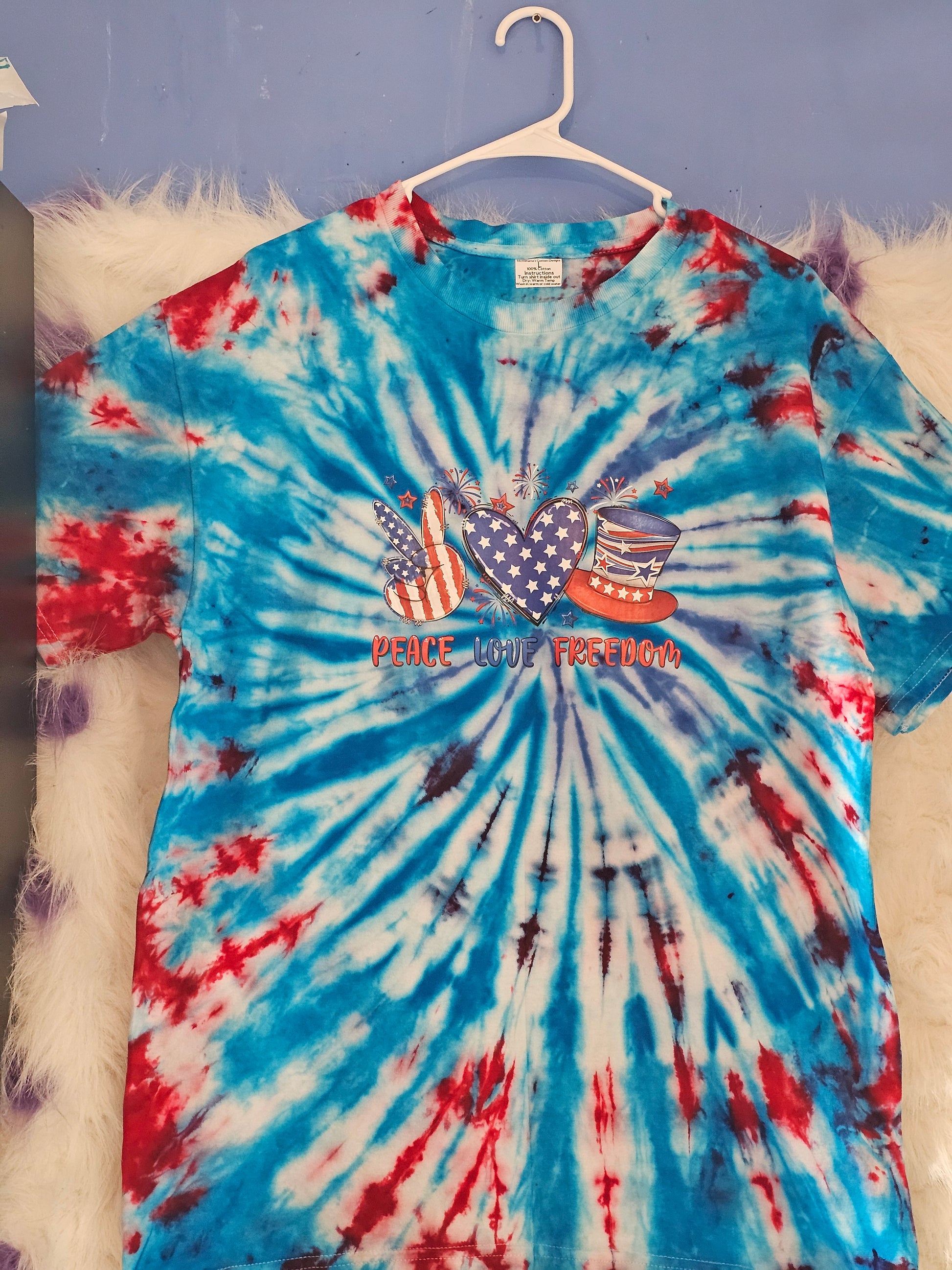 Size L 100% cotton tye dye Peace,Love and freedom Tshirt