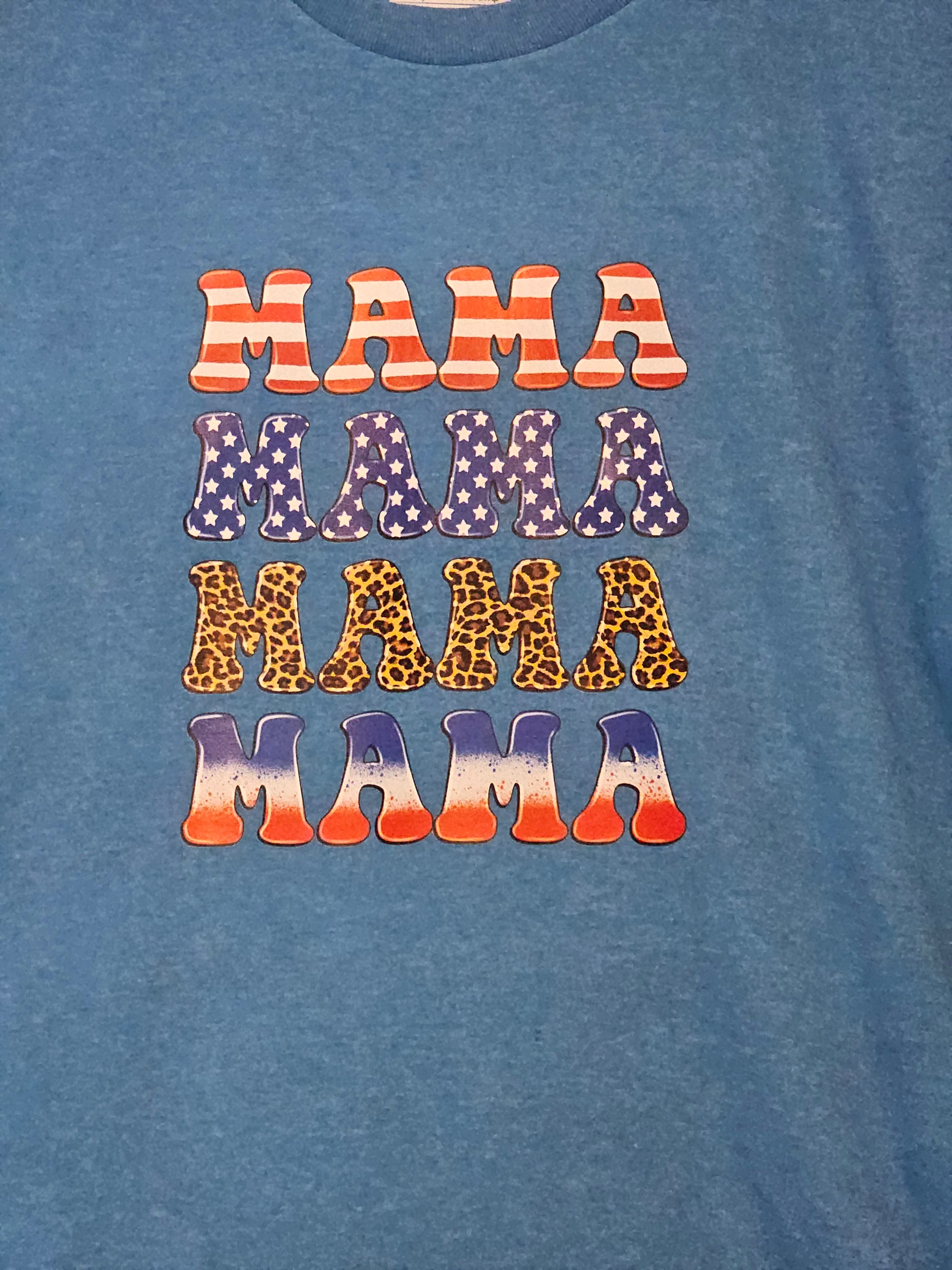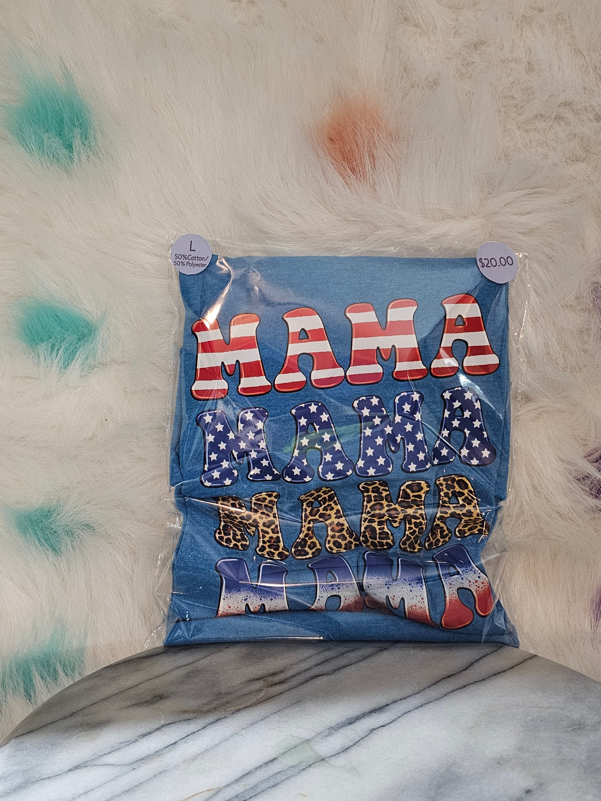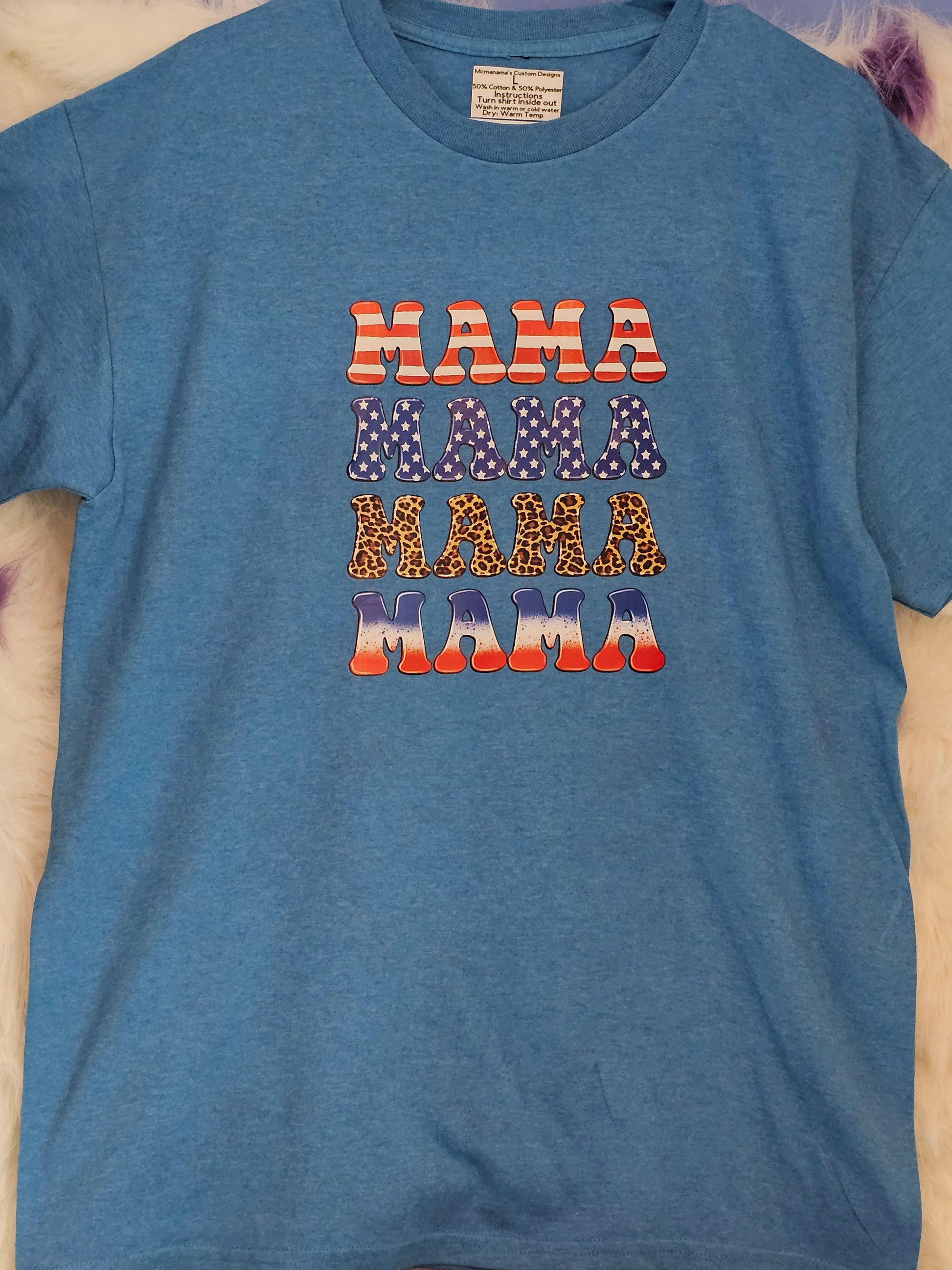 This Mama,Mama,Mama,Mama Tshirt, made from a blend of 50% cotton and 50% polyester, is perfect for versatile wear. The Size L ensures a comfortable fit, while the mix of fabrics provides a soft feel and durability. Show off your love for mama with this stylish and functional tshirt.Size L 50% cotton 50% polyester blue Mama,Mama,Mama Tshirt. Washing instructions turn Shirt inside out and wash in cold or warm water and dry on low heat or air dry.DO NOT wash in Hot water.Your information is protected.