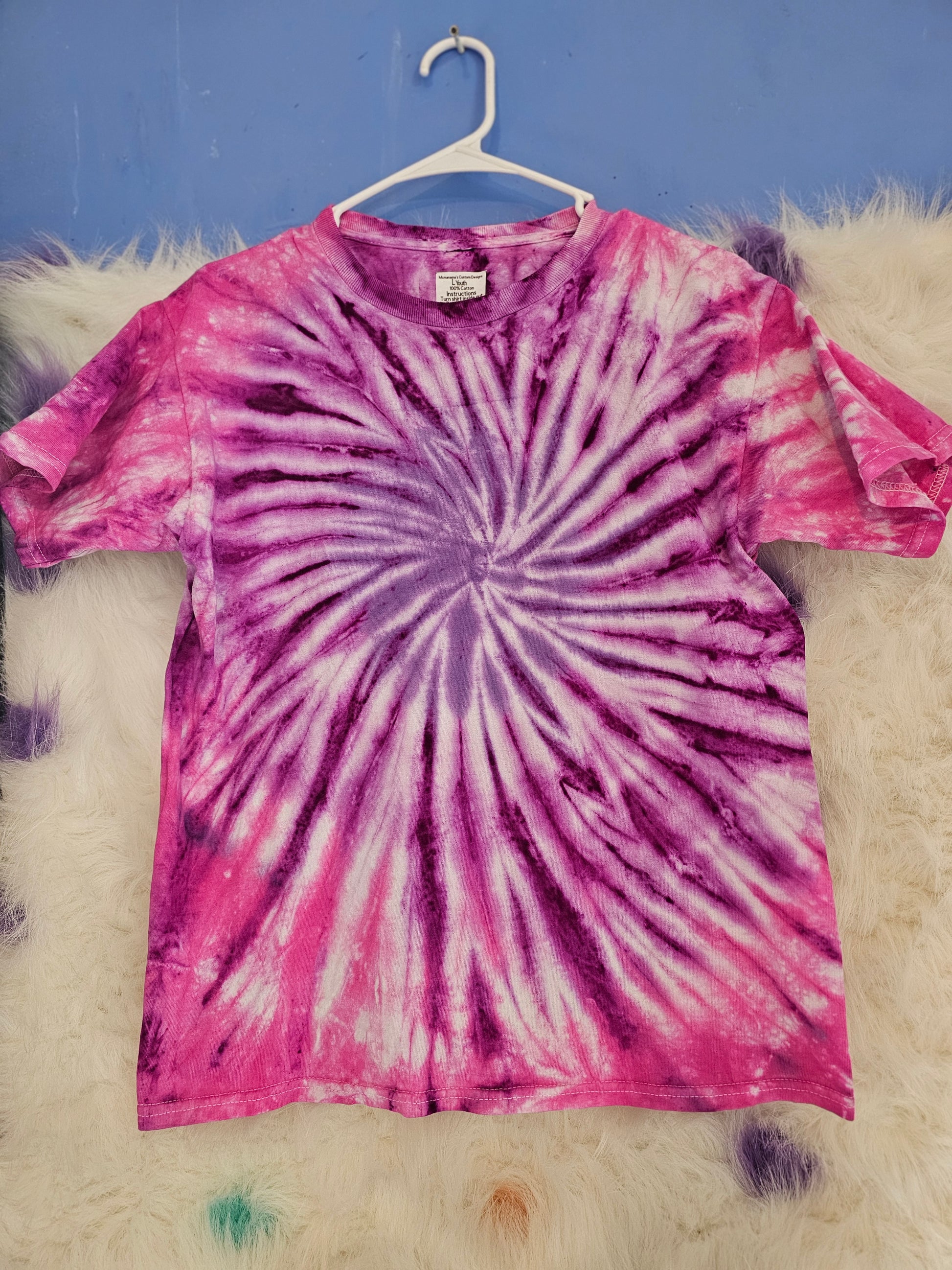 Size L youth pink and purple sparrow tie dye T-Shirt. Washing instructions turn Shirt inside out and wash in cold or warm water and dry on low heat or air dry.Your information is protected. This size L youth pink and purple sparrow tie dye Tshirt is the perfect addition to any wardrobe. With its vibrant colors and unique tie dye design, it adds a fun and playful touch to any outfit. Made with high-quality materials, it offers both comfort and style. Elevate your child's style with this stylish and trendy Tshirt.Washing instructions.Turn Shirt inside out and wash in cold or warm water and dry on low heat or air dry.DO NOT wash in Hot water.Your information is protected.