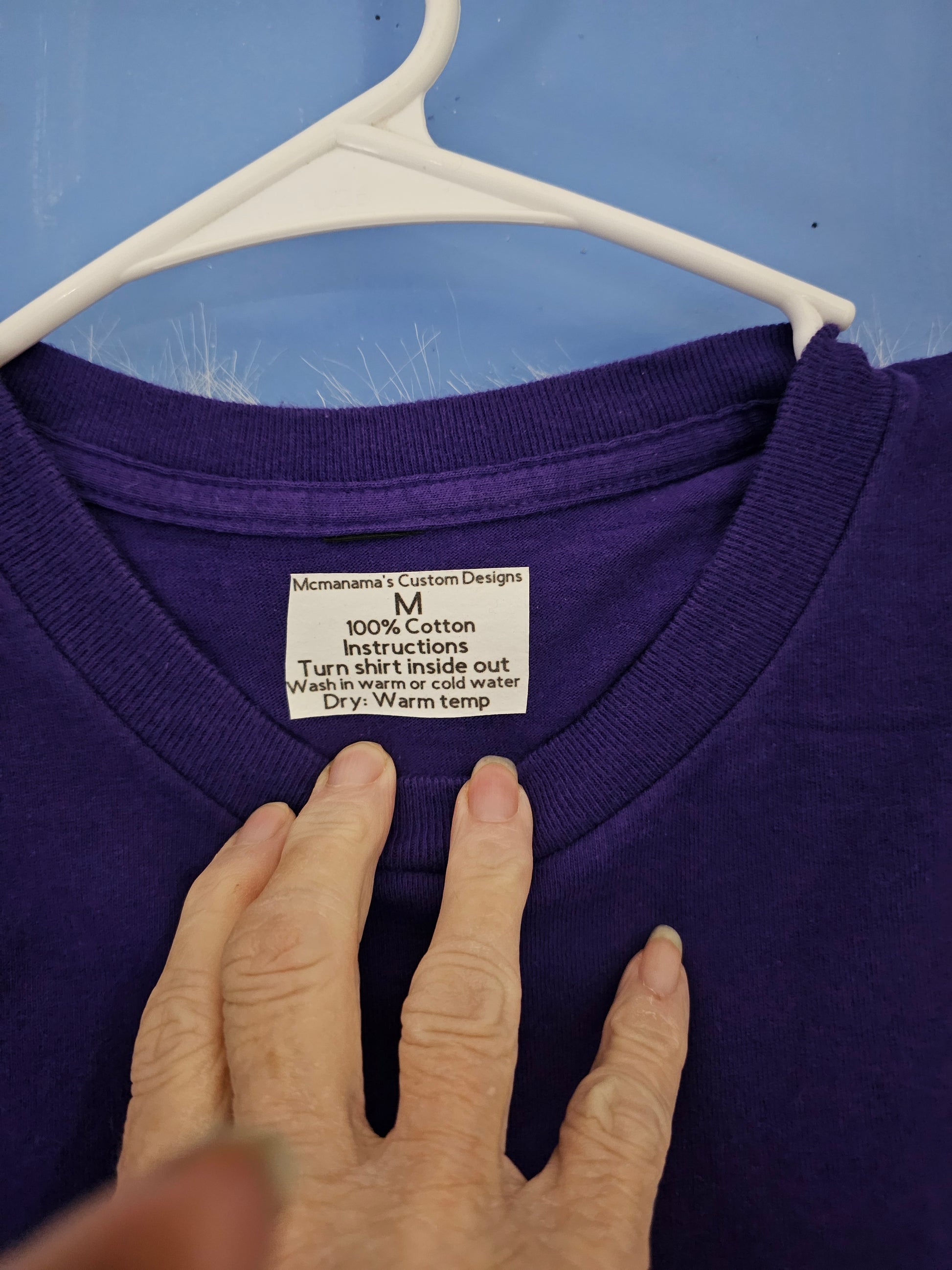This Size M 100% cotton Purple No I don't think Tshirt is a reliable and comfortable choice. Made with 100% cotton, it offers breathability and softness. Its size M ensures a perfect fit, while its purple color adds a stylish touch. The "No I don't think" print adds a witty and unique touch.Size M 100% cotton Purple No I don't think Tshirt. Washing instructions turn Shirt inside out and wash in cold or warm water and dry on low heat or air dry. DO NOT wash in Hot water.Your information is protected.