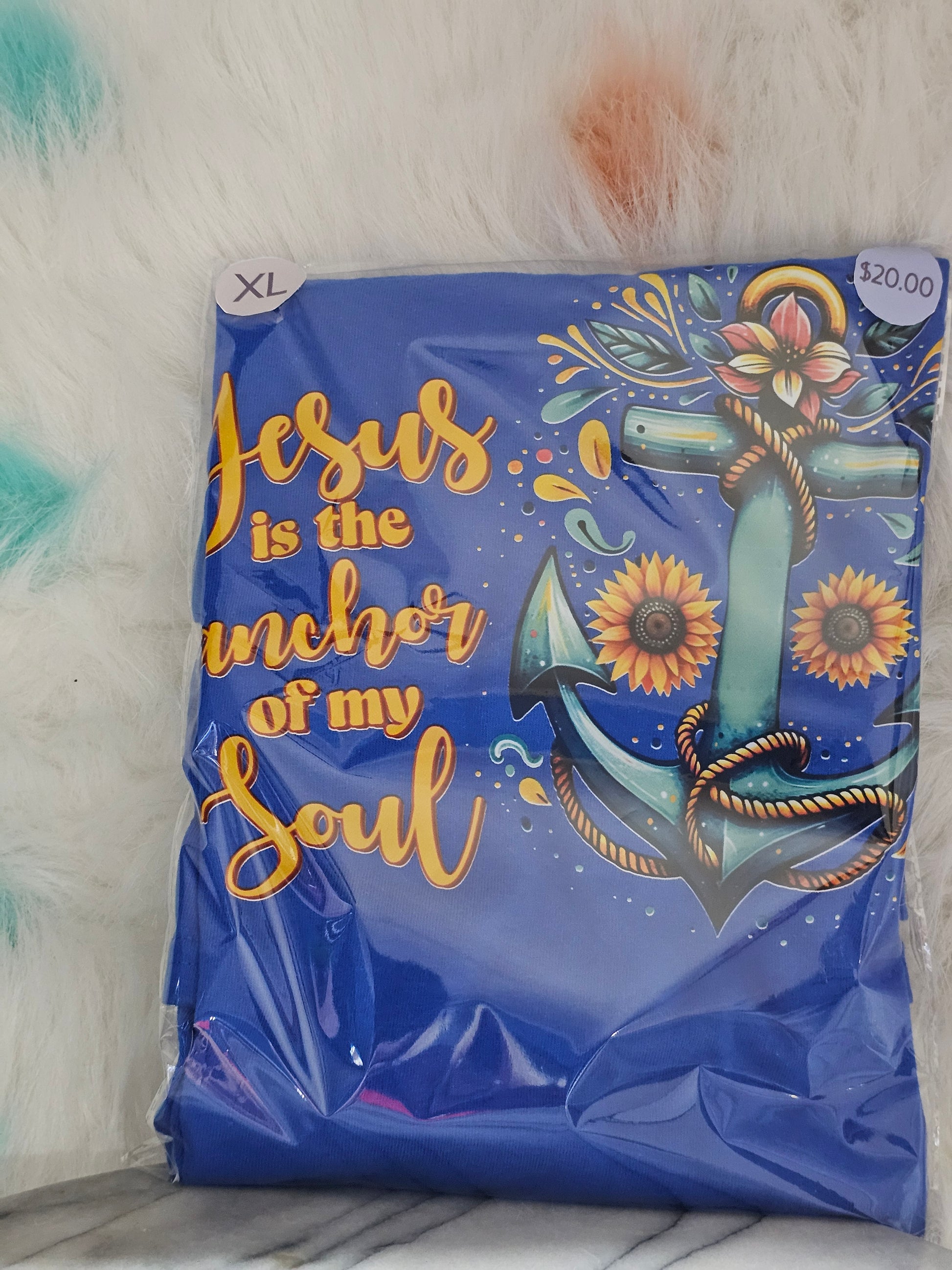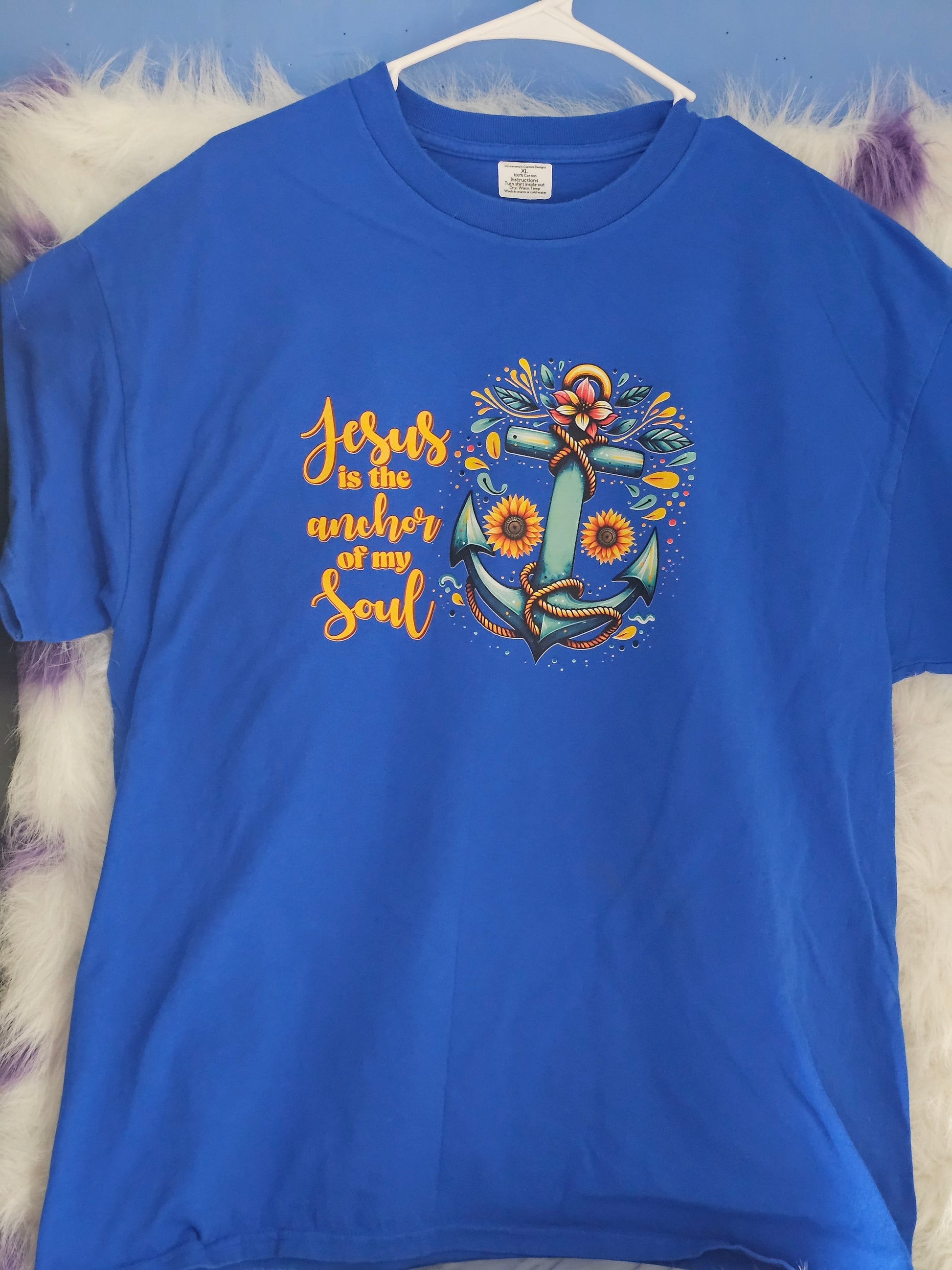 Size XL 100% cotton Blue Jesus is my anchor of my soul